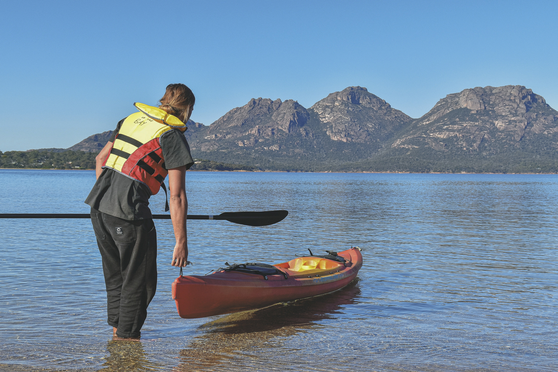 An der Küste von Coles Bay, etwa 3,5 km vom Ortszentrum entfernt und nahe dem Eingang zum Freycinet Nationalpark. Wanderwege und Weinglass Bay sind innerhalb weniger Minuten mit dem Auto erreichbar. Bis Hobart sind es ca. 2,5 Stunden (195 km) und bis Launceston ca. 2 Stunden (175 km).
