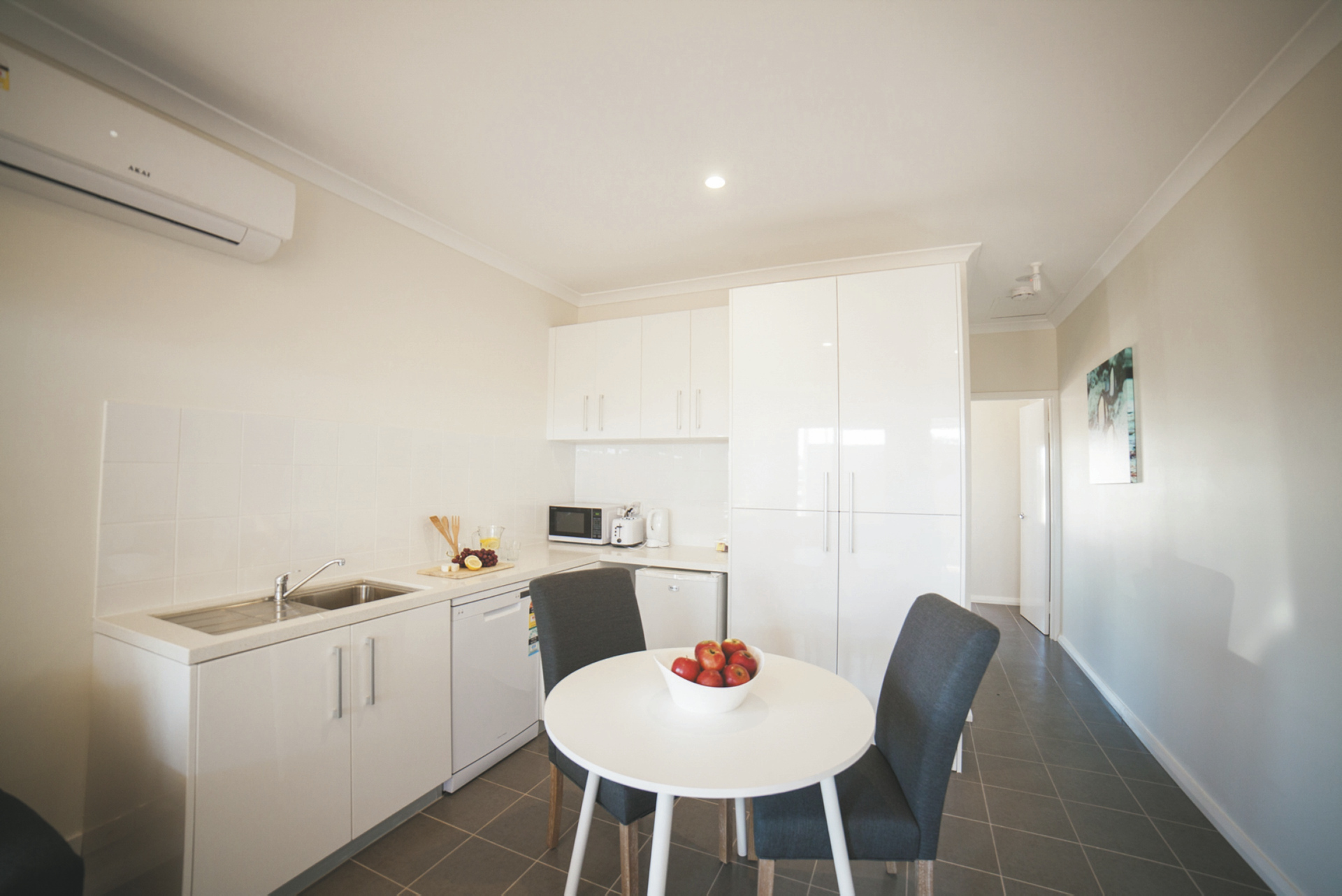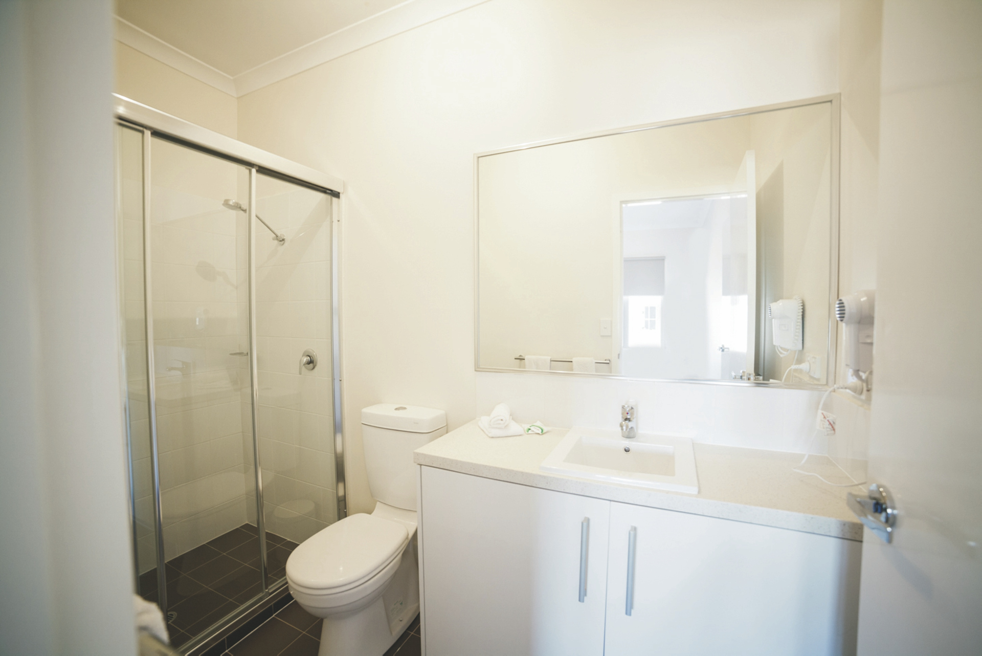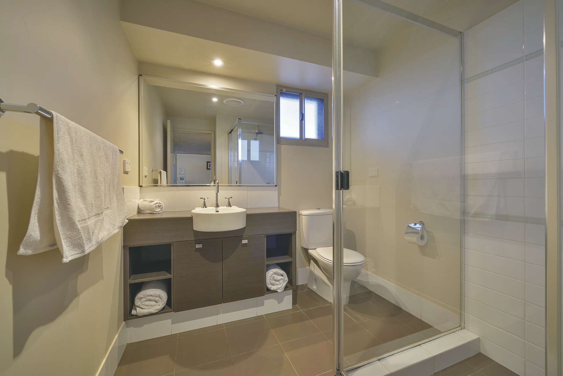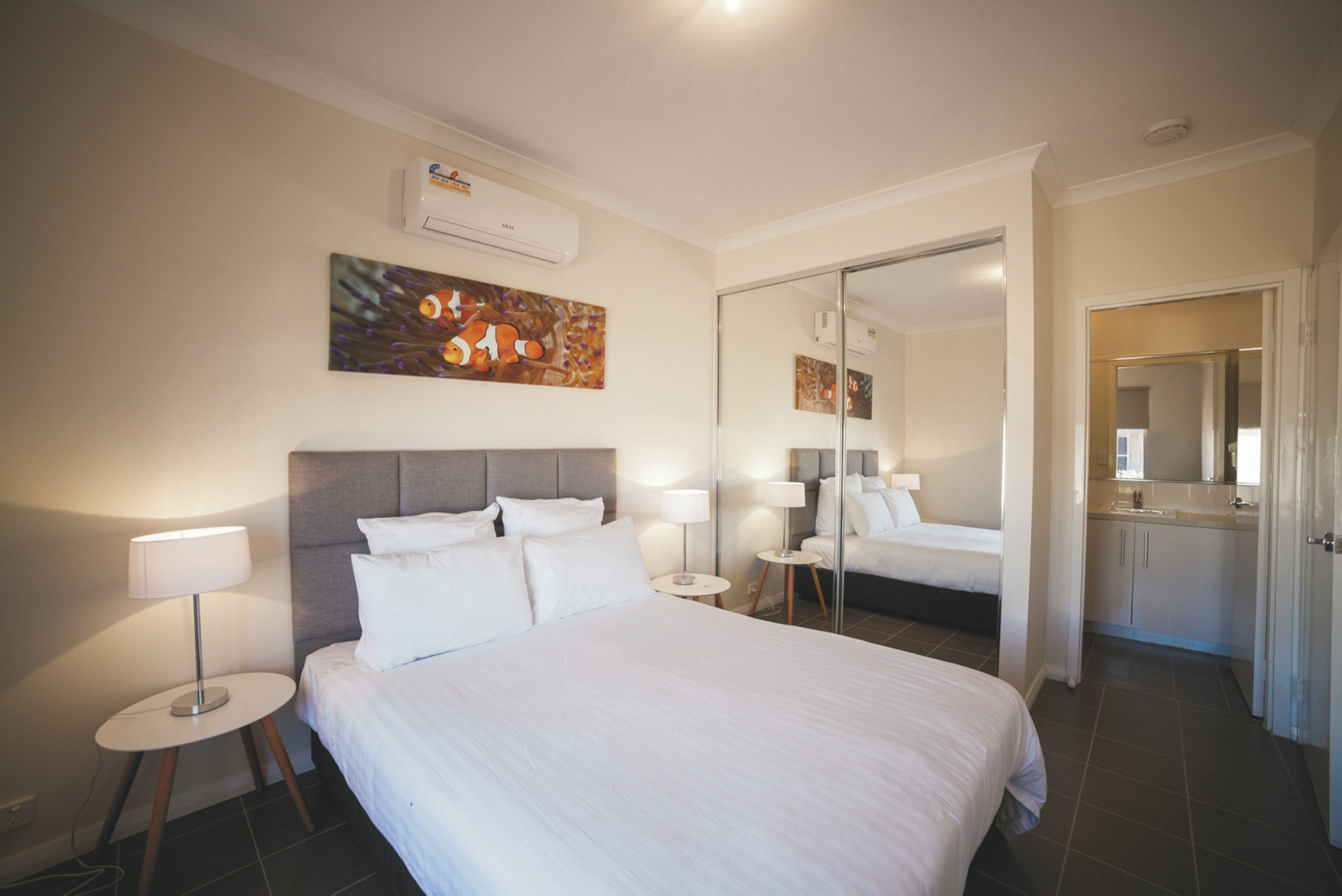 62 komfortable Unterkünfte, ausgestattet u.a. mit Klimaanlage, TV, DVD-Spieler, Waschmaschine/Trockner und überdachtem Außenbereich mit Grill. 1 SZ Apartments mit Dusche/WC und Küchenzeile. 2 SZ Apartments mit zweitem Twin-Schlafzimmer, zwei Bädern, größerer Küche und Wohnbereich. 3 SZ Apartments mit drittem Schlafzimmer und zweitem Bad auf einer Empore.