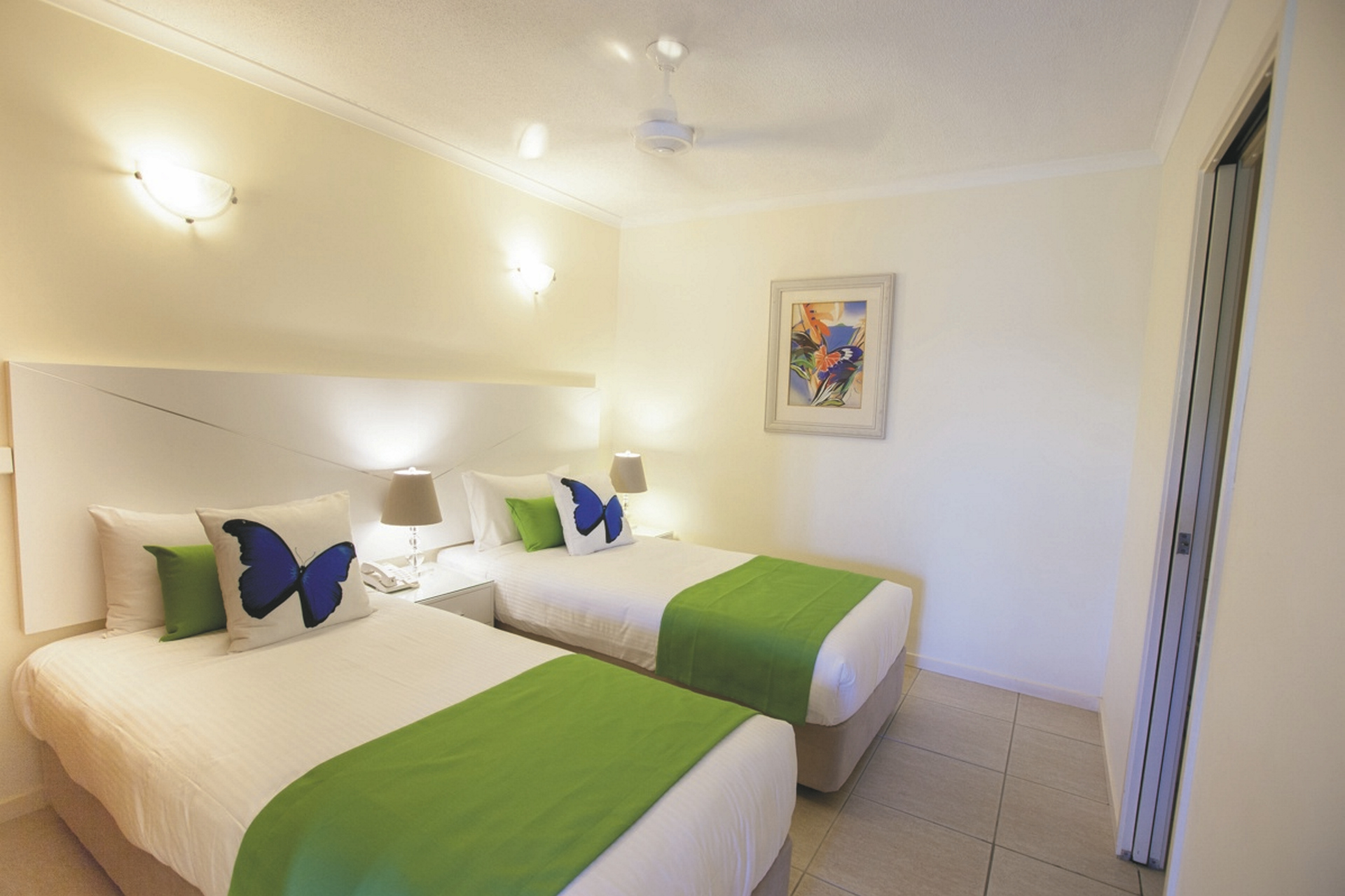 Die beliebte Apartment-Anlage ist im typischen Nord-Queensland-Stil errichtet und von tropischem Grün umgeben. Den Gästen stehen ein Salzwasserpool (in den kühleren Monaten beheizt), BBQ-Einrichtungen, kostenloses WLAN und überdachte Parkplätze zur Verfügung. Die Rezeption ist täglich von 8.00 - 18.00 Uhr besetzt.