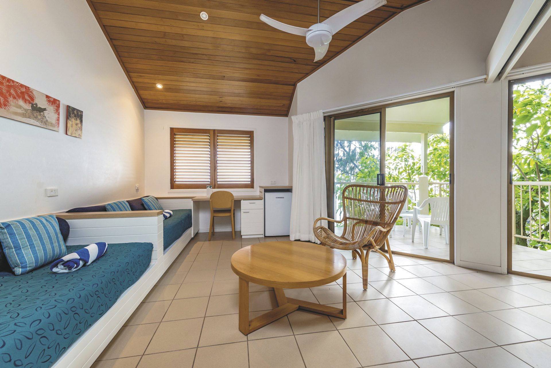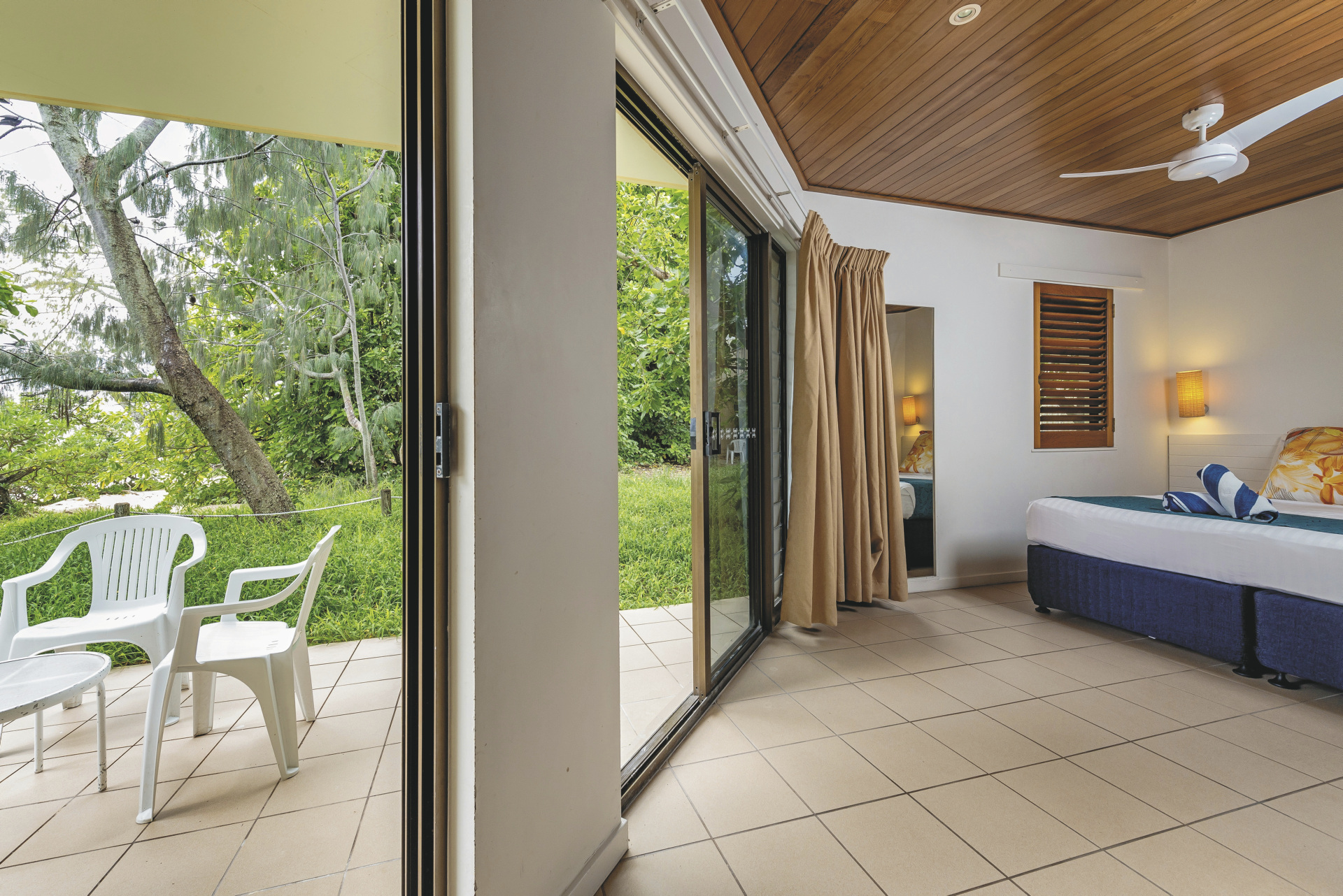 Das Resort verfügt über 109 Zimmer, darunter einfachere Turtle Rooms (2 je Bungalow), Reef Rooms in Strandnähe oder komfortable Heron Beachside Rooms direkt am Strand. Alle Zimmer verfügen über Dusche/WC, Fön, Deckenventilator, Tee-/Kaffeezubereiter, Kühlschrank, Uhrenradio sowie Balkon oder Terrasse, nicht jedoch über Telefon und TV. Weitere Kategorien auf Anfrage.