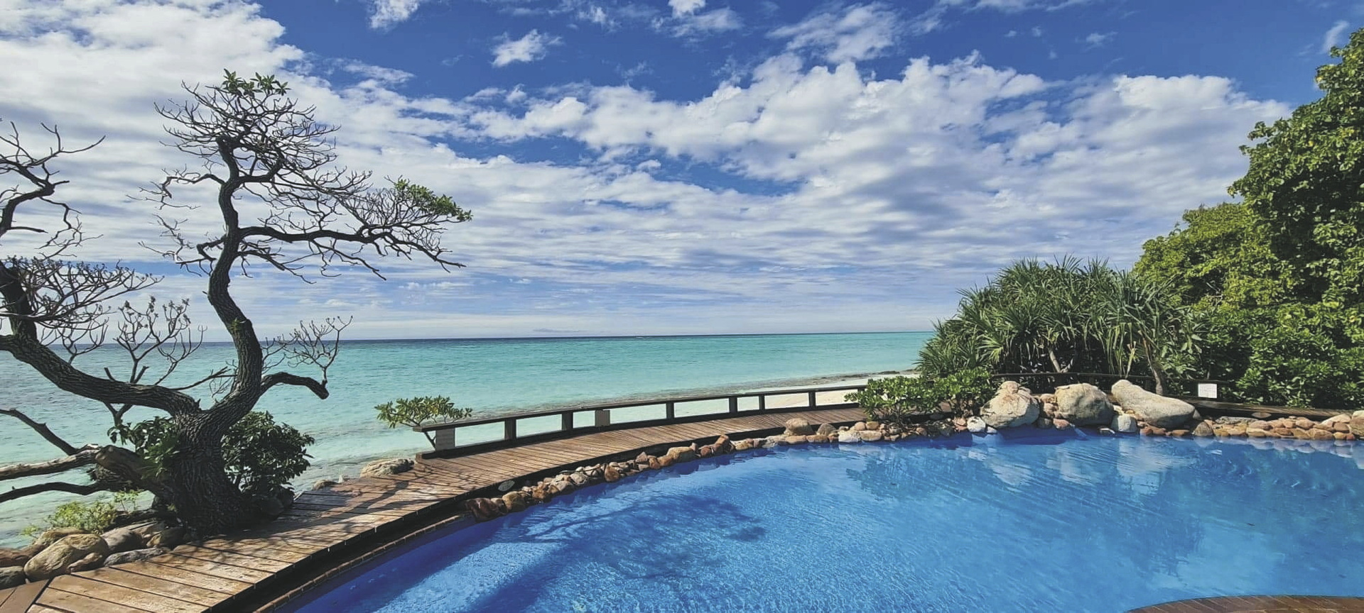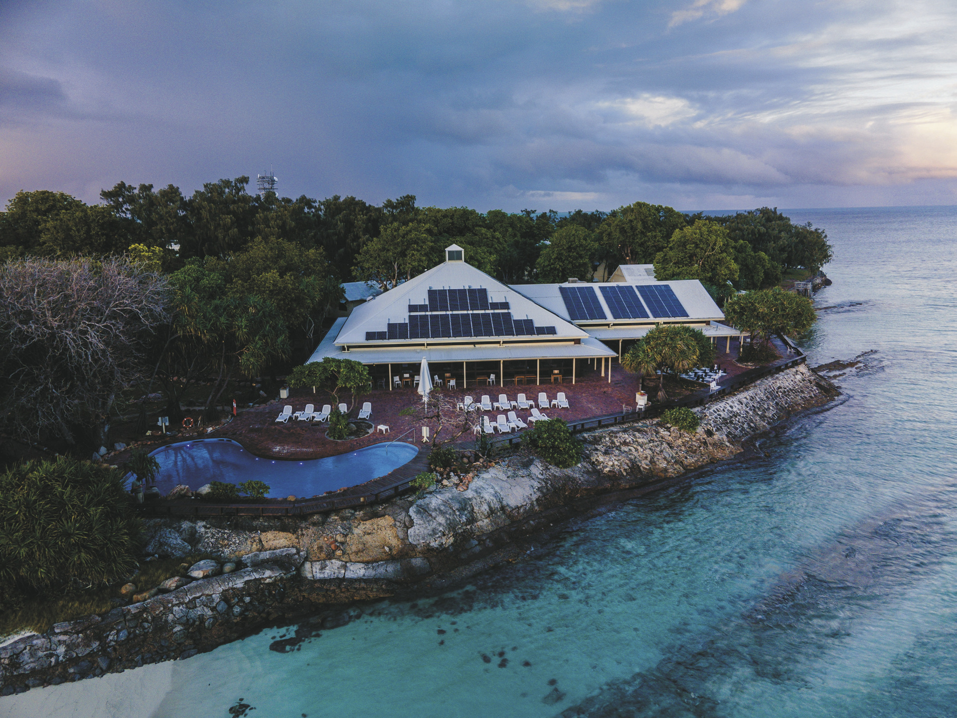 Ein Pool, Tennisplätze, Restaurant, Bar und Spa zählen zum Angebot des Resorts. Internetzugang (gegen Gebühr) per WLAN in Baillie's Bar, im Shearwater Restaurant, in der Pandanus Lounge und rund um die Rezeption. Die Tauch- und Schnorchelmöglichkeiten sind fantastisch - die Korallenbänke beginnen direkt vor dem weißen Sandstrand. Tauchkurse und geführte Tauchgänge werden angeboten. Meeresschildkröten legen von Oktober bis April hier ihre Eier ab; die Insel ist Brutstätte vieler Vogelarten.