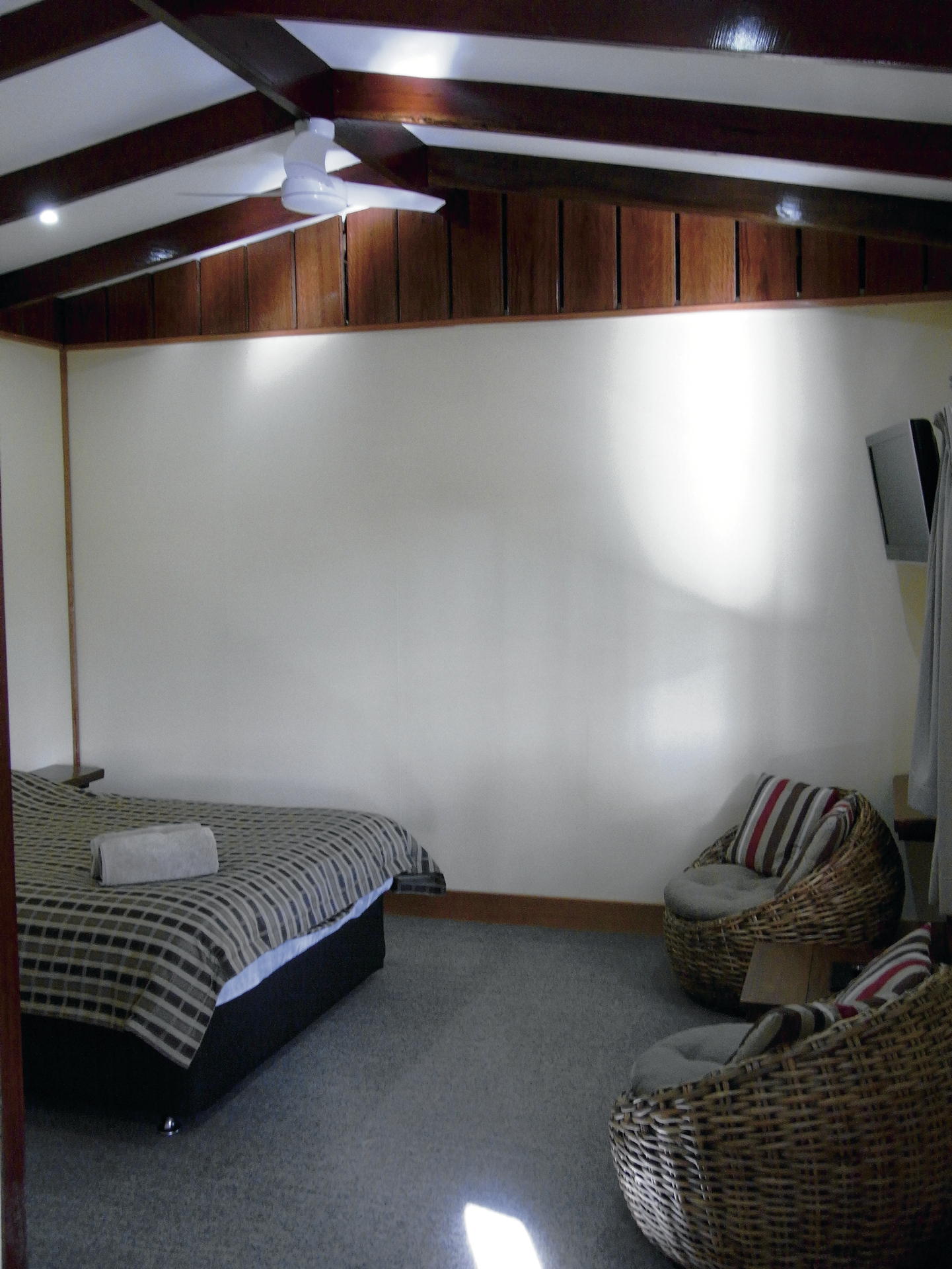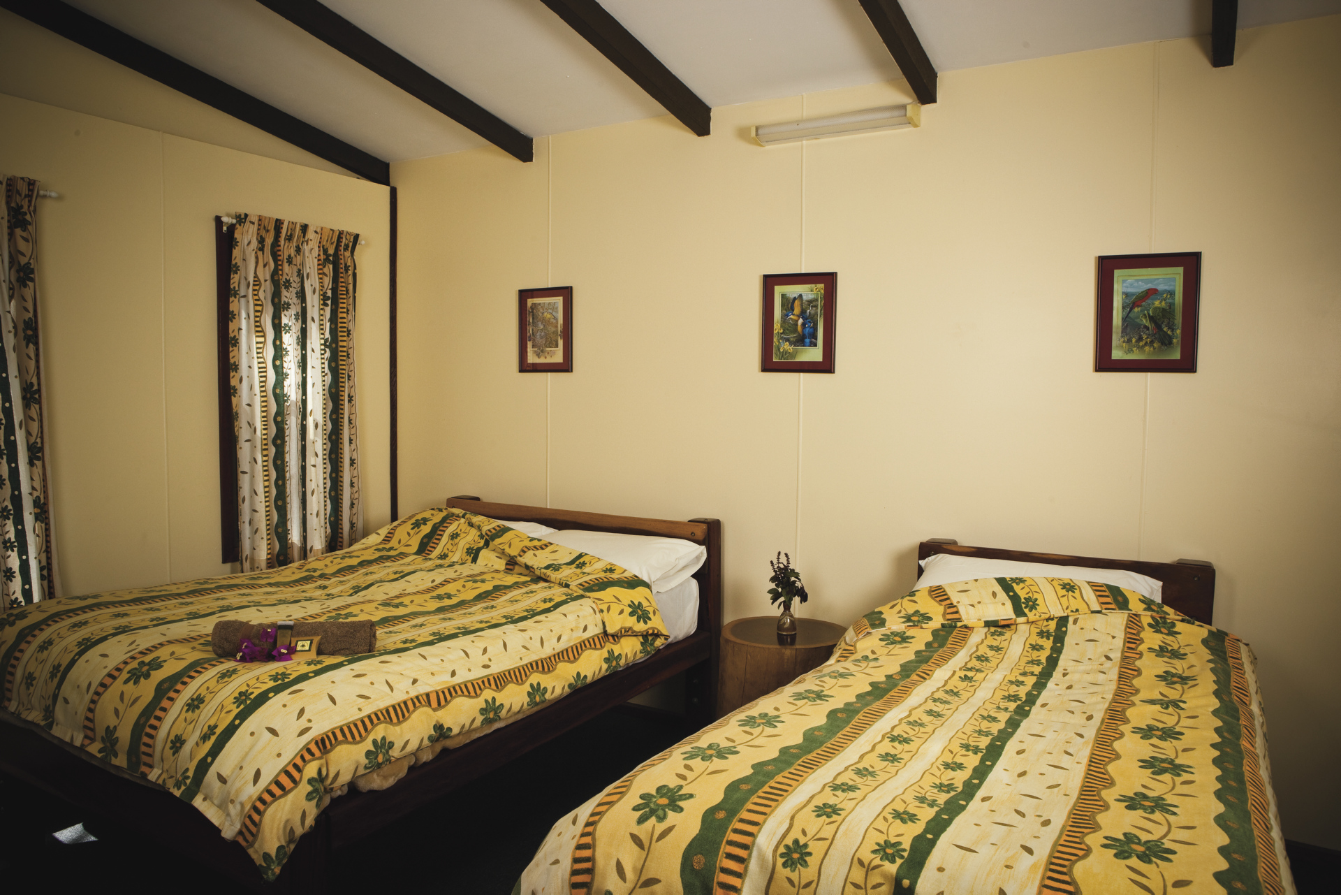 13 rustikale Cabins (Bungalows), ausgestattet mit Dusche/WC, Deckenventilator und Tee-/Kaffeezubereiter. 3 neuere Deluxe Cabins mit überdachter Terrasse und zusätzlich TV, Kochmöglichkeit und BBQ. Alkoholische Getränke können nur an der Bar gekauft werden.