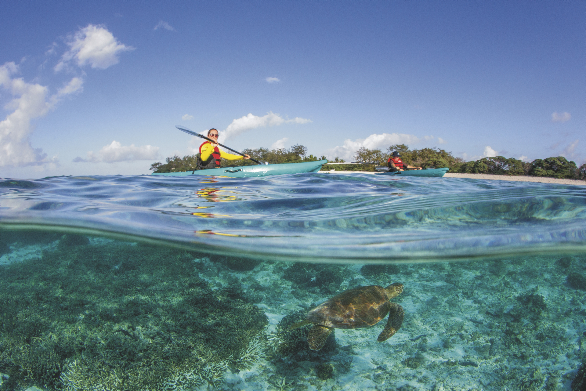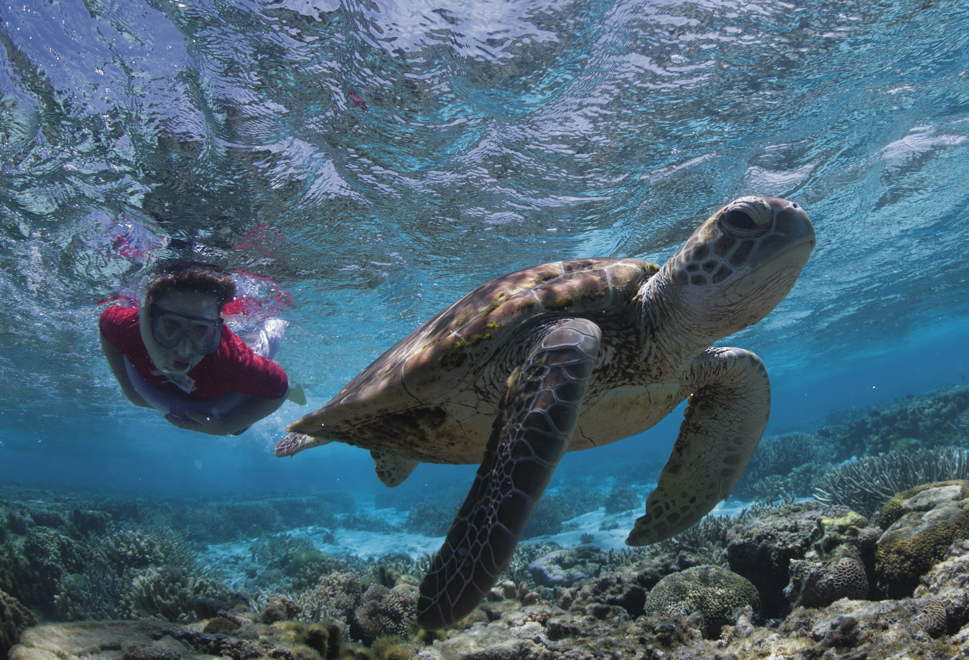Lady Elliot ist eines der wenigen Inselresorts, das direkt im Great Barrier Reef liegt. Die Koralleninsel ist ein Zufluchtsort für über 1.200 Arten von Meereslebewesen und ist bekannt für ihren Reichtum an Mantarochen und Schildkröten. Das Riff kann direkt vom Korallenstrand aus erkundet werden - ideal zum Schnorcheln und Tauchen.