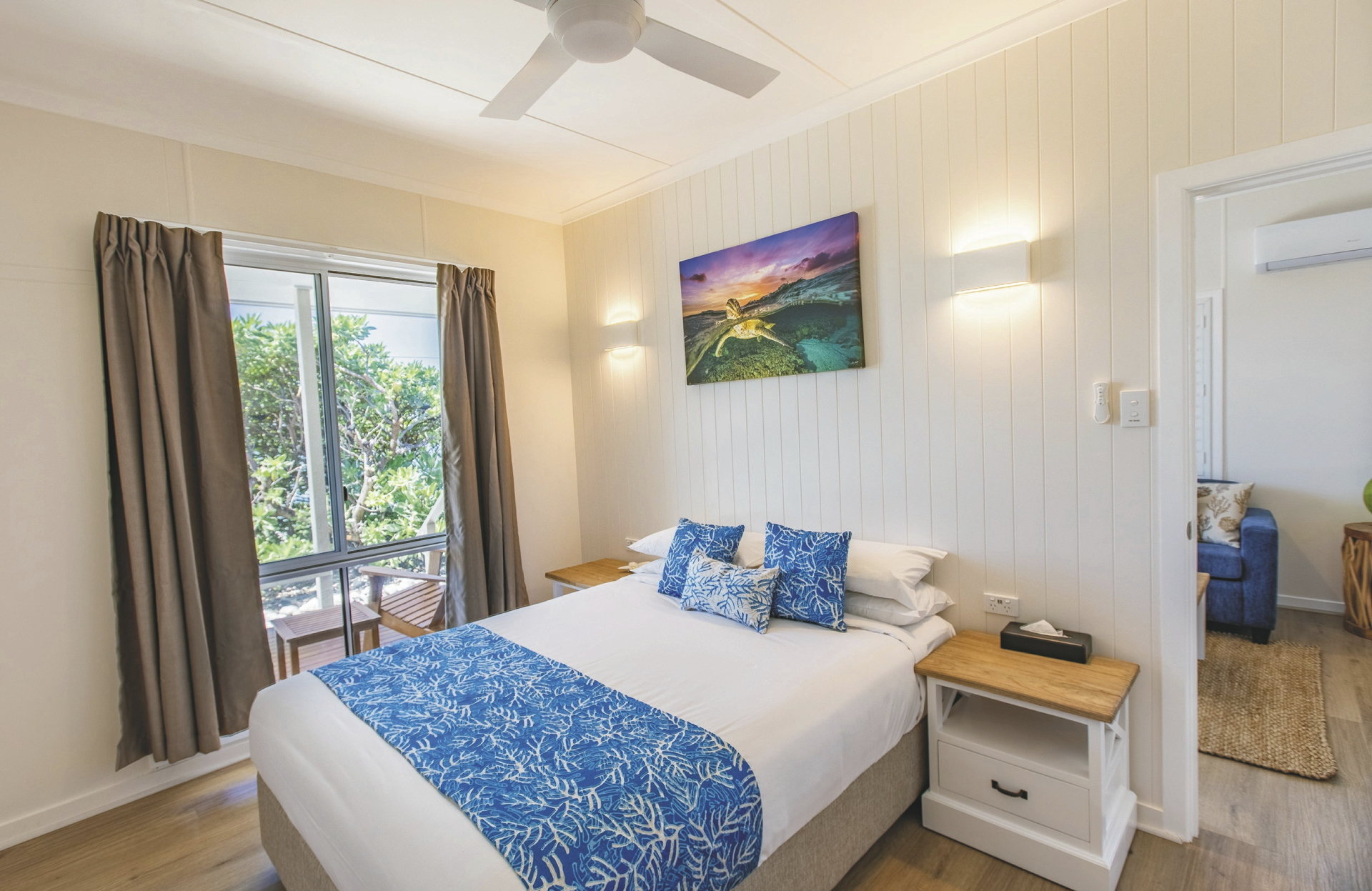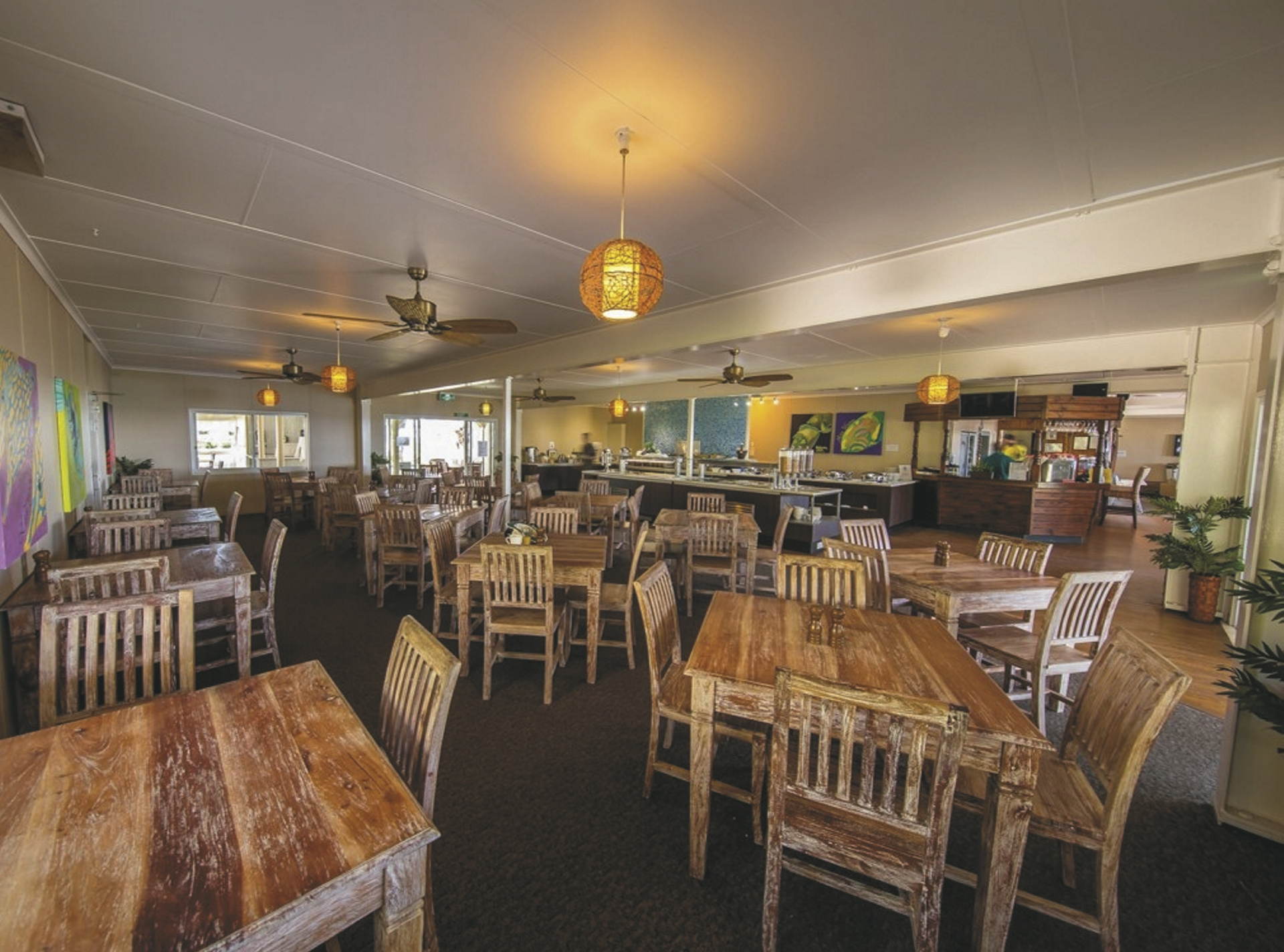 Das gut überschaubare, familiengeführte Resort wurde bereits mehrfach im Ökotourismus prämierte und ist zertifiziert. Der Beachfront Dining Room mit dem Beachfront Café bietet eine Auswahl an Speisen und Getränken - und WLAN in begrenztem Umfang. Die Lagoon Bar mit zauberhaftem Blick auf das Riff und den Ozean ist der perfekte Ort, um nach einem erlebnisreichen Tag zu entspannen. Im Dive Shop kann die Schnorchelausrüstung kostenlos und die gesamte Tauchausrüstung gegen Bezahlung ausgeliehen werden. Weiterhin gibt es einen kleinen Salzwasser-Pool, einen Waschsalon und ein Beach-Volleyball-Feld. Tipp: Vergessen Sie Ihre Riffschuhe nicht!