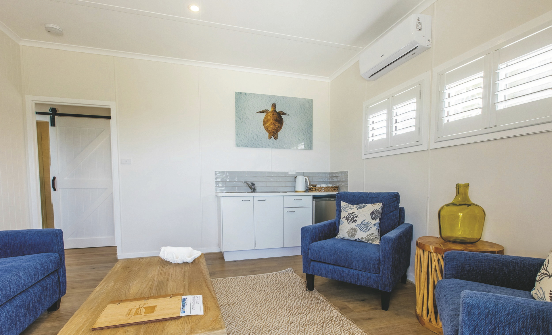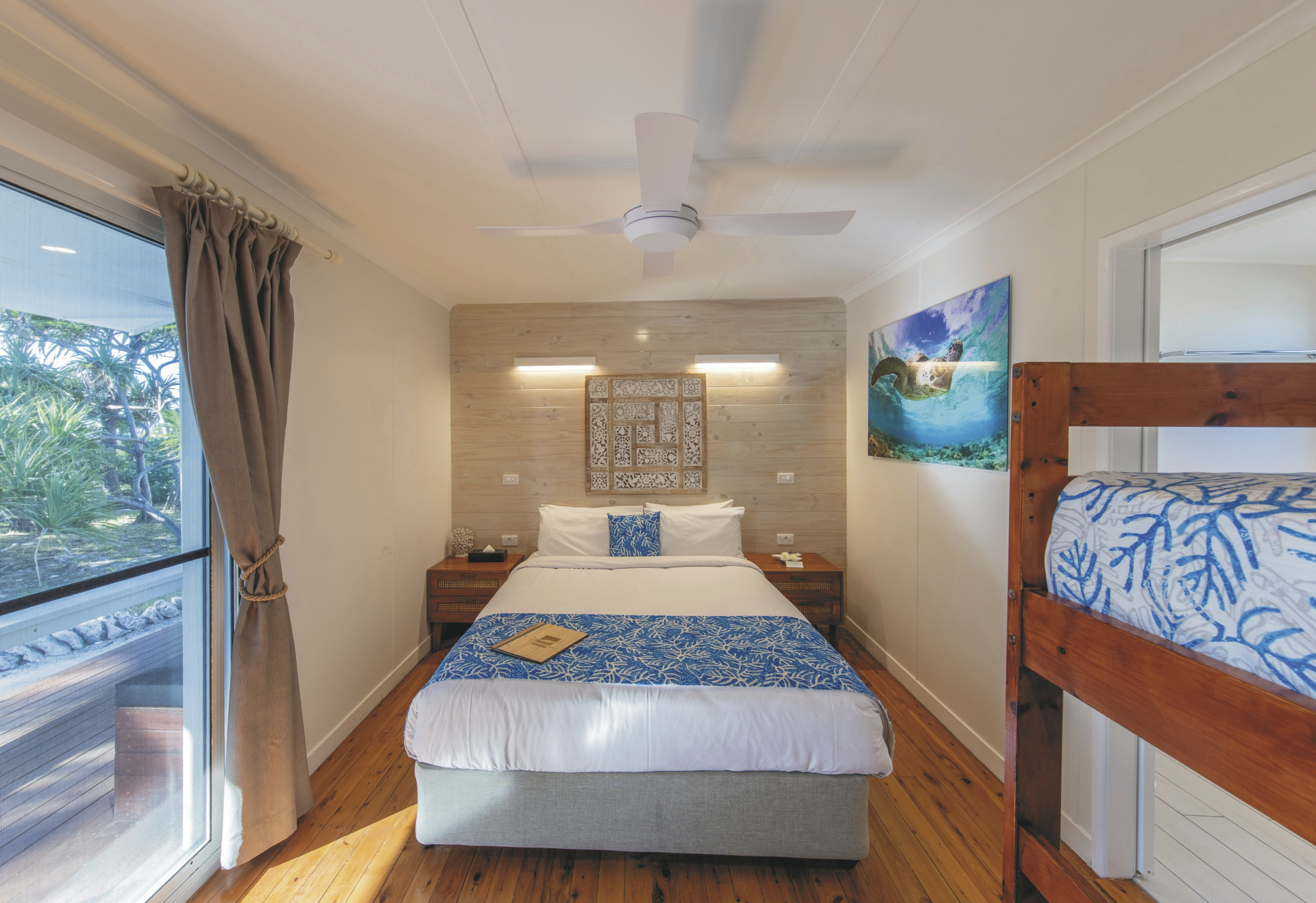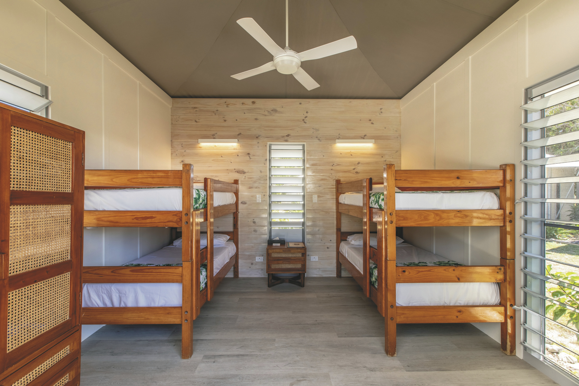 Das Resort bietet verschiedene komfortable Unterkünfte. Darunter 13 einfache Eco Cabins, die nur 20 bis 30 Meter von der Lagune entfernt liegen und mit Holzfußboden, großer Glasschiebetür, zwei Stockbetten, elektrischem Licht, Deckenventilator sowie Außendeck mit zwei Stühlen ausgestattet sind und Zugang zu einem in der Nähe liegenden Gemeinschaftsbad mit Duschen und Toiletten haben. Die 9 Gartenblick-Zimmer (20-30 Meter vom Meer) und die 15 Meerblick-Zimmer (ca. 10 Meter vom Meer entfernt) sind jeweils in Dreierblöcken angeordnet und bieten entweder ein Doppelbett oder eine Kombination aus Doppelbett und Etagenbett, polierte Holzböden, Bad mit Dusche/WC, Deckenventilator, kleinen Kühlschrank, Tee-/Kaffeezubereiter sowie einen Balkon. Telefon, TV oder WLAN gibt es jedoch nicht in den Unterkünften.