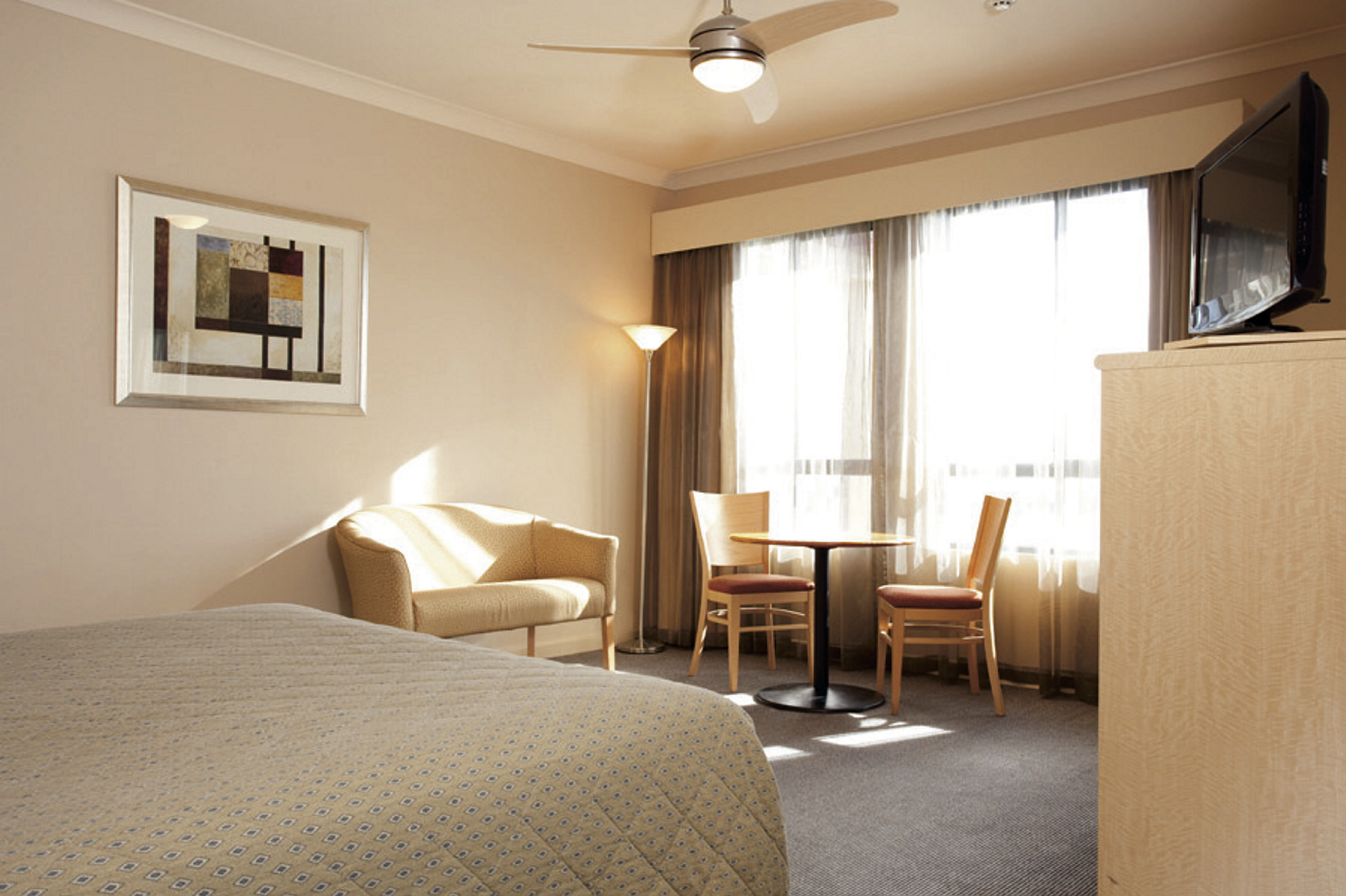 64 Zimmer und Apartments. Die Standardzimmer sind ausgestattet u.a. mit Klimaanlage, Bad mit Wanne und Dusche, TV, Telefon und Minibar. Die Aussicht ist eingeschränkt.