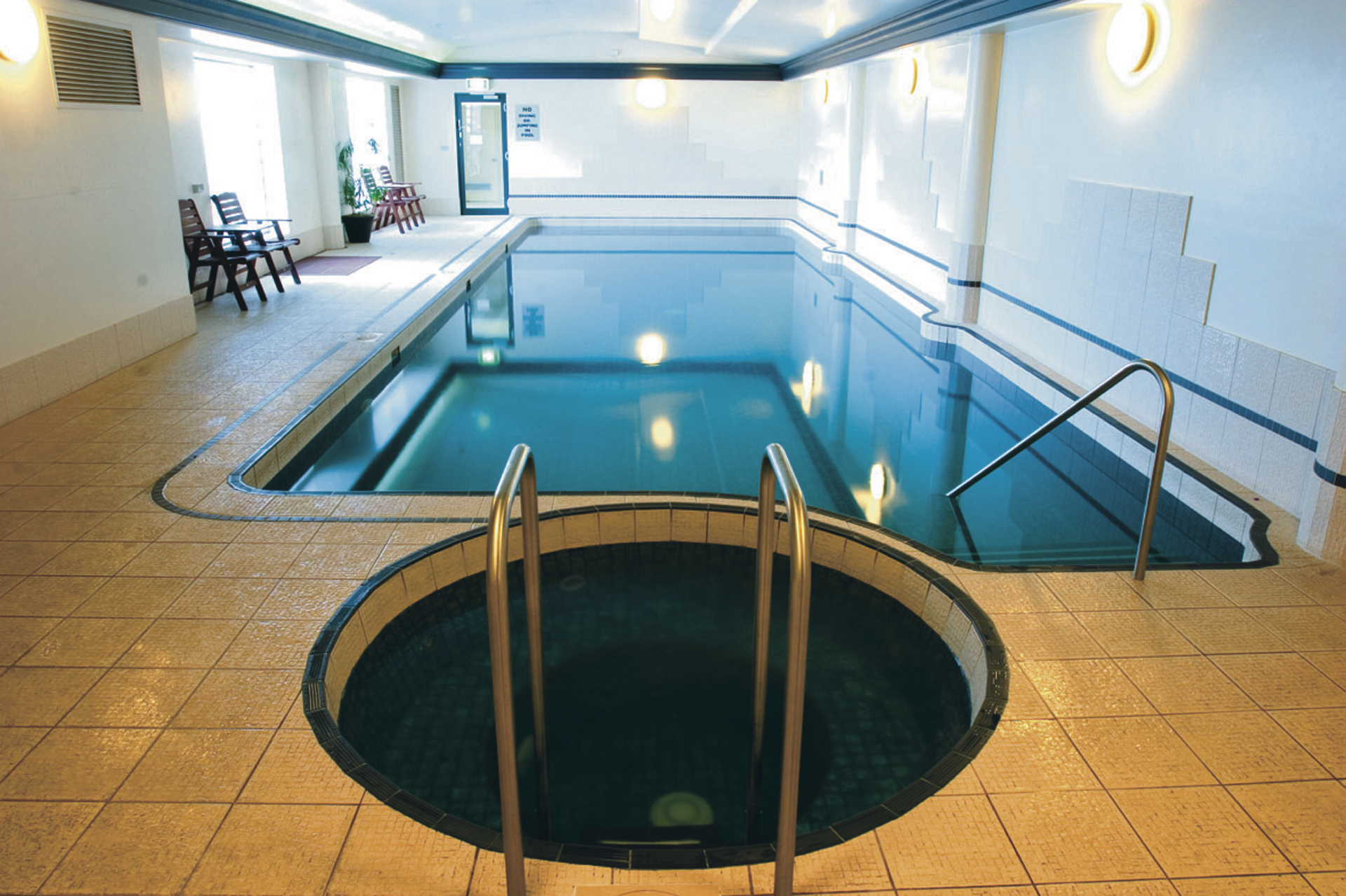 Ruhig gelegenes Hotel u.a. mit Restaurant, Bar, Swimmingpool, 18-Loch-Golfplatz (gegen Gebühr), kostenlosem WLAN und Gästewaschmaschinen.