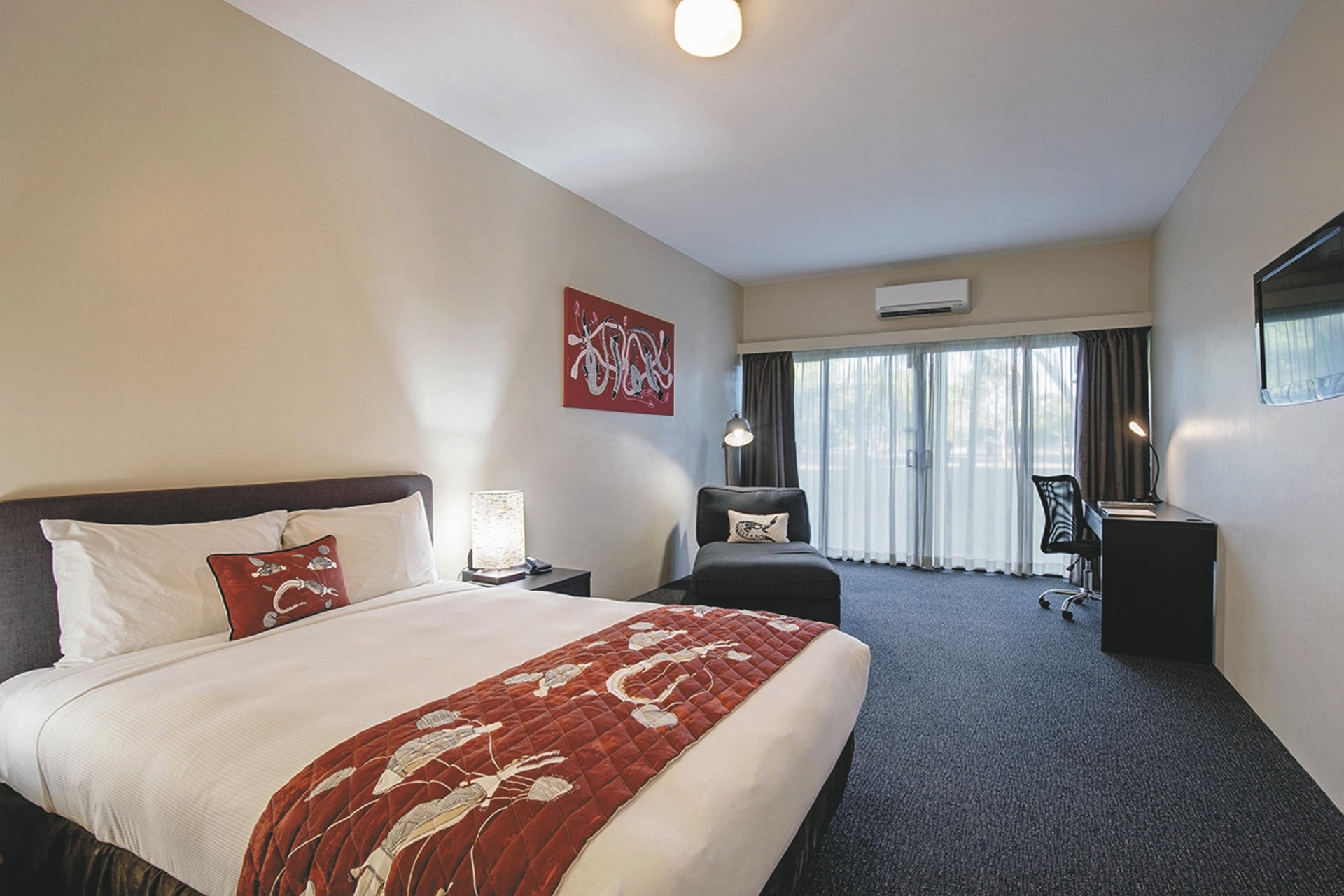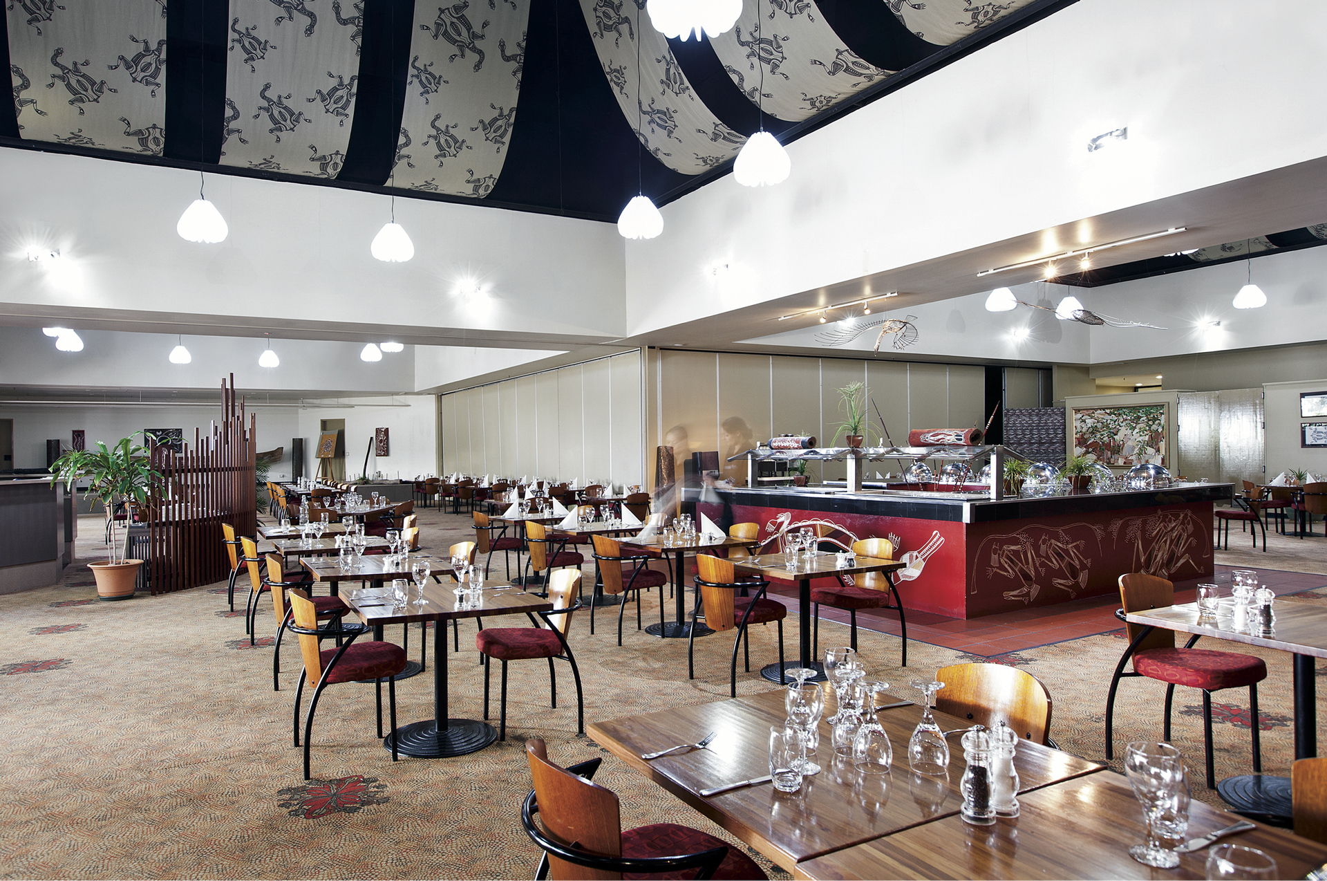 In Krokodilform - architektonisch einmalig. Das Hotel bietet u.a. einen Swimmingpool, Restaurant und Bar, eine Galerie mit lokaler indigener Kunst, einen Souvenirladen, Gästewaschmaschinen/-trockner sowie kostenfreies WLAN und kostenfreie Parkplätze. Das Manjmukmuk Restaurant bietet ein reichhaltiges Frühstücksbuffet, leichte Mittagessen, Abendessen à la carte und eine umfangreiche Wein- und Barkarte. An angenehmen Abenden können die Getränke auch im Außenbereich genossen werden.