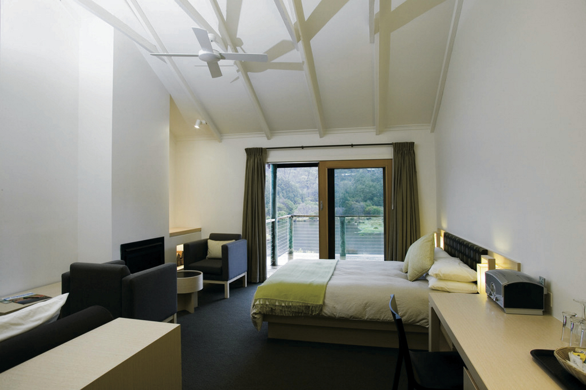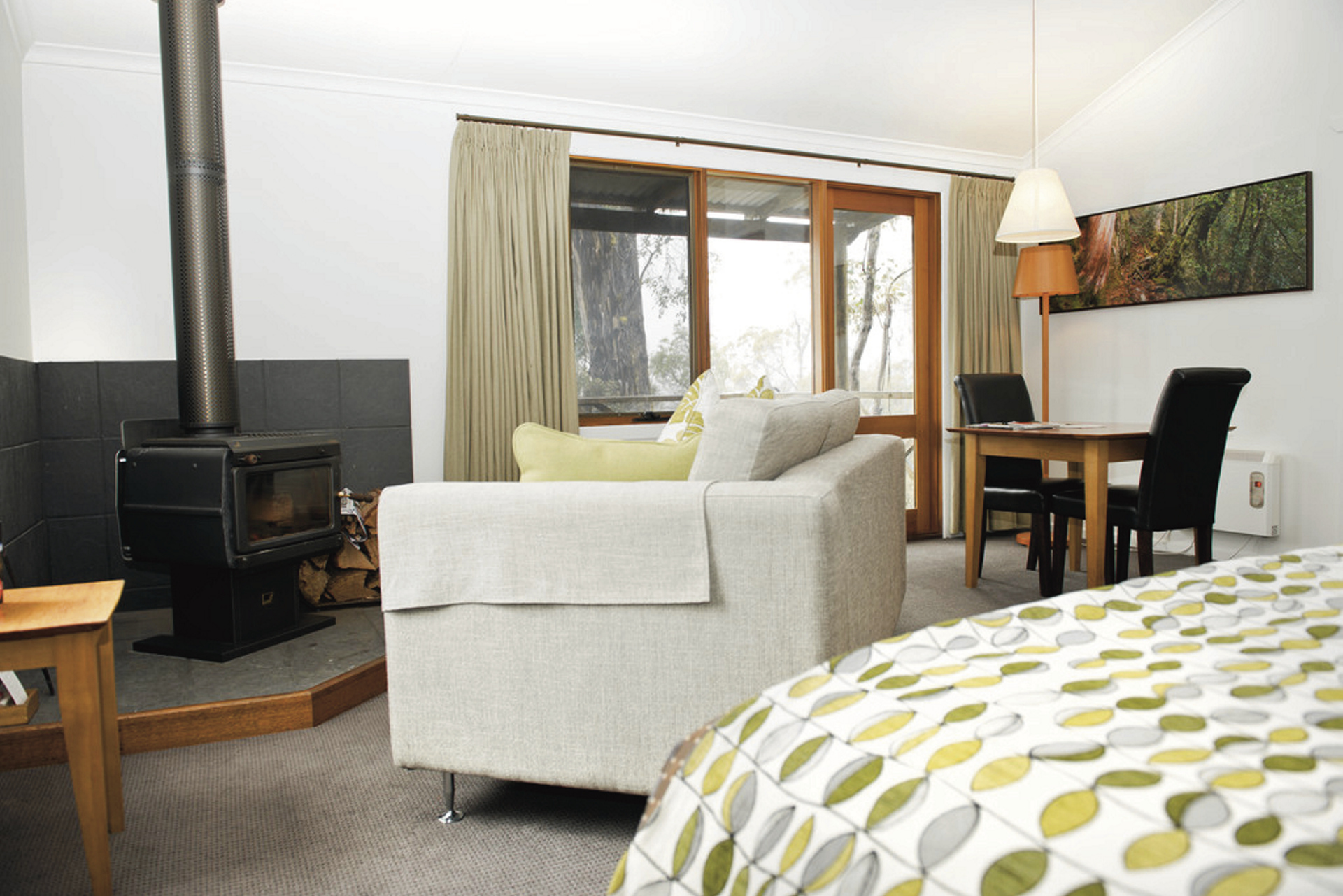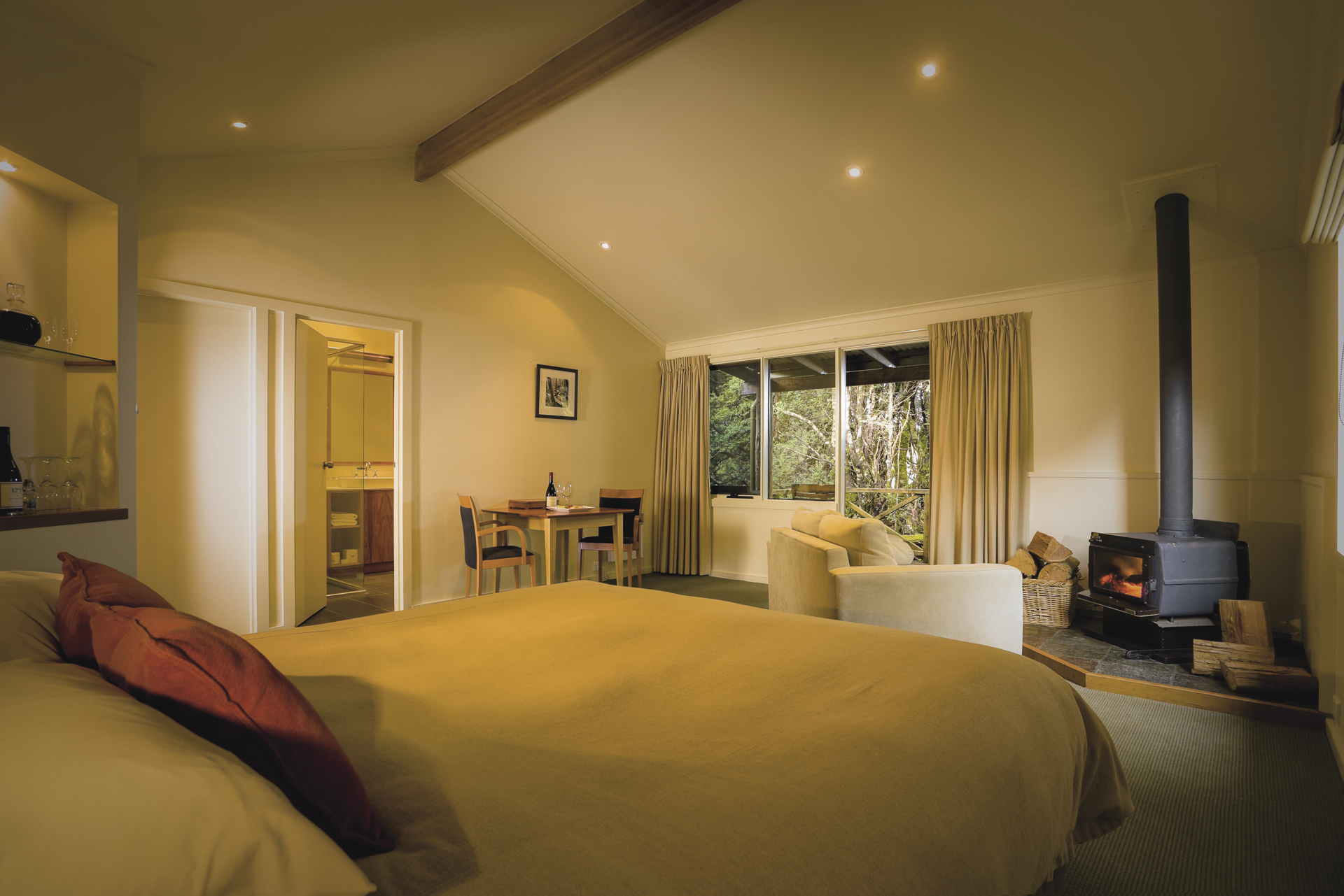 Über befestigte Wege gelangen Sie zu den 79 gemütlichen Zimmern, die in verschiedenen Holzbungalows weitläufig um die Lodge herum liegen. Ein Holz- oder Gasofen gehört zu jeder der komfortabel ausgestatteten Unterkünfte, ebenso ein Parkplatz vor der Tür. Spa Cabins besitzen zusätzlich eine große Badewanne und eine private Veranda.