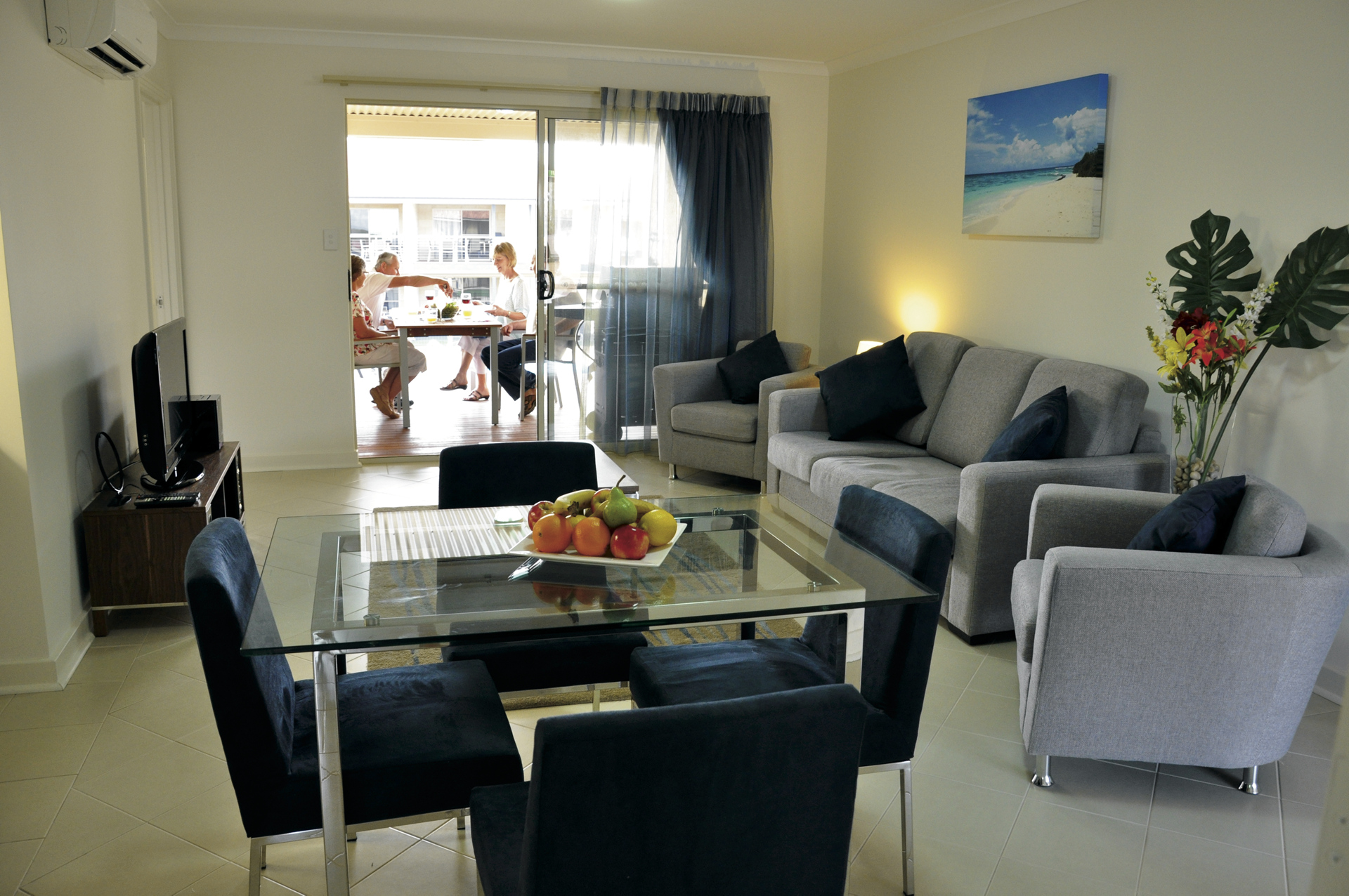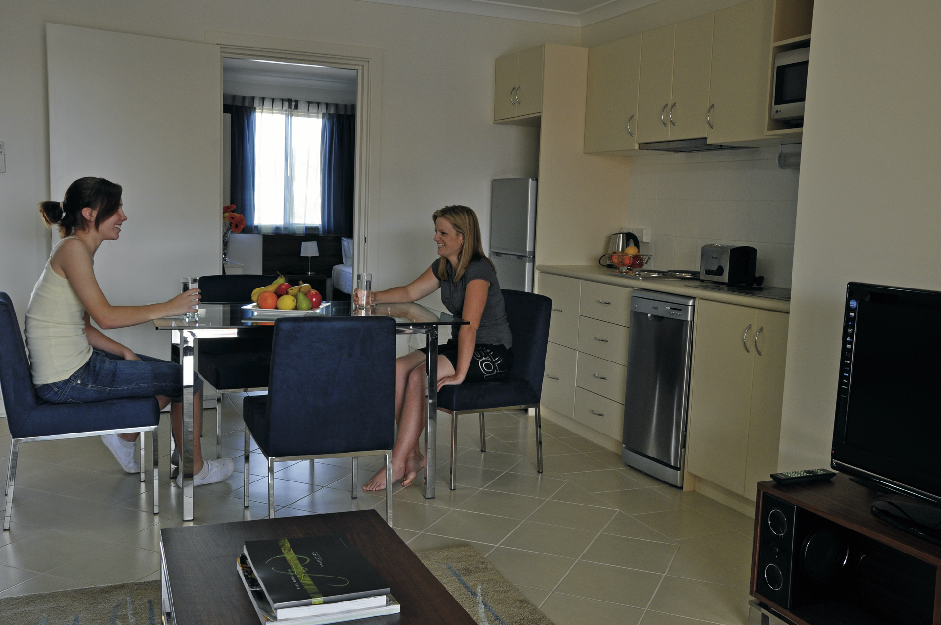 26 Studios und Apartments, hell und komfortabel, mit Klimaanlage, TV und modernem Bad. Studios mit Queensize-Bett, Mikrowelle und Tee-/Kaffeezubereiter. Spa-Suites mit Eckwanne, Kingsize-Bett in separatem Schlafzimmer, Küche sowie Balkon mit BBQ-Einrichtung. Apartments mit 2 Schlafzimmern/Bädern und Waschmaschine/Trockner.