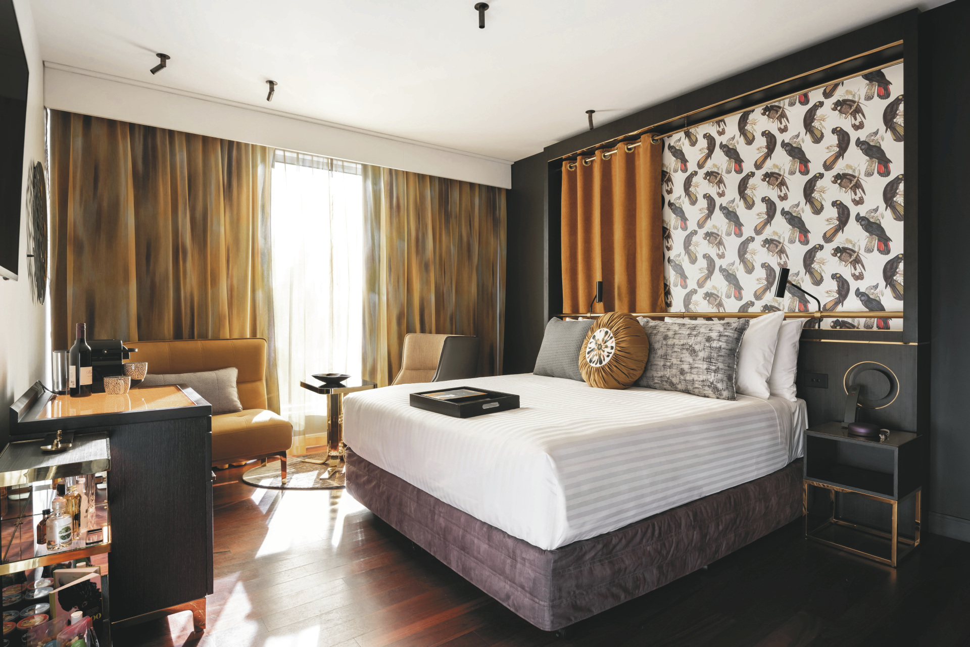 Die 184 stilvollen Zimmer sind mit lokaler Kunst, maßgefertigten Möbeln und kräftigen Farben gestaltet. Zur Standardausstattung zählen u.a. ein Kingsize-Bett oder zwei Einzelbetten, ein Bad mit Regendusche, ein Smart-TV, eine Minibar, ein Zimmersafe und eine Nespresso-Maschine. Die King-Zimmer sind ca. 30 m² groß, die Deluxe-Zimmer bieten mit ca. 35 m² etwas mehr Platz und zusätzlich eine frei stehende Badewanne. Die ca. 40 m² großen Executive-Zimmer mit doppelter Regendusche liegen auf den höheren Etagen und bieten einen garantierten Stadtblick.