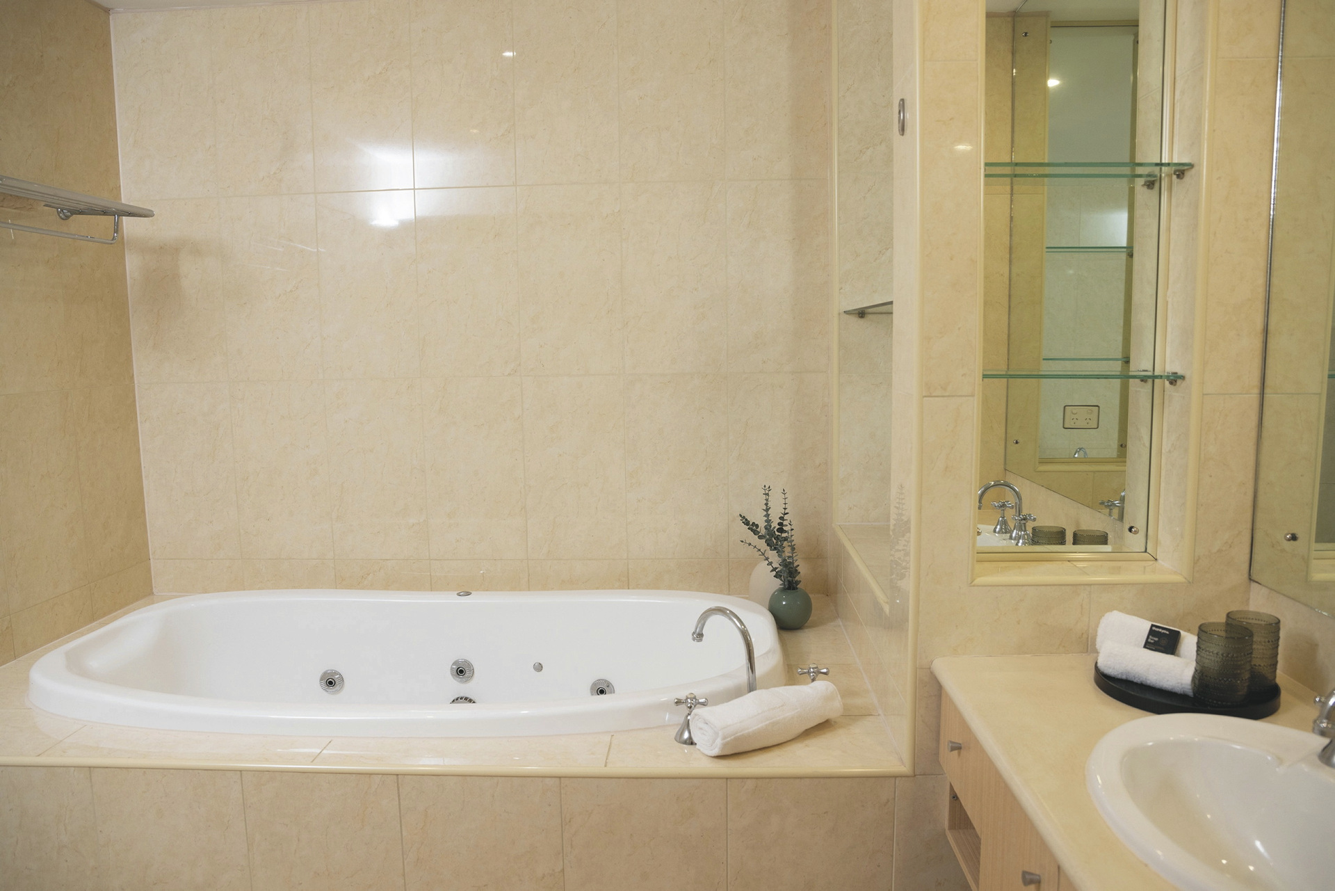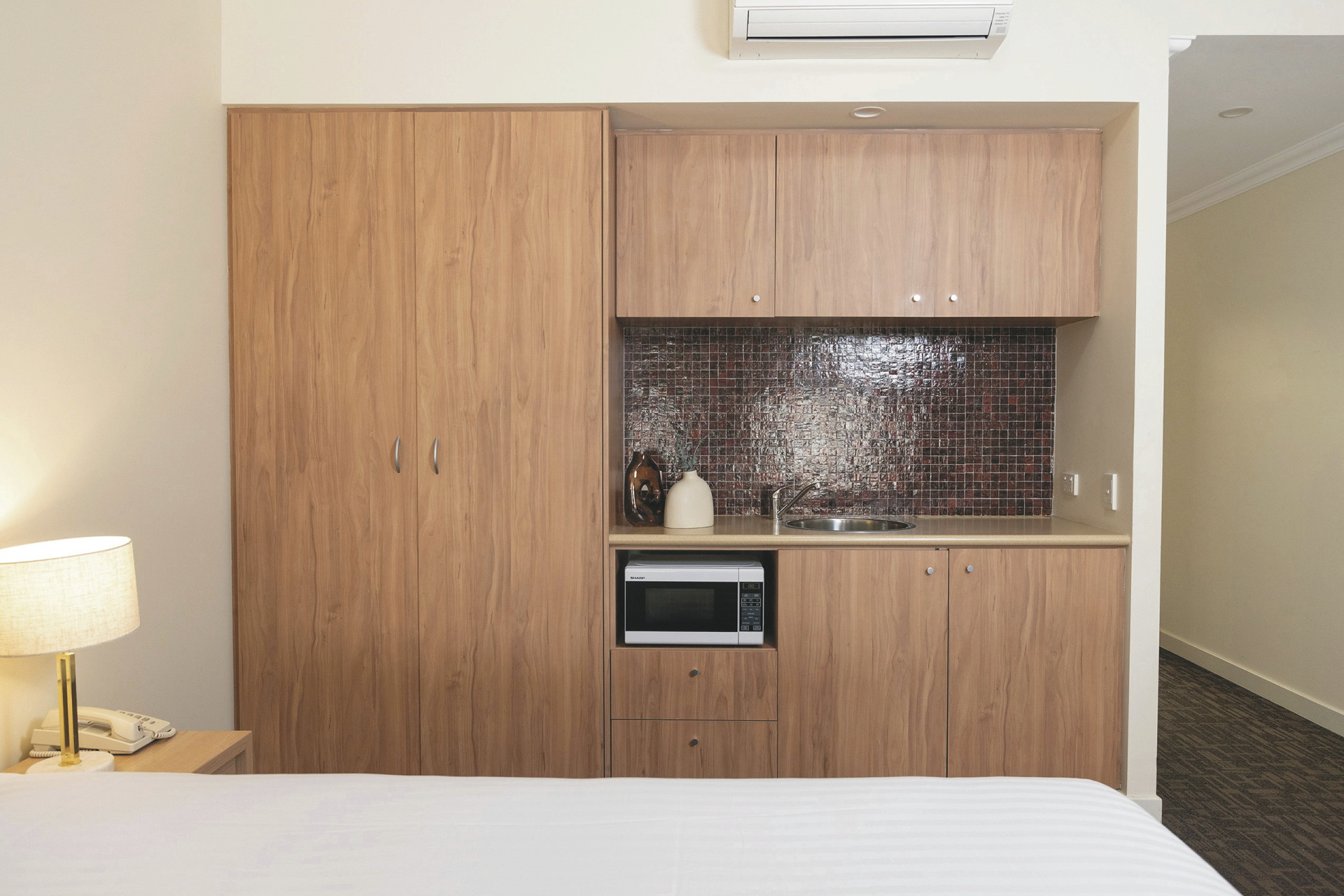91 helle, zeitgemäß eingerichtete Unterkünfte. Deluxe Studios sind u.a. mit Kingsize-Bett oder zwei Einzelbetten (Twin), Zimmersafe, TV, Minibar, Tee-/Kaffeezubereiter sowie Bad mit Whirlpool-Wanne für Zwei ausgestattet.