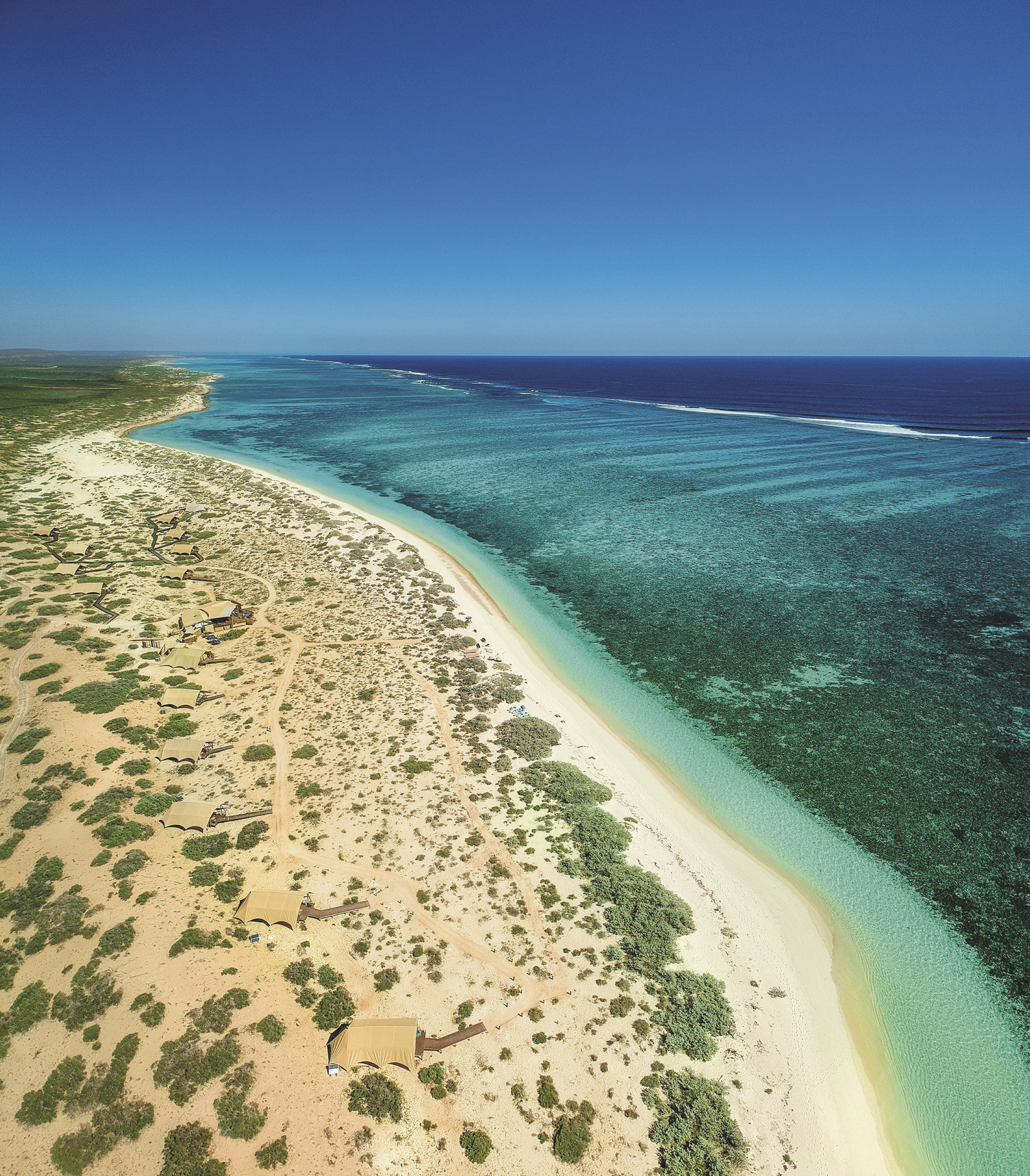 Ein exklusives Safari-Camp versteckt in den weißen Sanddünen des Cape Range Nationalparks.