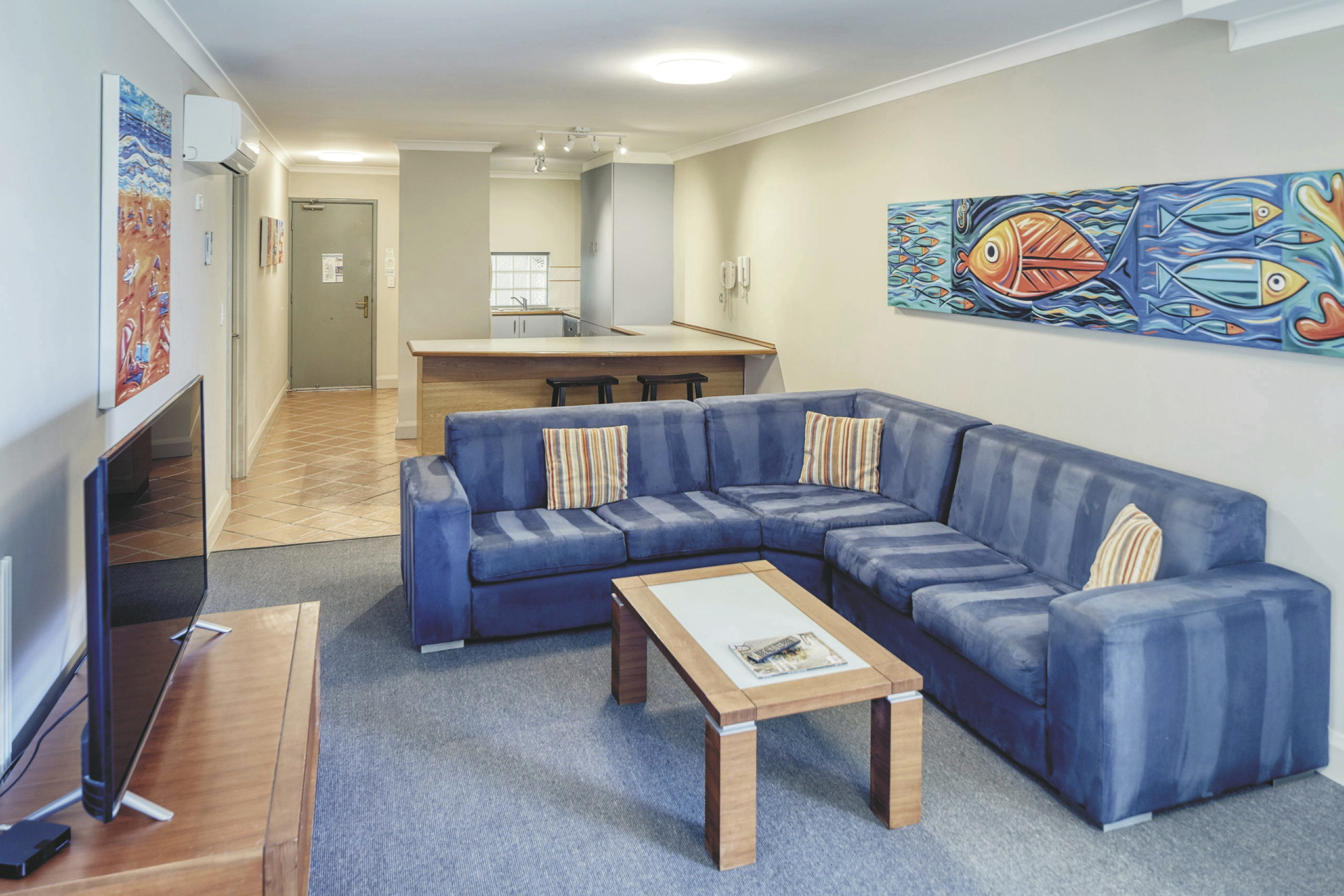 Komfortable Apartments mit Blick auf die neu gestaltete Uferpromenade und den Indischen Ozean.