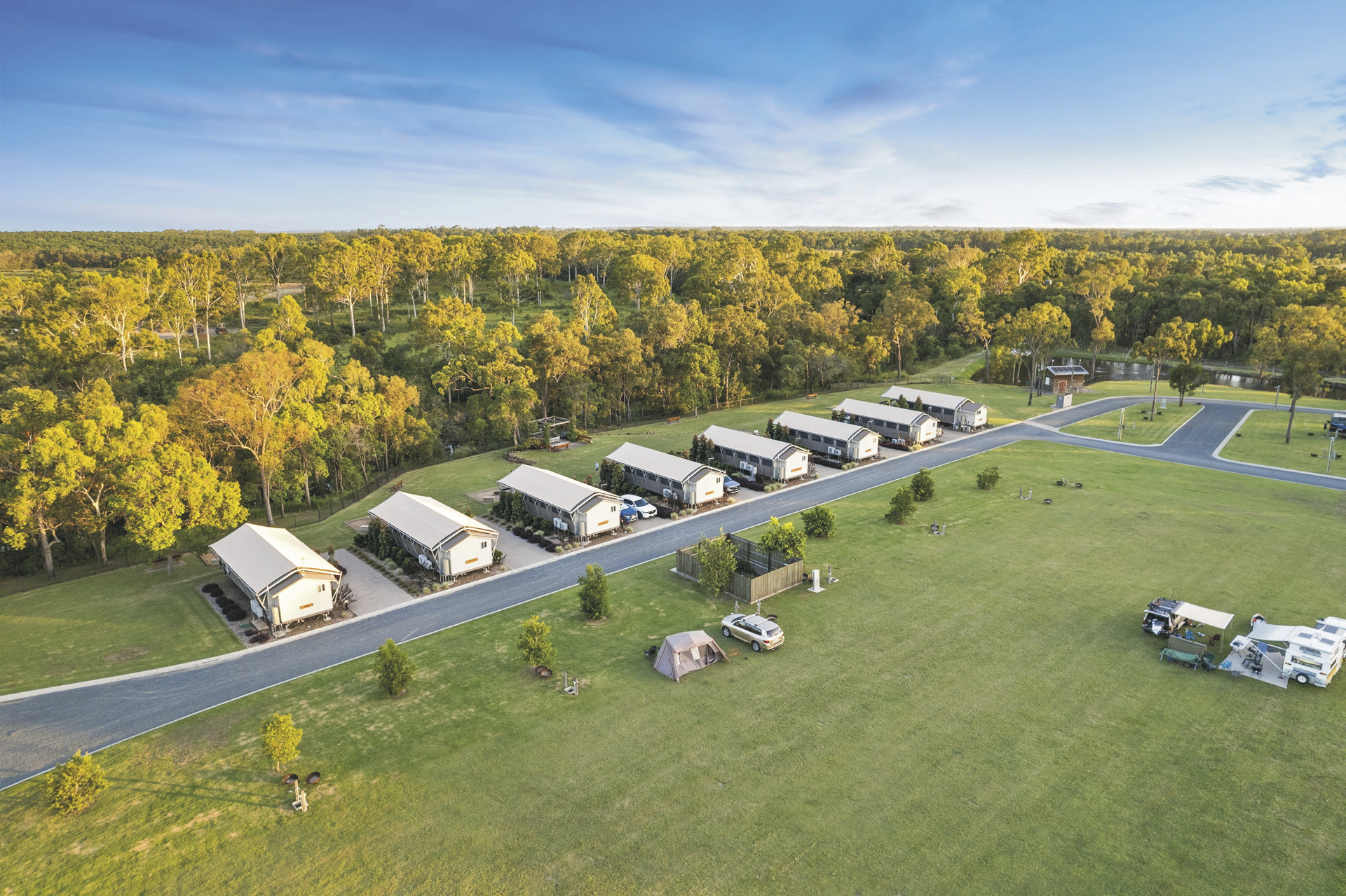 Die 2017 von Familie Clark übernommene, 160 Hektar große Farm liegt inmitten von tropischem Buschland und grenzt an den Splitters Creek, der in den wunderschönen Burnett River von Bundaberg mündet. Die aktive Farm ist heute auch Zufluchtsort für gerettete Nutztiere und Heimat für einheimische Tiere wie Wallabys und Schnabeltiere sowie zahlreiche Vogelarten. Die Farm kann auf eigene Faust oder (optional) im Rahmen einer geführten Tour erkundet werden.Für Übernachtungsgäste gibt es einen Campingplatz, an dessen Rand sich auch die komfortablen Zeltbungalows befinden. WLAN ist kostenfrei, Waschmaschinen/Trockner sind gegen Gebühr nutzbar. Geschäfte und Restaurants befinden sich in Bundaberg.