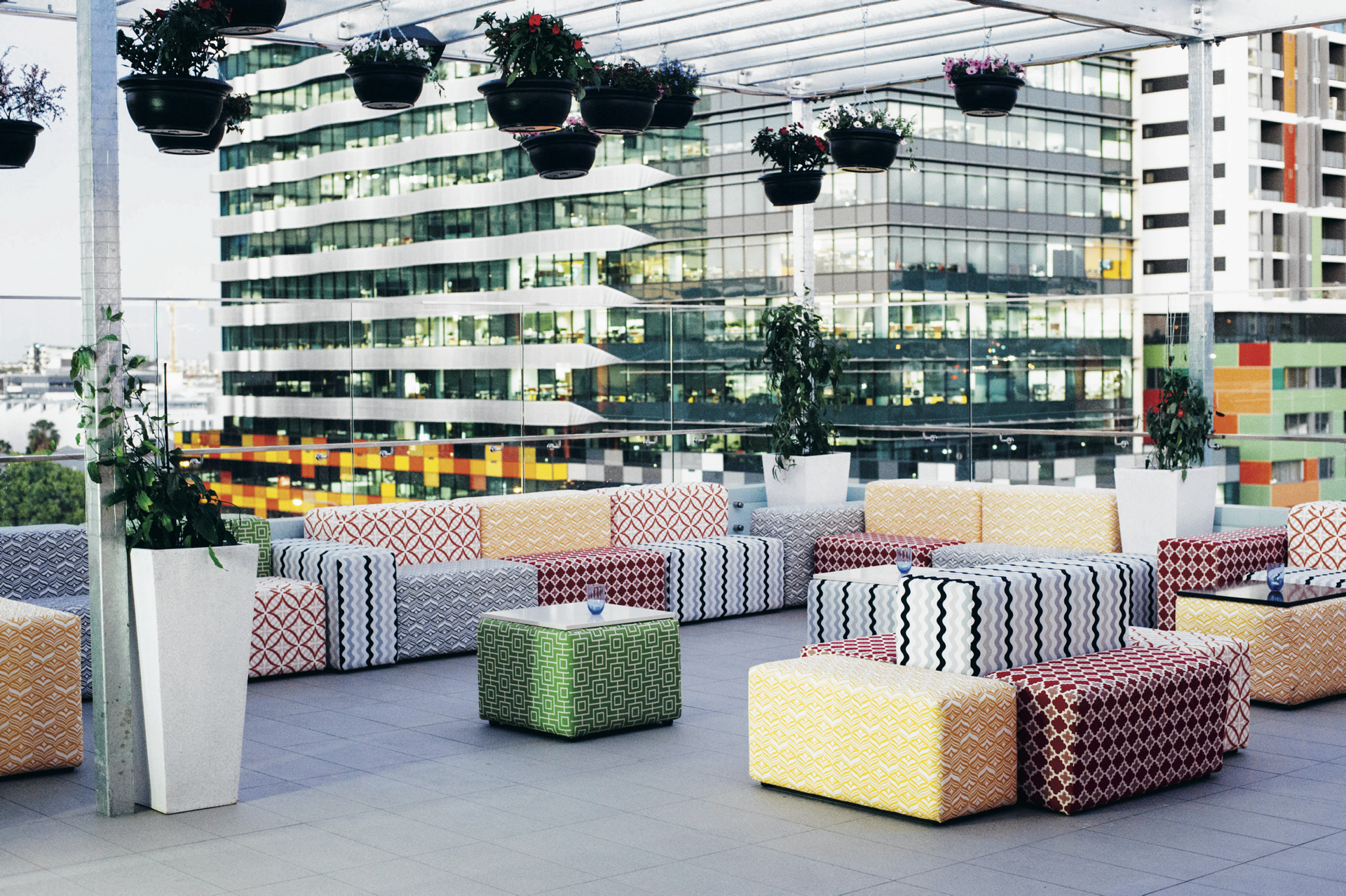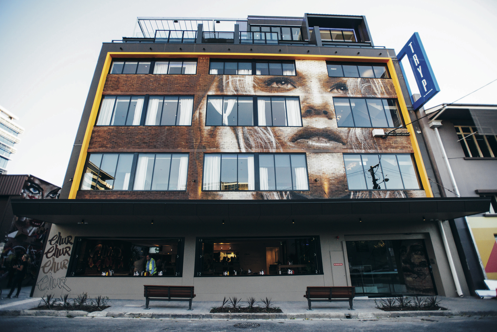Modernes Design mit rustikalen Elementen und eindrucksvolle Street Art sorgen für ein einzigartiges Ambiente. Das Restaurant im Erdgeschoss verwöhnt mit leckeren Snacks, die Bar auf der Dachterrasse mit spektakulärem Ausblick. WLAN ist kostenfrei.