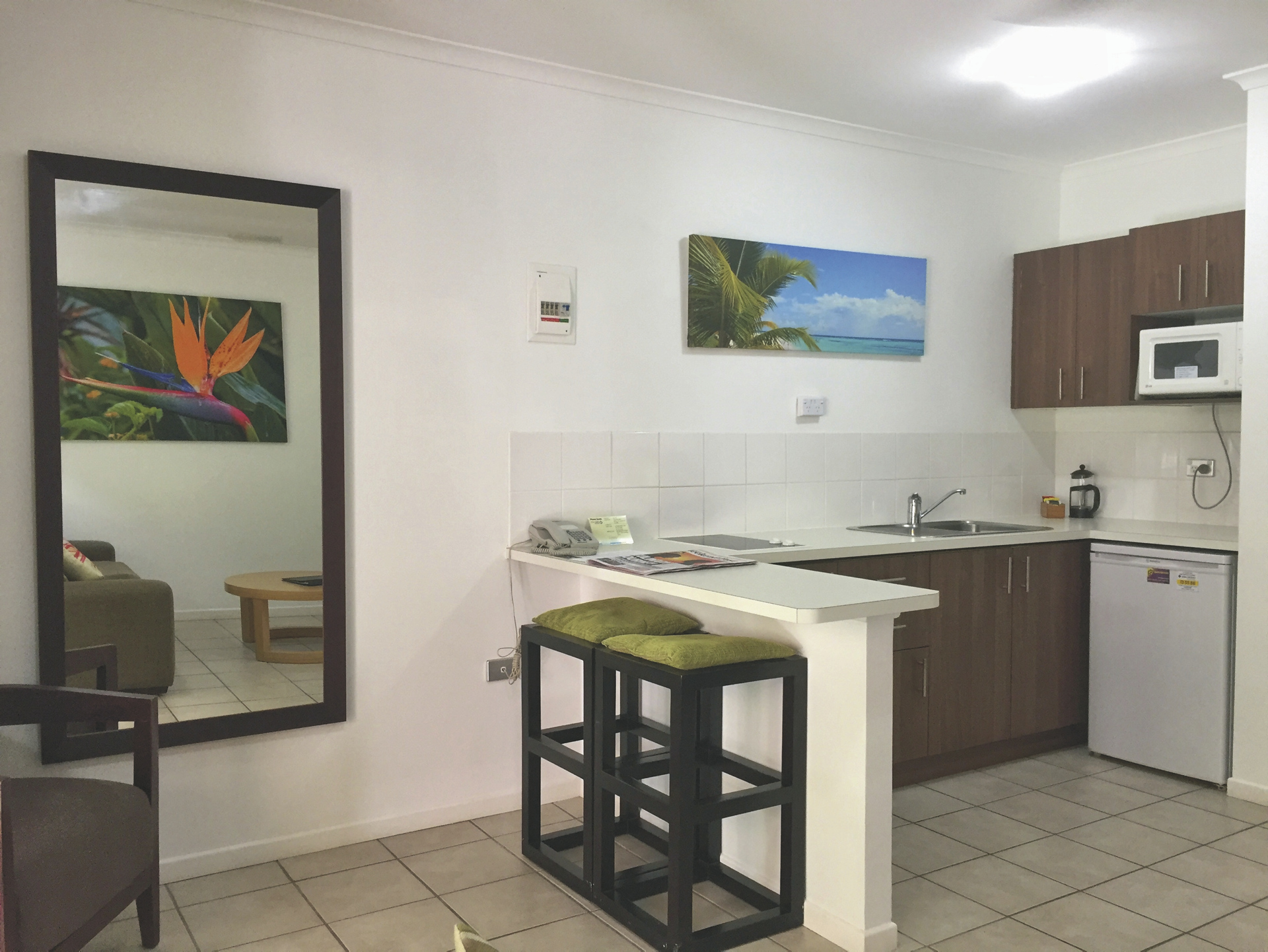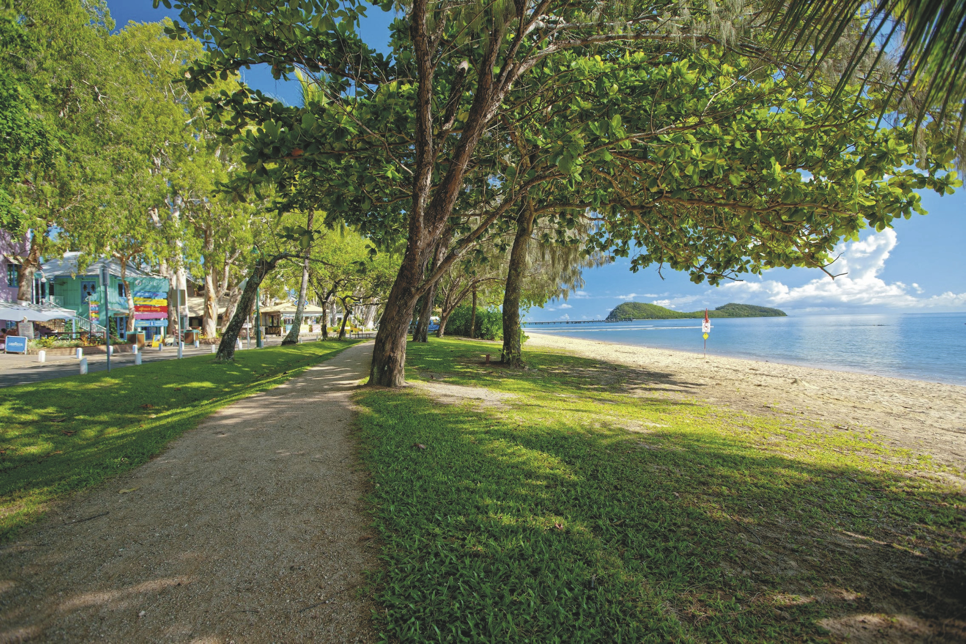 In einer ruhigen Seitenstraße im Ortszentrum, nur 50 m vom palmengesäumten Strand entfernt. Nach Cairns sind es ca. 22 km.