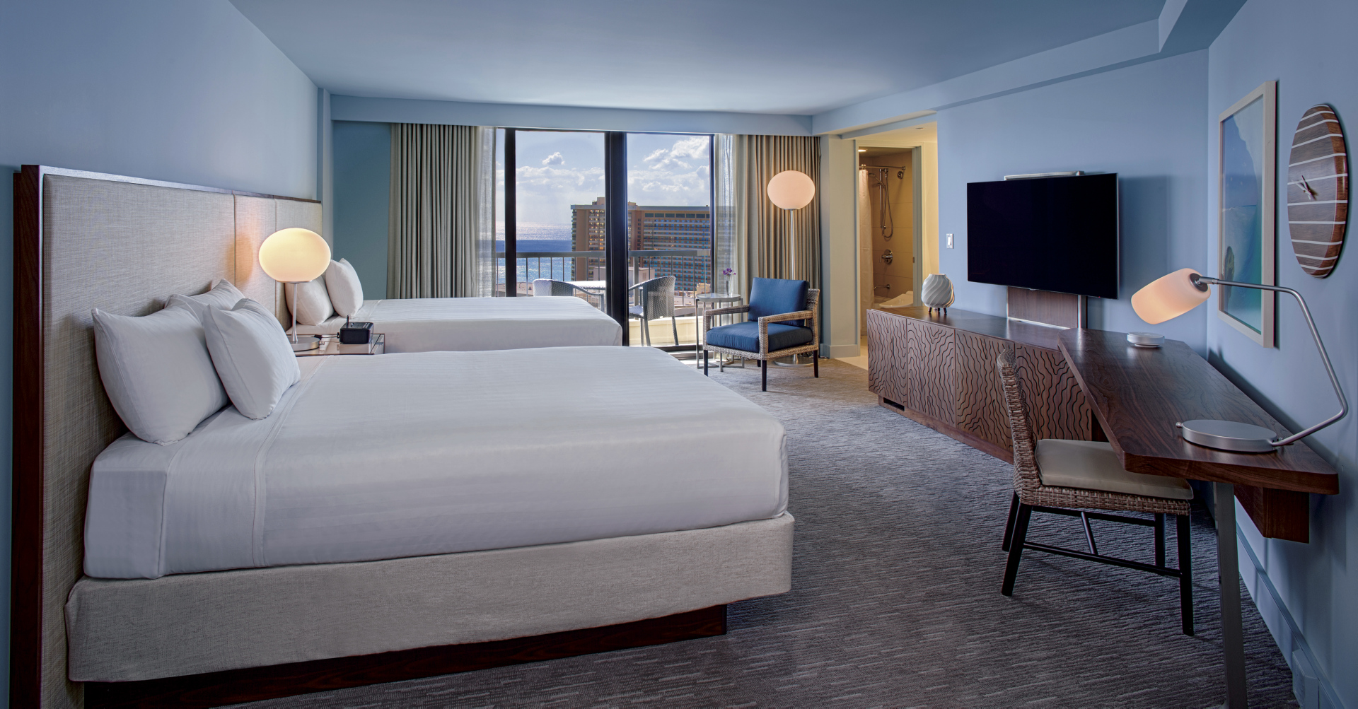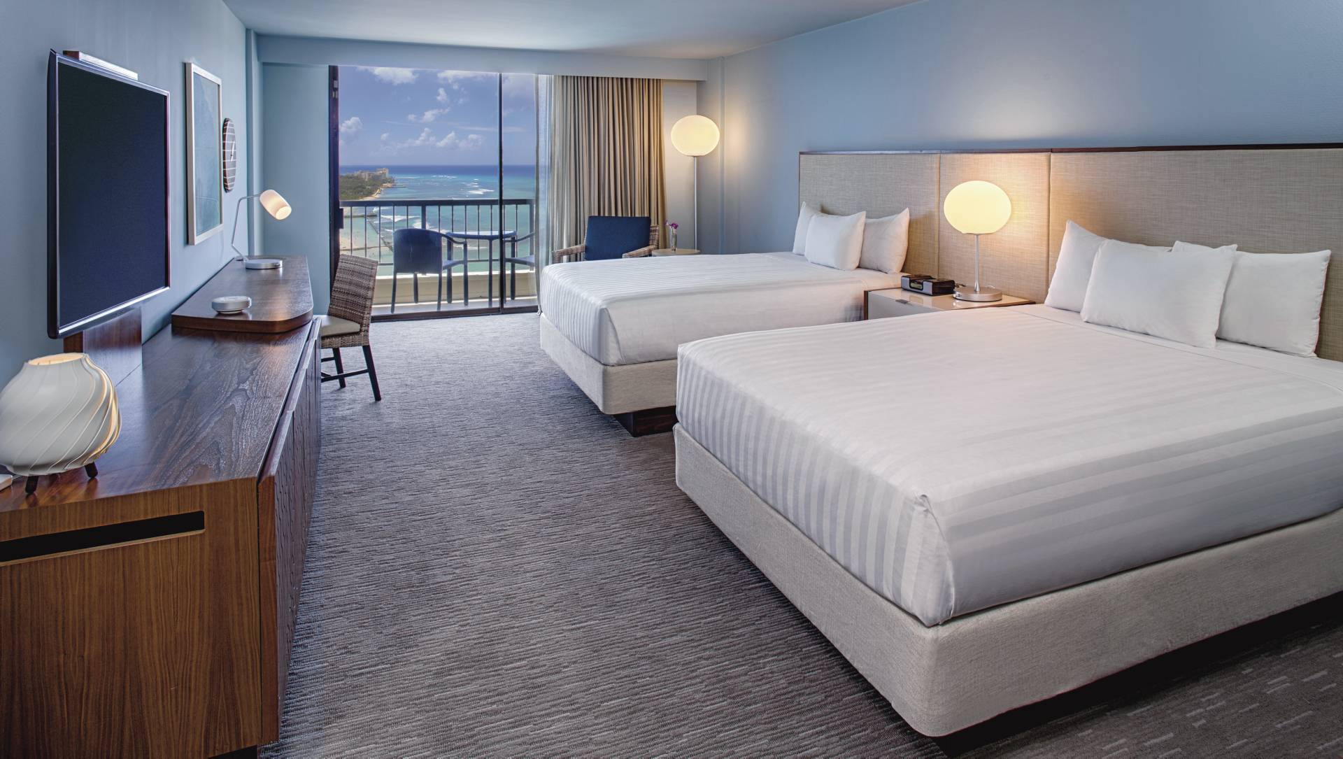 Alle 1.230 Zimmer haben einen Lanai. Im Zimmer gibt es Klimaanlage, Laptop-Safe, WLAN, TV, Telefon, Bügeleisen/-brett und einen Kühlschrank mit kostenlosem Mineralwasser. Die Badezimmer haben eine Bad-/Duschkombination, Bademäntel, Toilettenartikel und Fön.