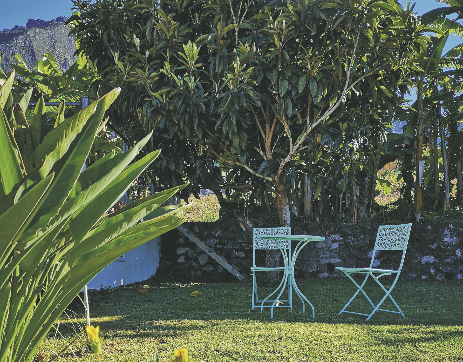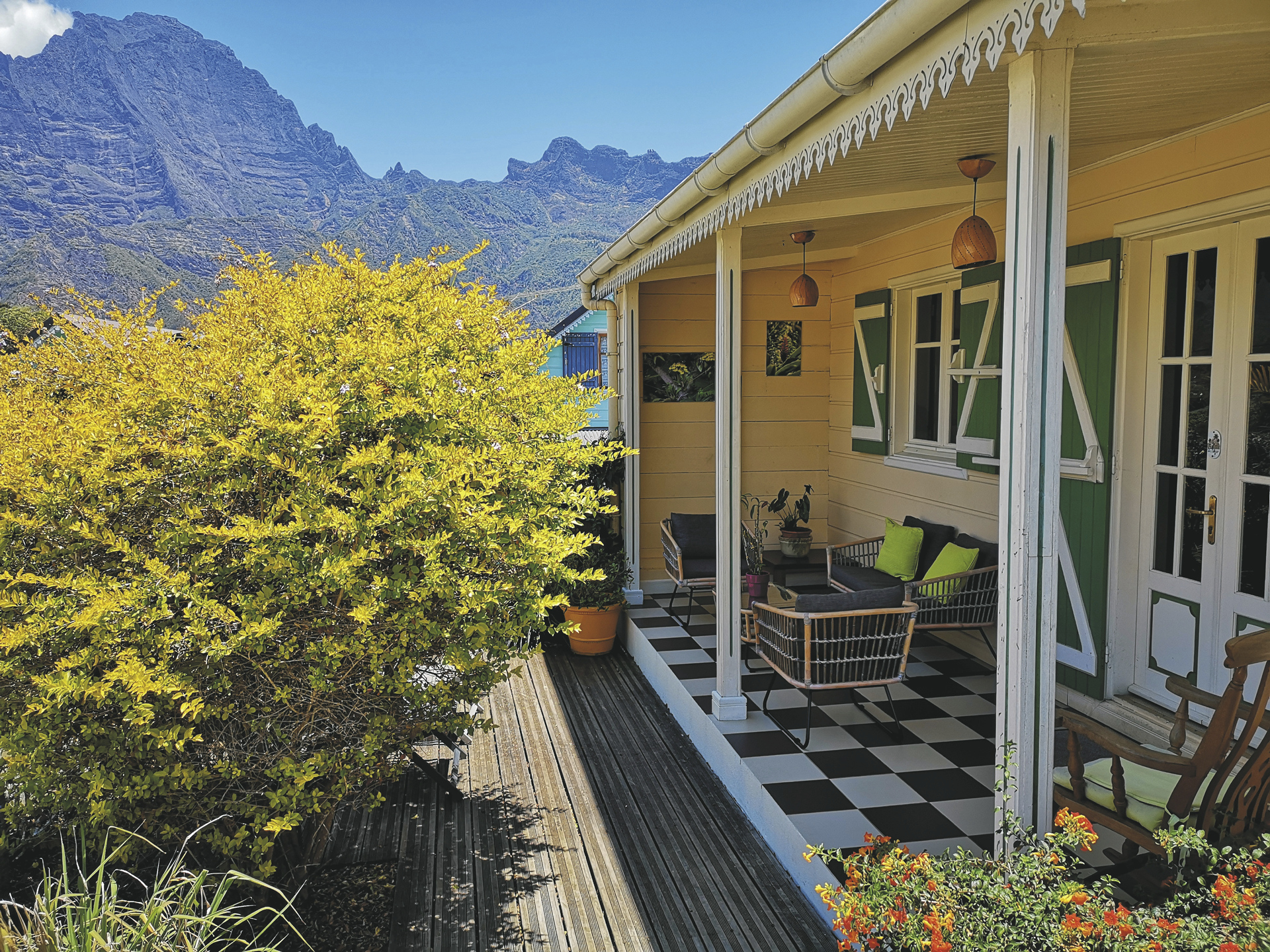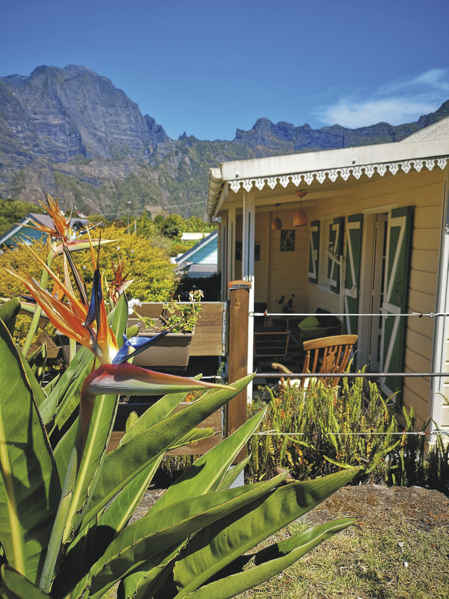 Das charmante und bunte Ferienhaus bietet jeden Morgen ein reichhaltiges Frühstück mit hausgemachter Marmelade, Joghurt und Kuchen sowie Blick auf den Piton des Neiges.