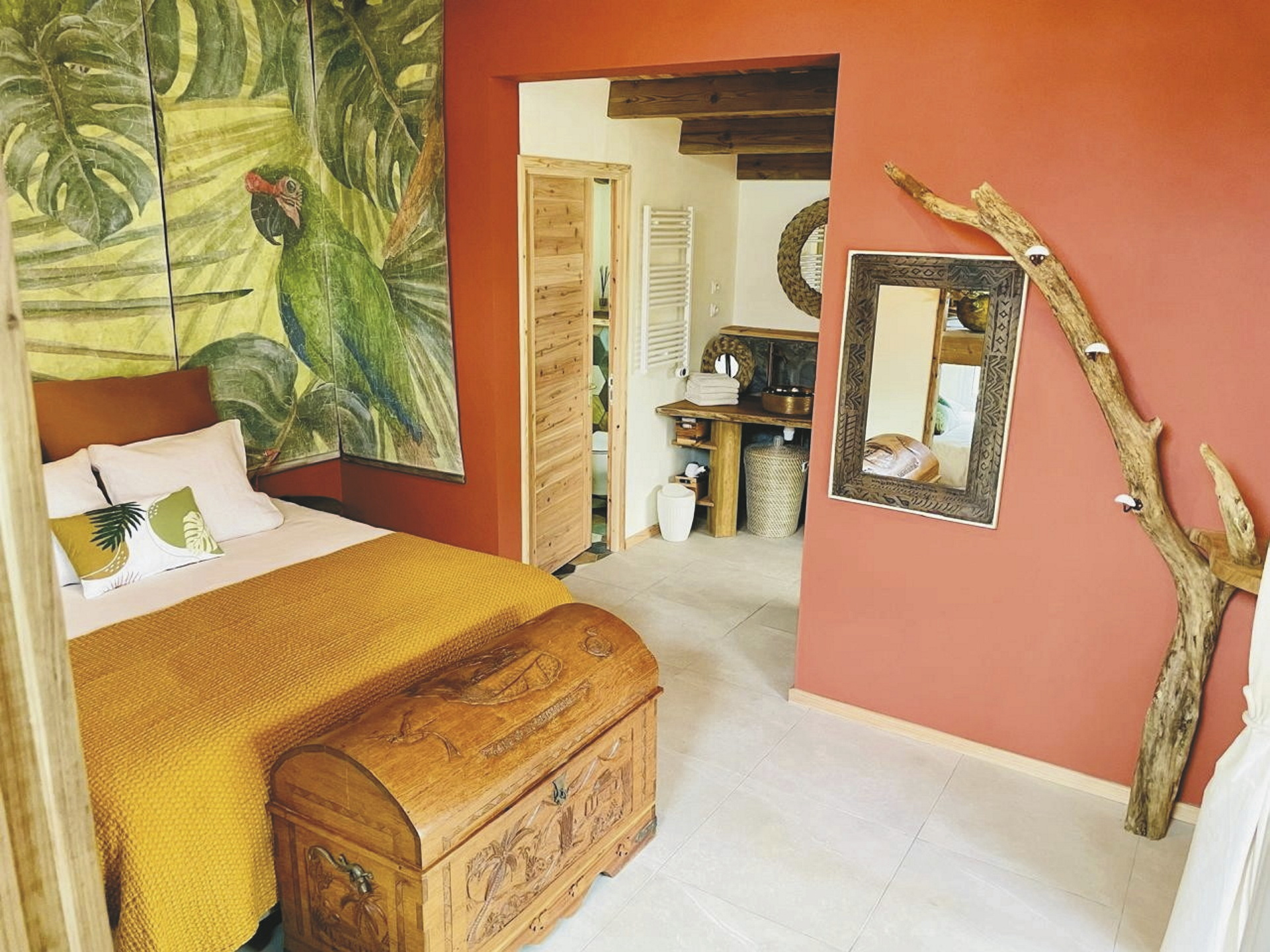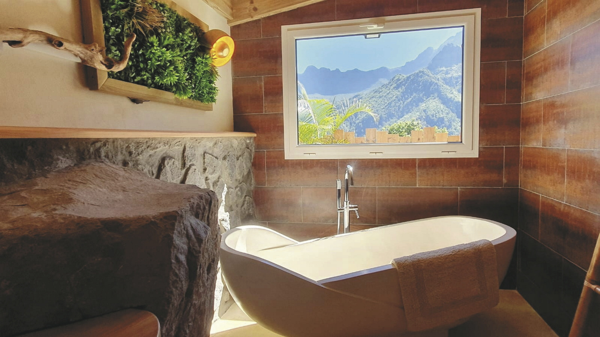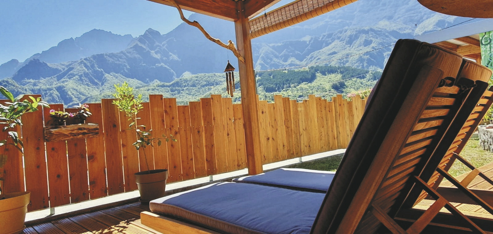Das charmante und bunte Ferienhaus bietet jeden Morgen ein reichhaltiges Frühstück mit hausgemachter Marmelade, Joghurt und Kuchen sowie Blick auf den Piton des Neiges.