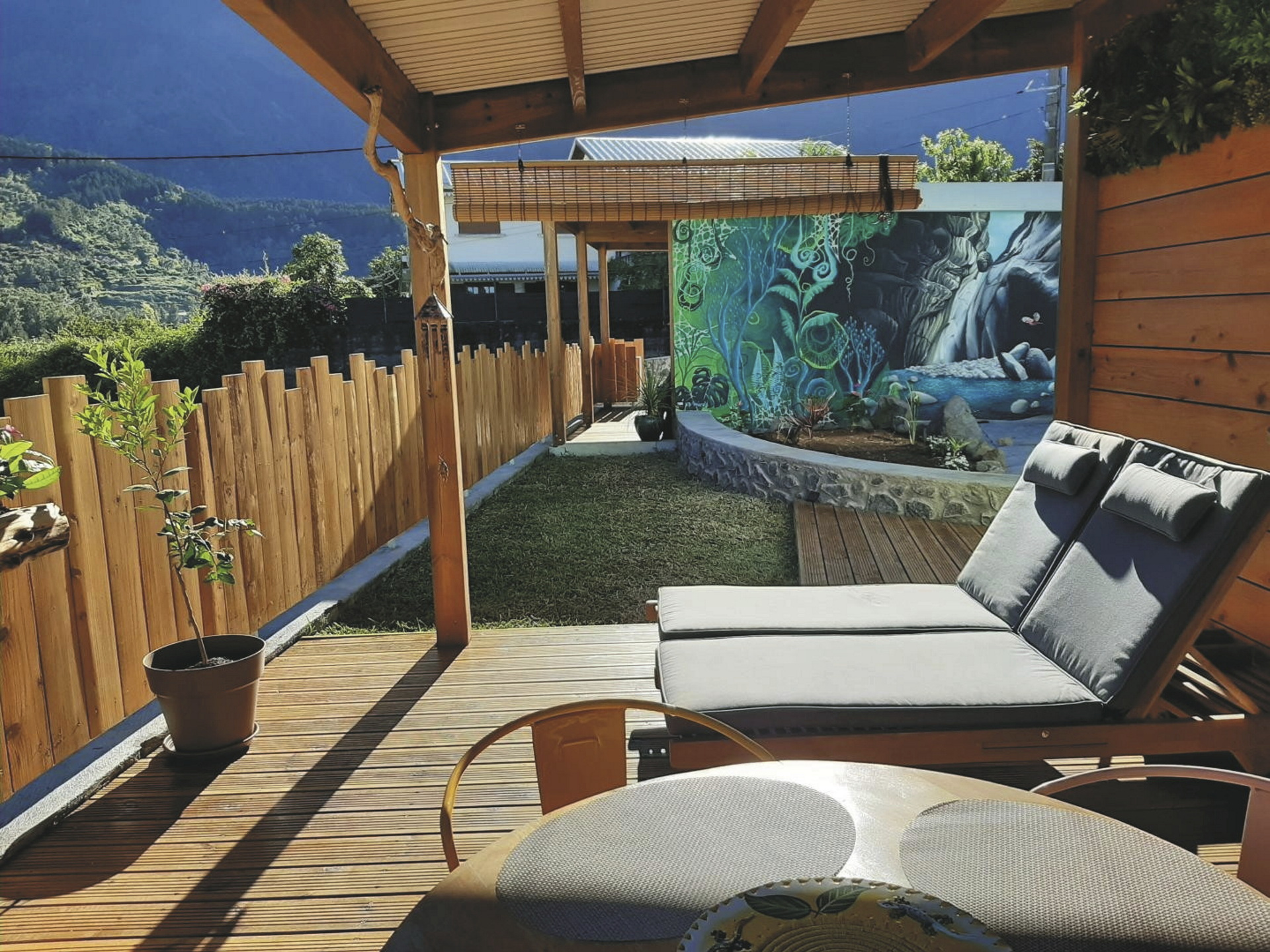 Das Ferienhaus verfügt über 4 rustikal eingerichtete Doppel- oder Dreibettzimmer sowie 1 separaten Bungalow für 2 oder 3 Personen mit eigener Veranda. Zusätzlich gibt es, ca. 5 Min. entfernt, eine 30 m² große Lodge mit fantastischem Blick auf die alpine Landschaft. Die liebevoll mit Vintage-, Einzelstücken und lokaler Kunst dekorierte Lodge ist ausgestattet mit Doppelbett, Kajütenbett, Wohnbereich mit Kaffee-/Teeecke, einem schönen Bad aus Naturstein, mit Wanne und Dusche, TV mit Netflix-Abonnement, gut ausgestattete Outdoor-Küchenzeile, große Terrasse und Parkplatz.