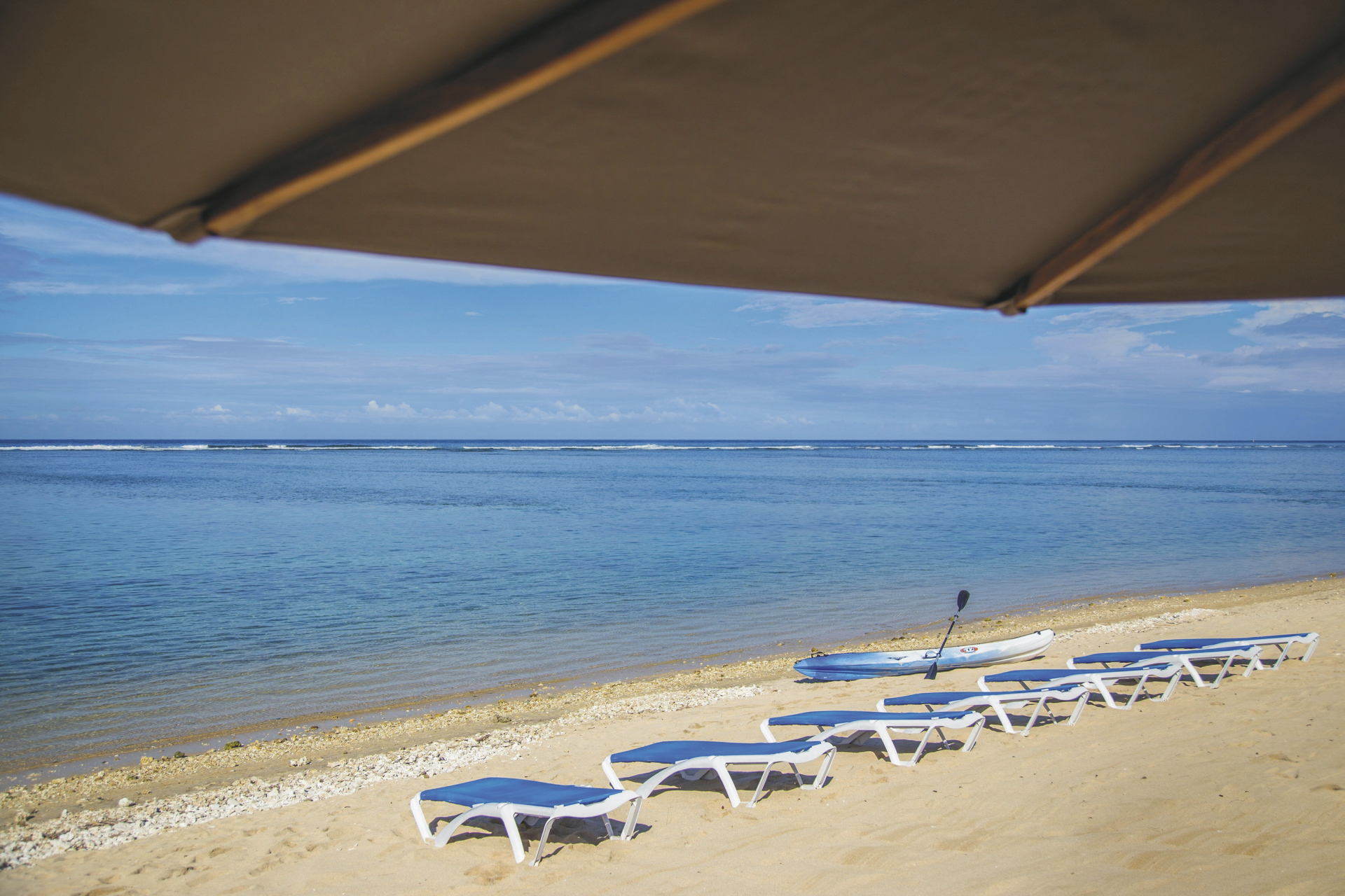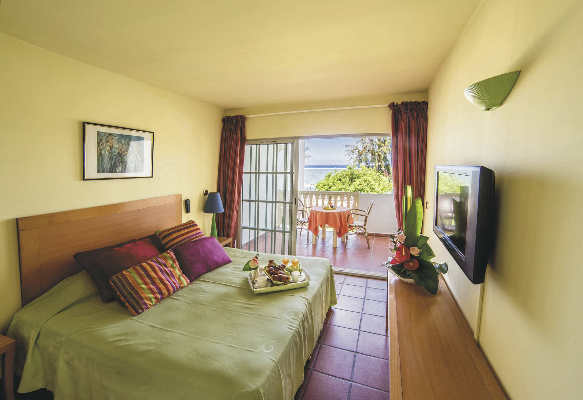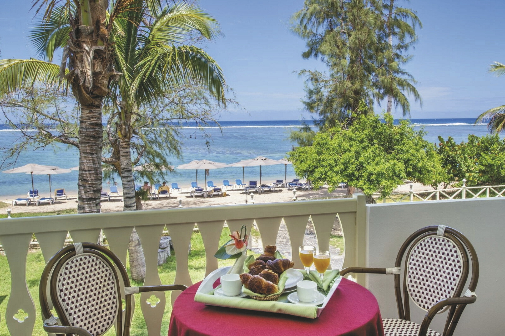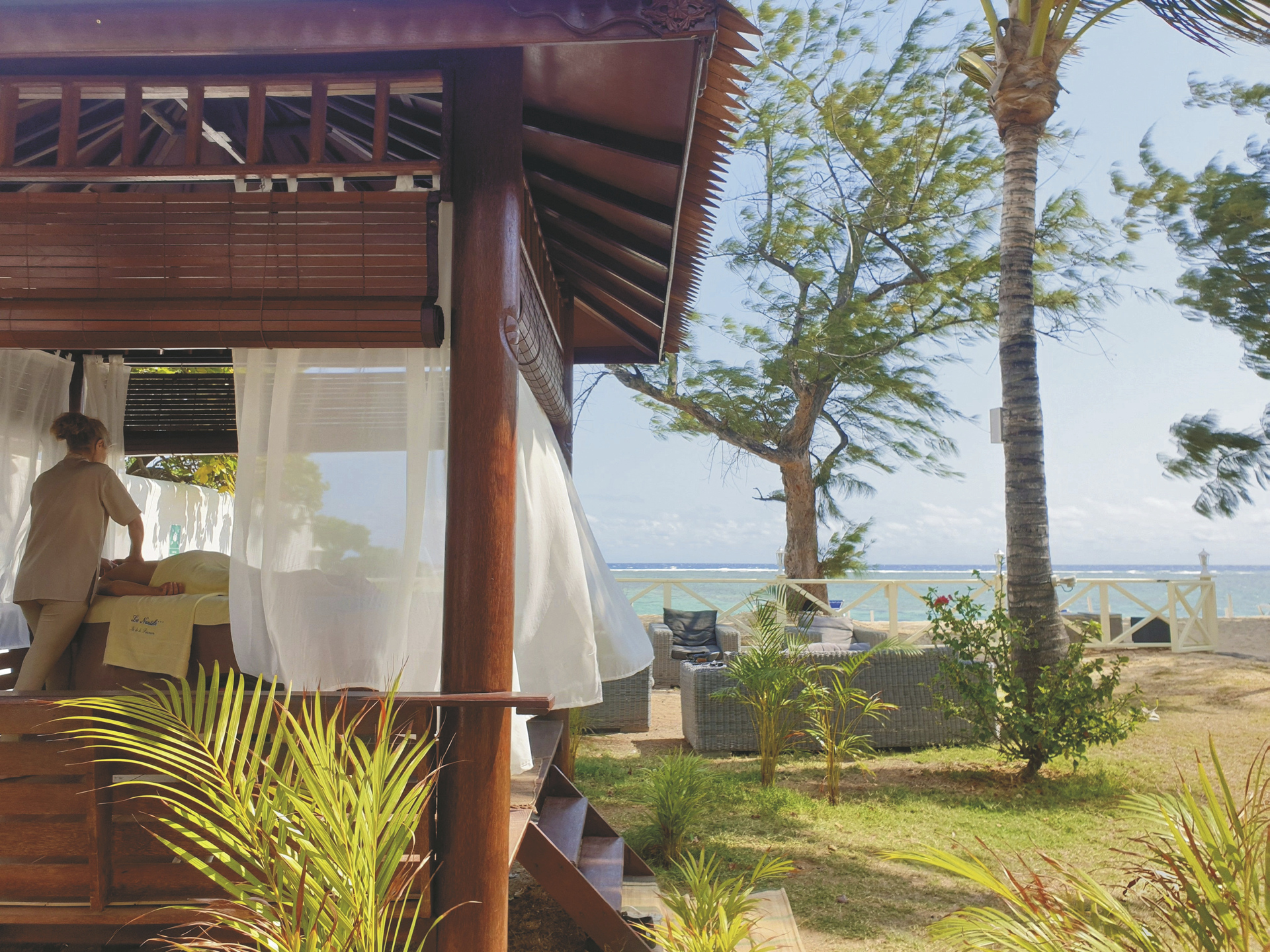 Umgeben von herrlich grüner Landschaft und Kokospalmen direkt am Sandstrand der Lagune von l'Ermitage-Les-Bains. Diese ist aufgrund ihrer reichhaltigen Flora und Fauna geschützt und das farbenprächtige Korallenriff ist ideal zum Schnorcheln.
