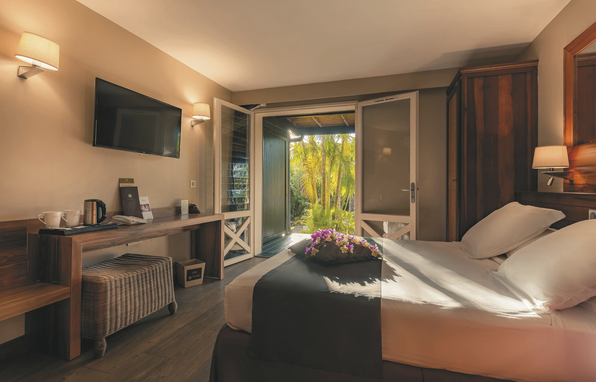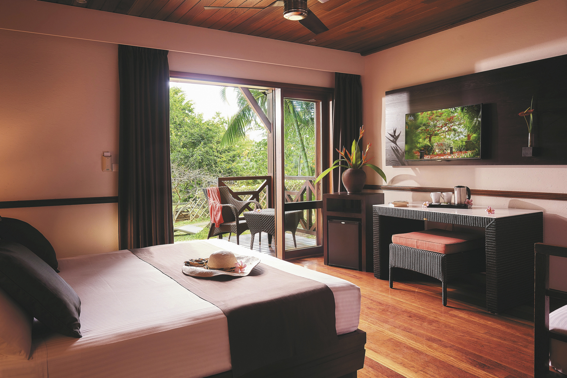 Das beliebte Hotel ist umgeben von einem 3 Hektar großen tropischen Garten und legt sehr viel Wert auf Nachhaltigkeit. Zwei Pools, ein Shop, zwei Restaurants und eine Bar stehen für die Gäste zur Verfügung. Angeboten werden unter anderem lokale Fisch- und Meeresfrüchte-Spezialitäten.