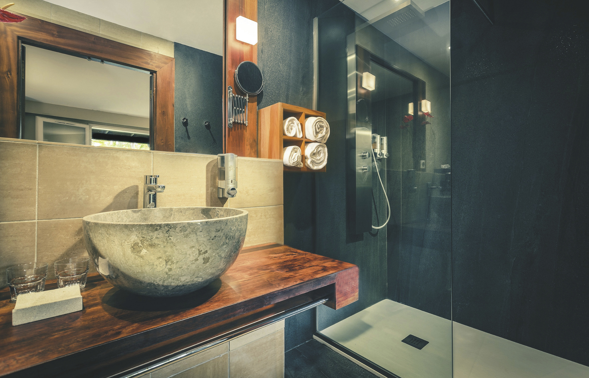 Das Hotel befindet sich in ruhiger Lage am Hang mit Blick auf den Ozean und 300 m vom Strand entfernt. Das lebendige Städtchen Saint-Leu befindet sich 5 Fahrminuten südlich und ist international bekannt für seine berühmte Surfwelle.
