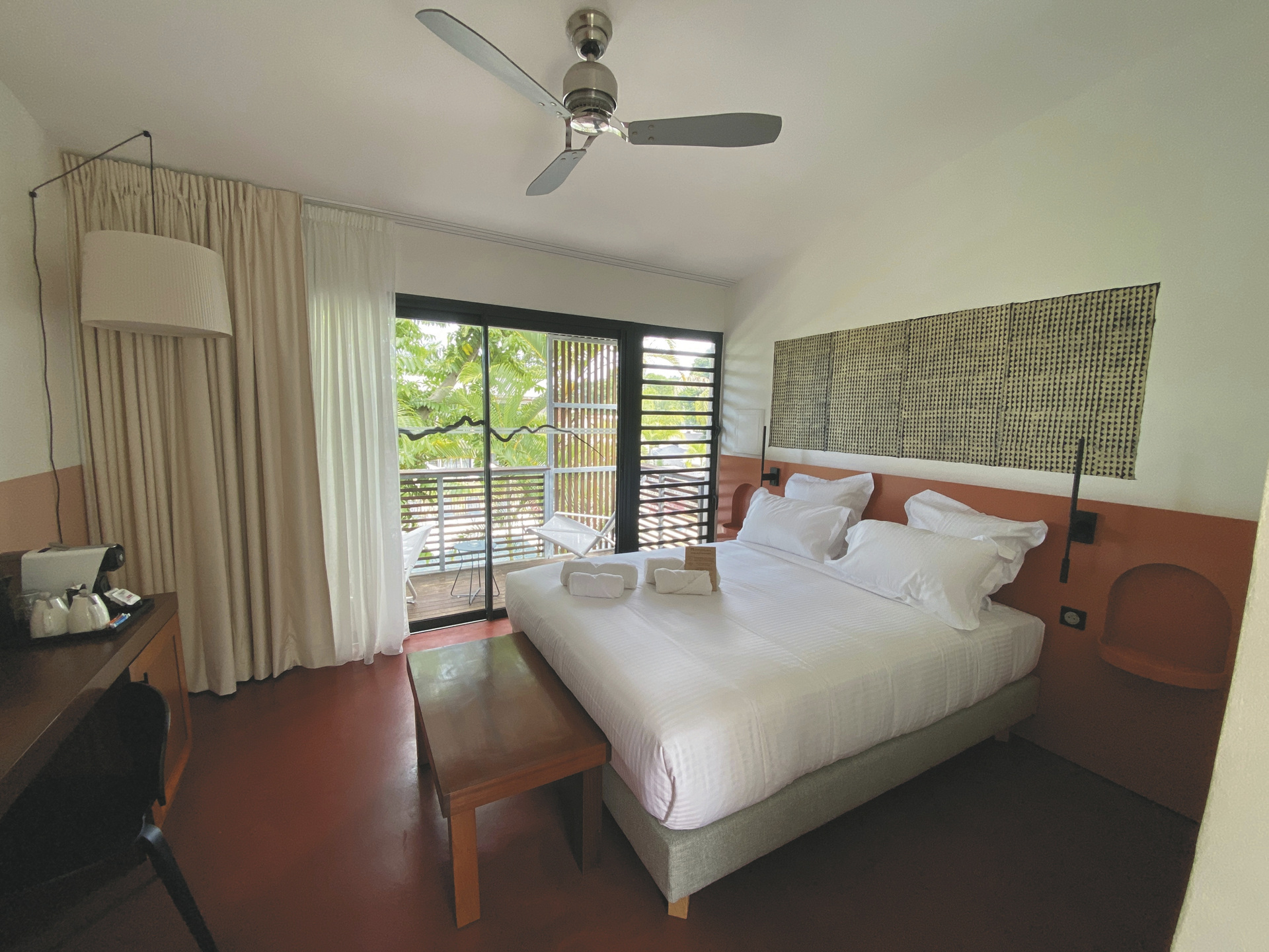 Das komplett neu renovierte Hotel verfügt über einen beheizten Pool. Wellnessbereich mit Spa, Hammam, Sauna und Kneipp-Bad (gegen Gebühr). Im Restaurant genießen Sie eine gekonnte Mischung aus neu interpretierter kreolischer Küche mit frischen, lokalen Produkten und kulinarischen Einflüssen aus anderen Ländern. Der Bar-Lounge-Bereich unter dem imposanten Letschi-Baum ist der ideale Ort, um in einer grünen Umgebung einen Drink oder Snack zu sich zu nehmen. Um die echten Traditionen dieser Insel zu bewahren, wurde das Hotel komplett aus inseltypischen Materialien errichtet.
