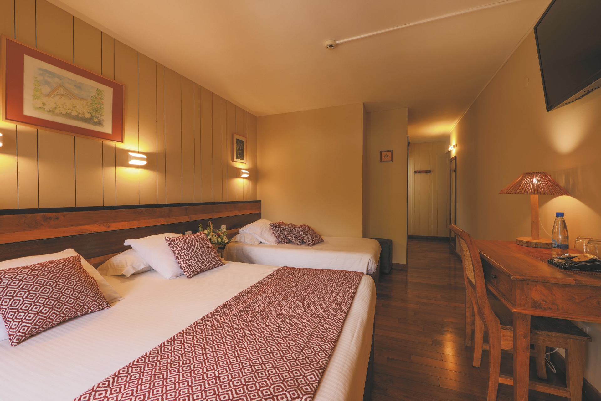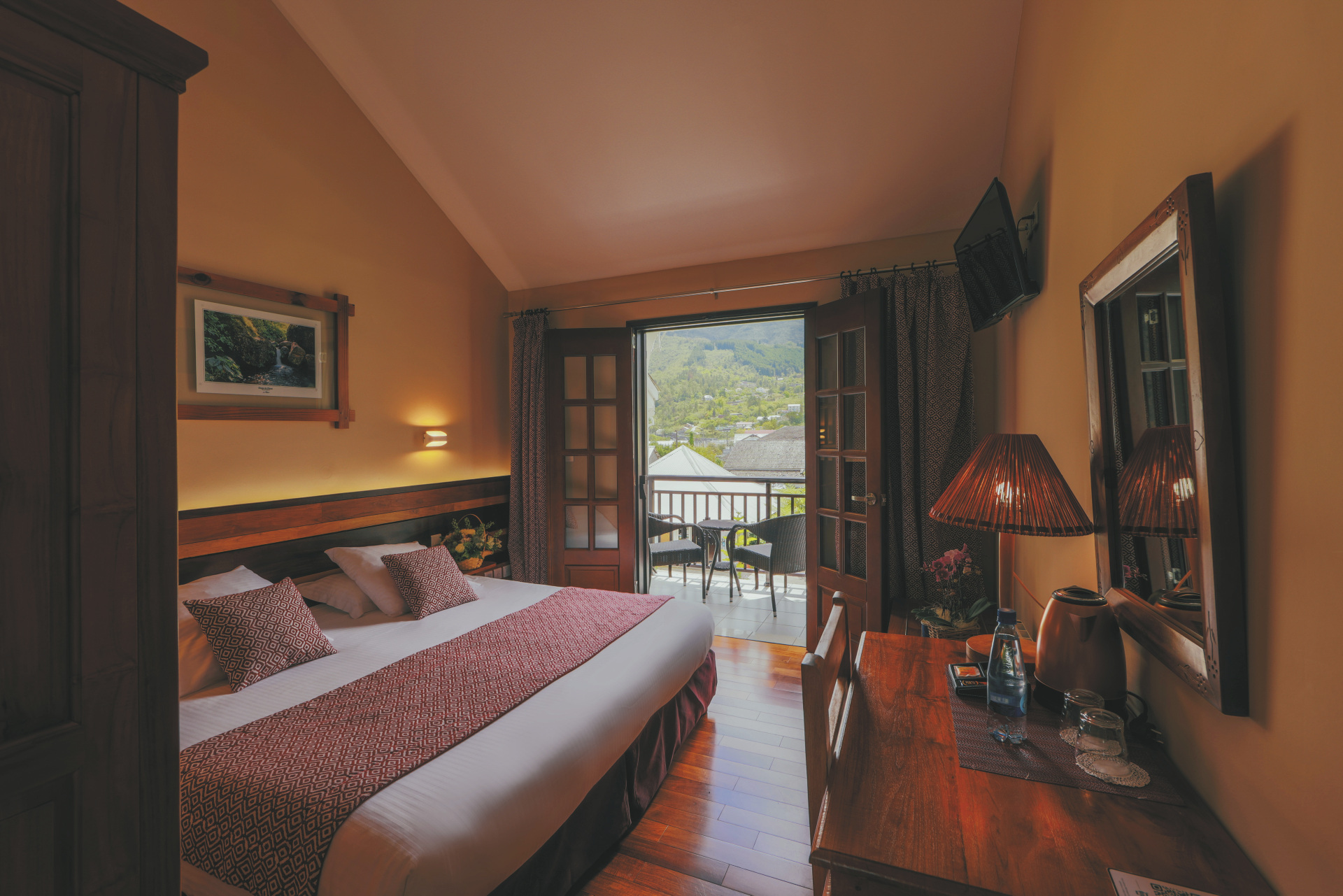 Insgesamt 47 Zimmer und Suiten. Die mit gemütlichen Holzmöbeln dekorierten Standardzimmer sind ausgestattet mit Badezimmer mit Badewanne oder begehbarer Dusche, Telefon, TV, Heizung, Föhn, Safe und kostenlosem WLAN-Zugang. Die Terrasse bietet einen wunderschönem Blick auf die Berge und den großen kreolischen Garten. Die Superior Zimmer, in einem zweistöckigen Gebäude gelegen, sind geräumig und komfortabel, alle mit Bad mit begehbarer Dusche. Die großzügigen Juniorsuiten begeistern mit einem atemberaubenden Blick auf die Berge und verfügen zusätzlich über ein kleines Wohnzimmer mit großem Flachbildfernseher.