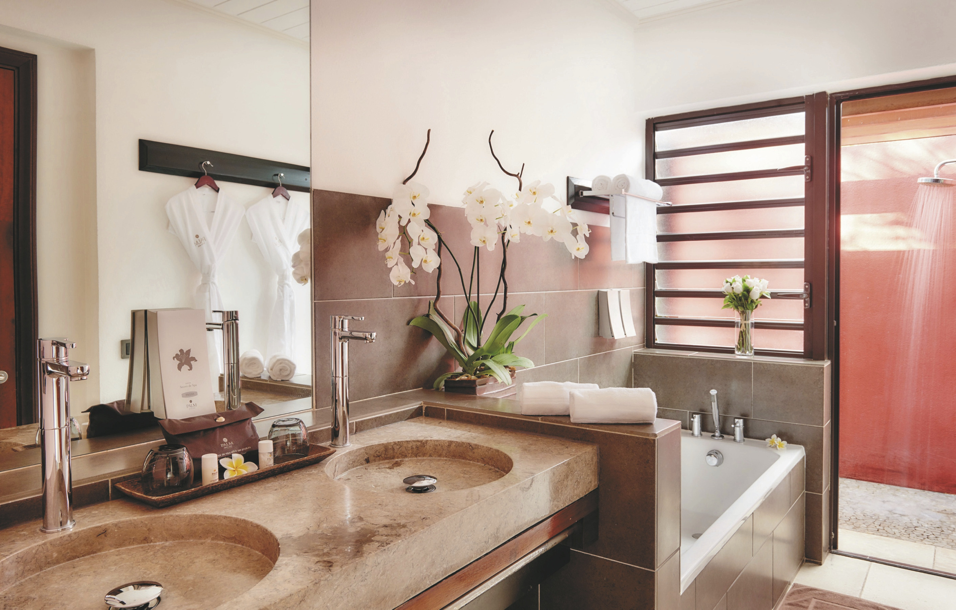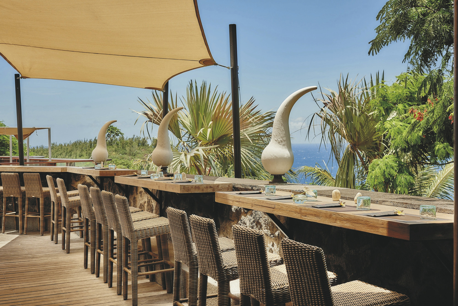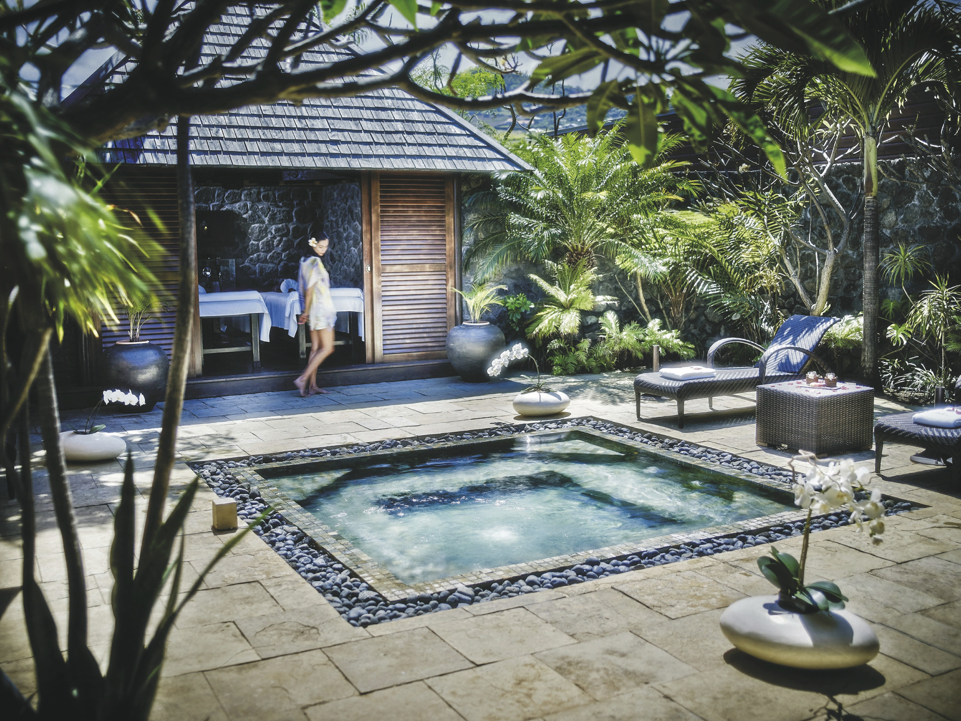Die Bungalowanlage hat zwei Restaurants. Genießen Sie Gaumenfreuden im Feinschmecker-Restaurant Le Makassar, im Strandrestaurant Kah Beach oder Cocktails und Tapas in der Le Kokoa Bar. Des Weiteren verfügt das Hotel über zwei Pools und einen einzigartigen, in die Poollandschaft integrierten Strandbereich, Liegestühle und Himmelbetten, Hammam und Whirlpool sowie mehrere Massageräume.