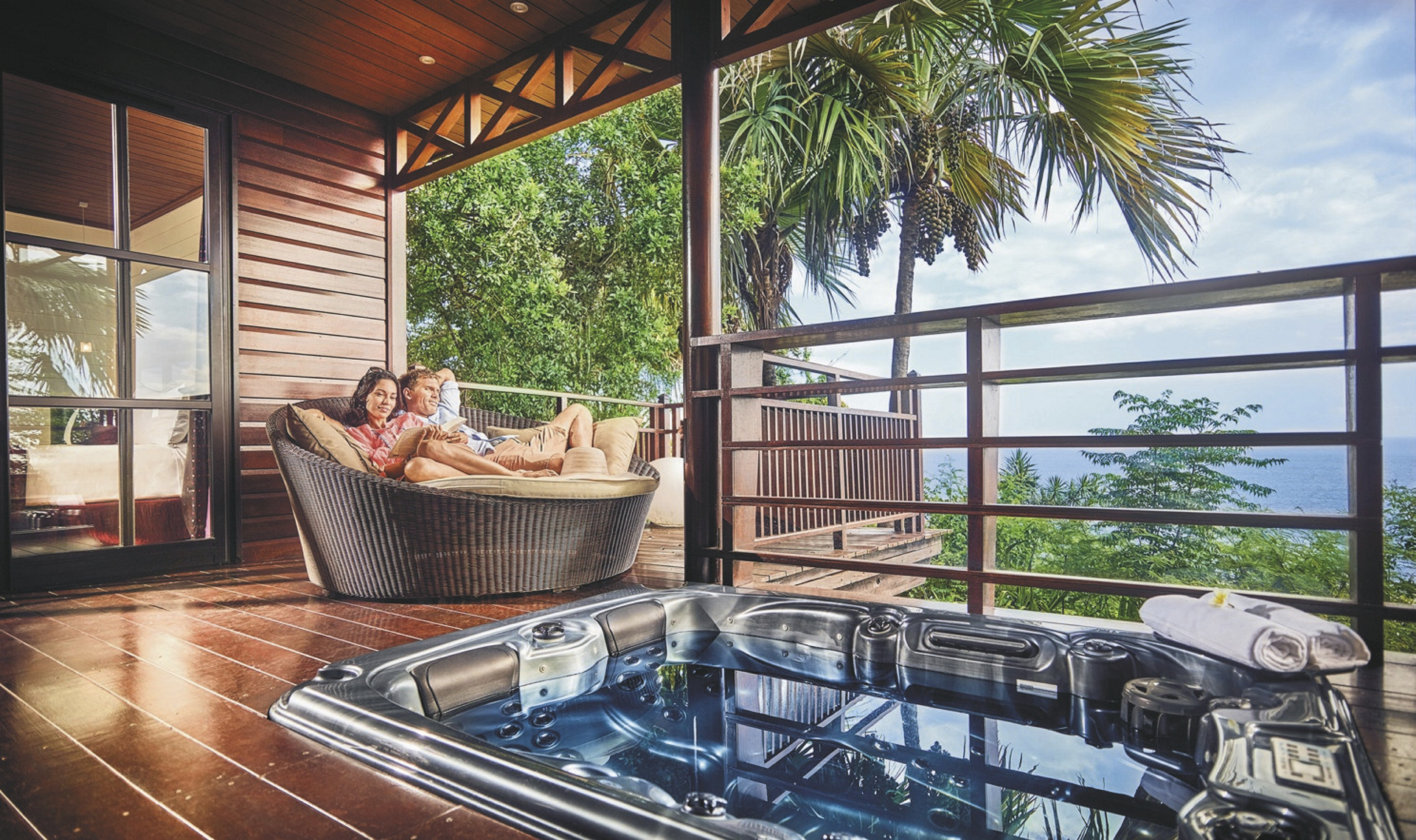 Im wilden Süden und im Herzen eines 3,5 ha großen Parkes liegt das erste Spa-Hotel der Insel mit einer fantastischen Sicht auf die 300 m entfernt liegende Bucht von Grande Anse (kostenloser Shuttlebus) und den Ozean. Distanz zum Flughafen ca. 1,5 Fahrstunden. Nach Saint-Pierre Stadt ca. 15 Fahrminuten.