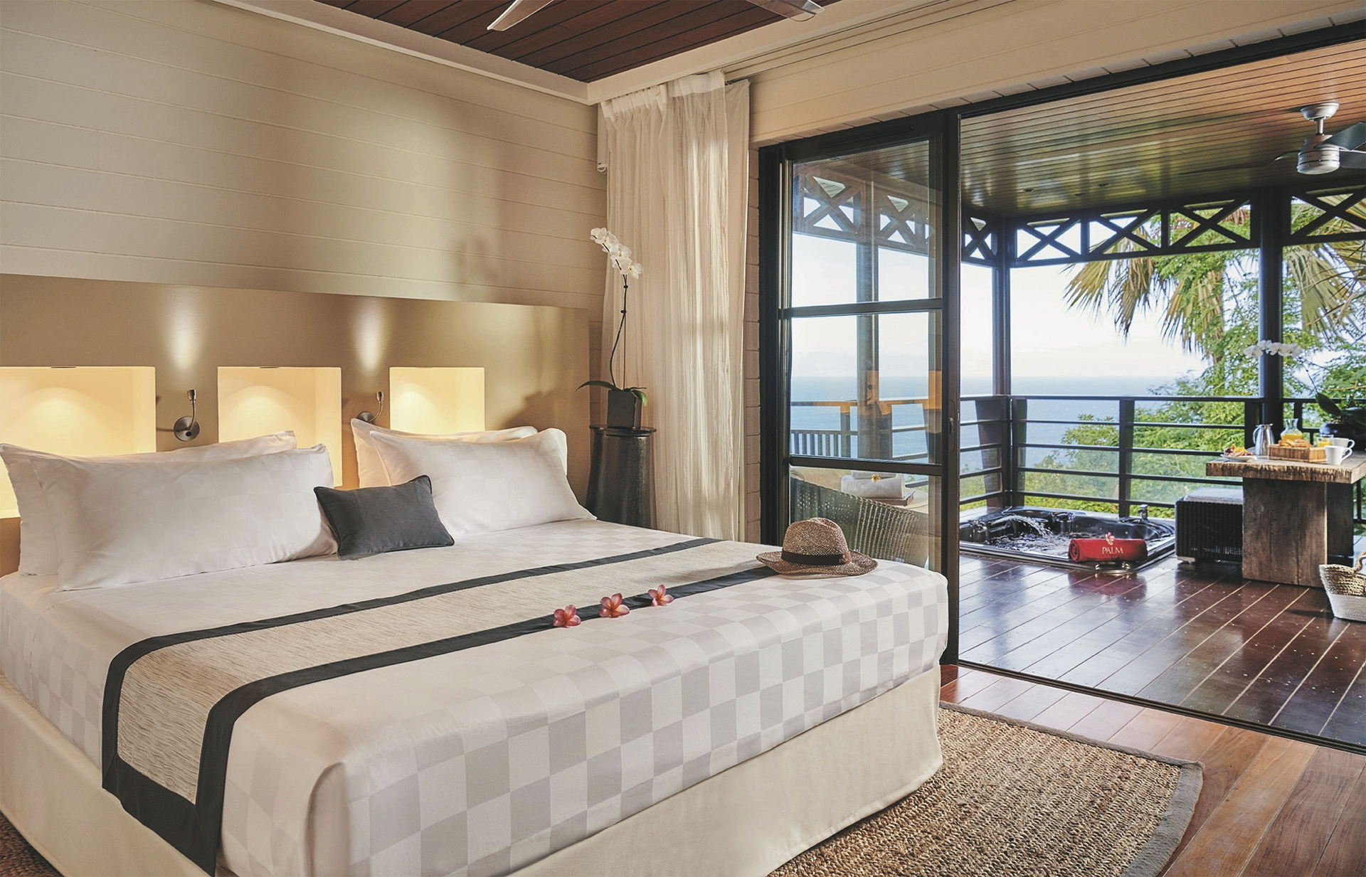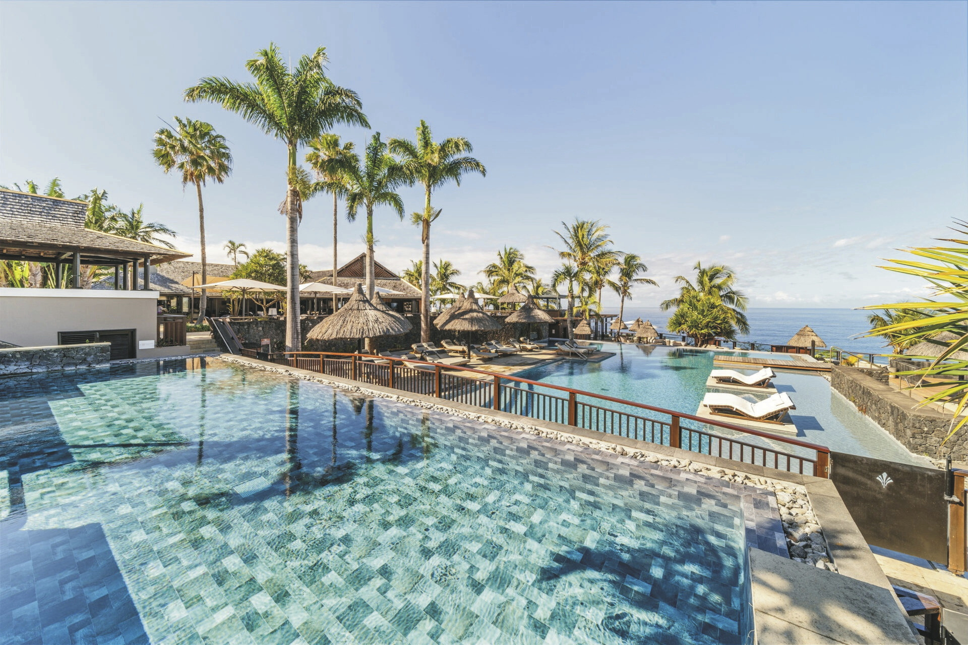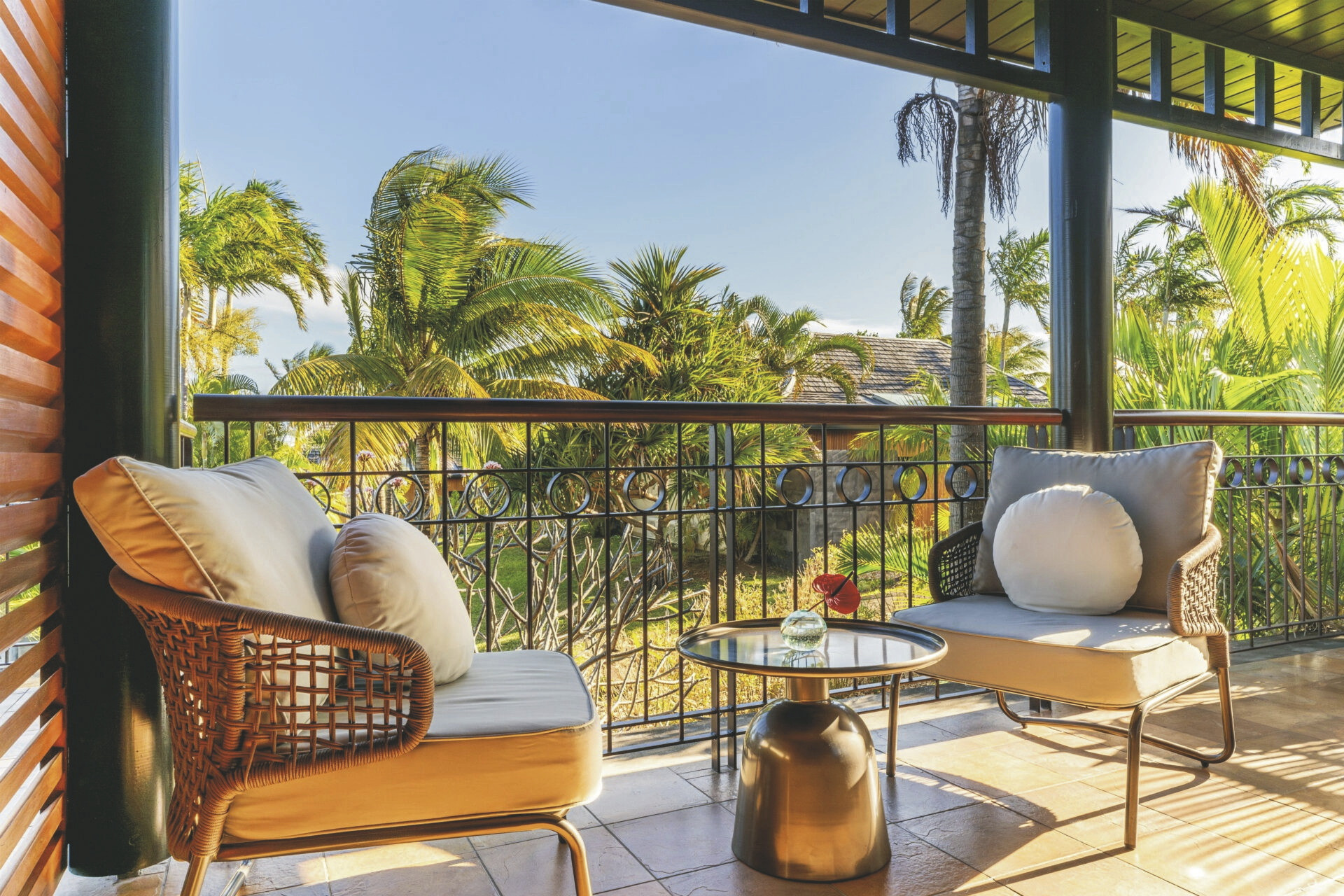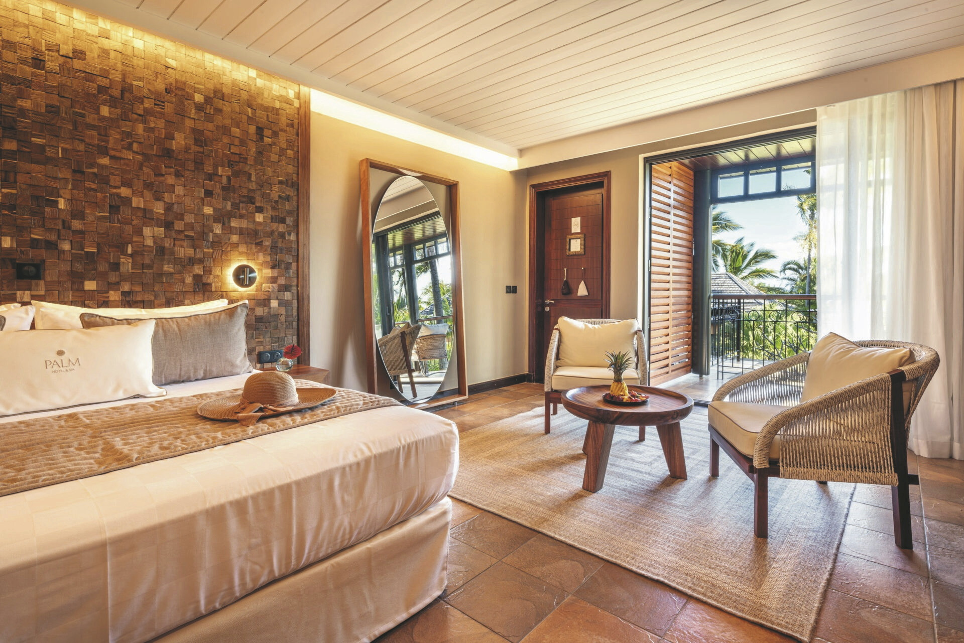6 Villen mit je 8 Zimmern, 32 Superior-Zimmer (34 qm), 16 Deluxe (41 qm), 14 Suiten (55 qm), 3 Lodges (100 qm) und 5 Pool Lodges (140 qm). Alle ausgestattet mit eigenem Bad, Terrasse oder Balkon, Klimaanlage, TV, Telefon, kostenlosem WLAN/Internetzugang, Safe, Nespresso-Maschine und Minibar. Suiten zusätzlich mit Sonnendeck, Whirlpool und Außendusche auf der Terrasse. Während die Superior-, Deluxe-Zimmer und die Suiten in hübschen kreolischen Villen in der schönen Gartenanlage verteilt sind, thronen die Lodges mit Meerblick über dem Indischen Ozean am Rand einer Klippe. Die Pool Lodges (Gartenblick) liegen inmitten üppiger Natur und verfügen über einen privaten beheizten Pool, separaten Wohnraum und Außenwohnbereich.