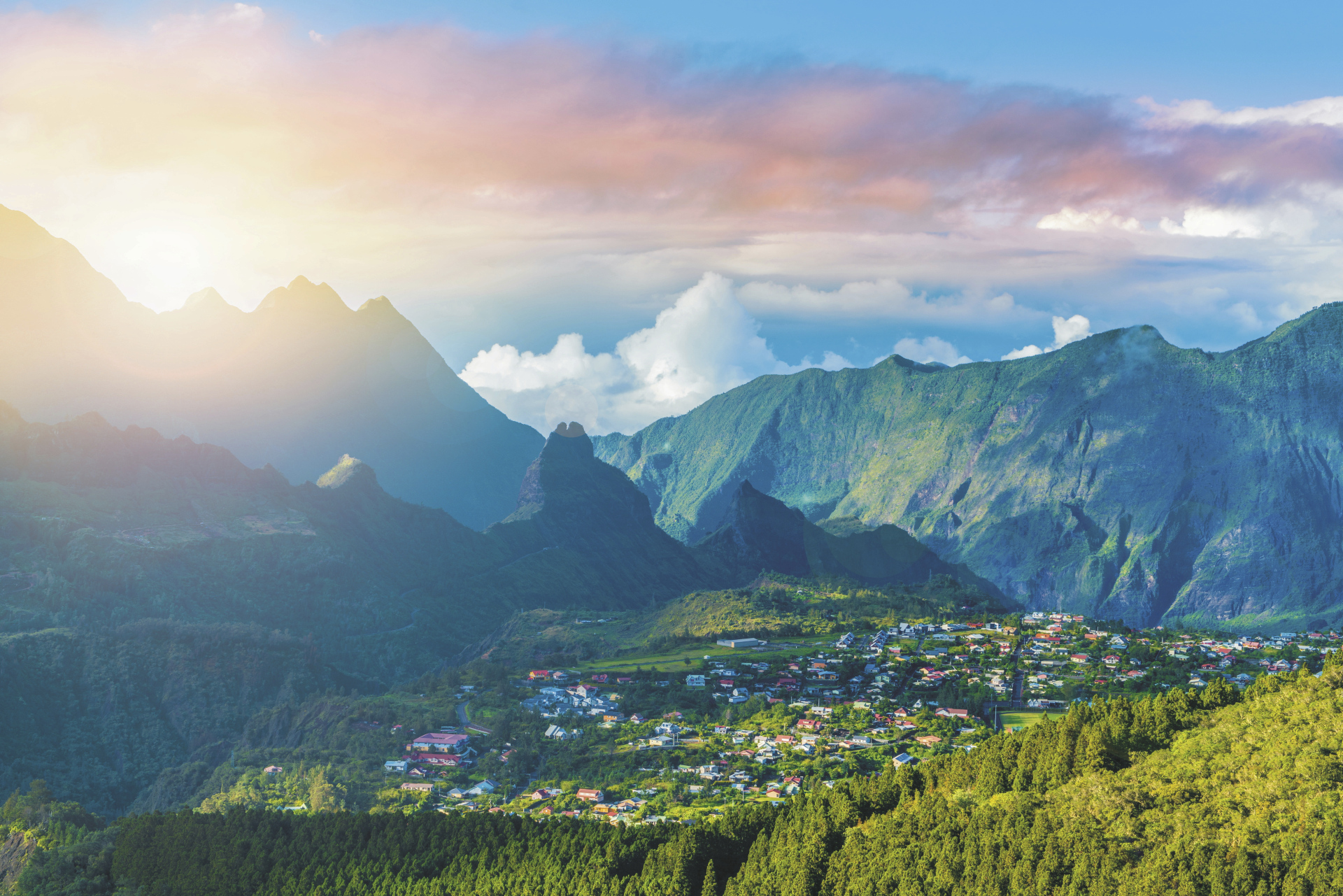 Plaine des Cafres - Cirque de Salazie (ca. 90 km; F).Fahrt in den Cirque de Salazie, in dem Sie übernachten werden. Der Cirque de Salazie ist der größte und durch seine exponierte Lage im Nordosten der Insel der feuchteste der drei Talkessel und bietet üppige Landschaften, Bananen- und Zuckerrohrplantagen sowie tosende Wasserfälle und gut gekennzeichnete Wanderwege. Die Bergdörfer Hell-Bourg und Grand-Îlet haben viel von ihrem kreolischen Charme bewahrt und sind ideale Ausgangspunkte um die Bergwälder, Hochebenen und Gipfel der Umgebung zu erkunden.