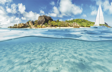 Die Inselgruppe der Seychellen besteht aus 115 kleinen und großen Inseln mit einer Gesamtfläche von 455 km², die über Hunderttausende Quadratkilometer verstreut im blau und türkis schimmernden Wasser des Indischen Ozeans liegen – rund 1.580 km östlich von Mombasa/Kenia. Die Seychellen dürfen sich rühmen, denn sie haben den Schatz der Natur trefflich bewahrt. Nahezu die Hälfte der gesamten Landfläche wurde zum Schutzgebiet erklärt. So sind die Granitinseln um die Hauptinsel Mahé, die „Inner Islands“, und die Koralleninseln, die „Outer Islands“, die sich fast bis zur ostafrikanischen Küste hinziehen, intakte Heimat einer erstaunlichen tropischen Flora und endemischen Fauna. Einzigartig ist auch die Unterwasserwelt. Farbenprächtige Riff-Fische, Schalentiere, Tintenfische und Seeschildkröten tummeln sich im seichteren Wasser. Rochen, große Barsche bis hin zum sanften Riesen des Meeres, dem Walhai, finden sich in den tieferen Gewässern. Das ganzjährig ausgeglichene Klima, die freundliche multi-kulturelle Bevölkerung, eine gepflegte Hotellerie, feinsandige Strände, gewaltige Granitfelsen und üppig grüne Tropenwälder sind die Zutaten für das Inselparadies Seychellen.