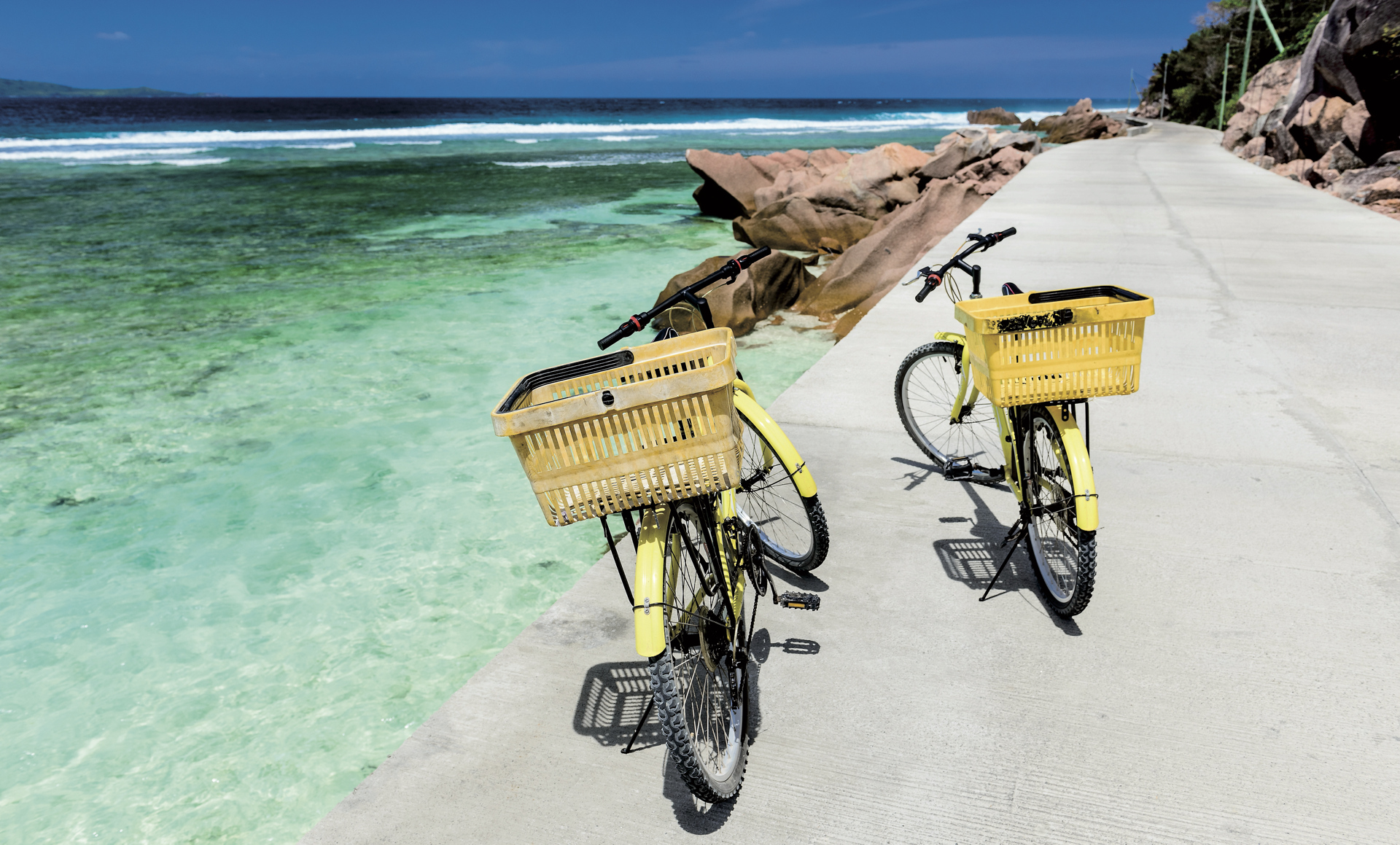 La Digue (F).La Digue bietet vielfältige Sehenswürdigkeiten. Sehr gut lässt sich die Insel mit dem Fahrrad erkunden. Wie wäre es mit einem Ausflug zur alten Kokosnussplantage "L'Union Estate", auf der Sie auch Kokosöl oder Gewürze erwerben können, oder zu einer der schönen Buchten.