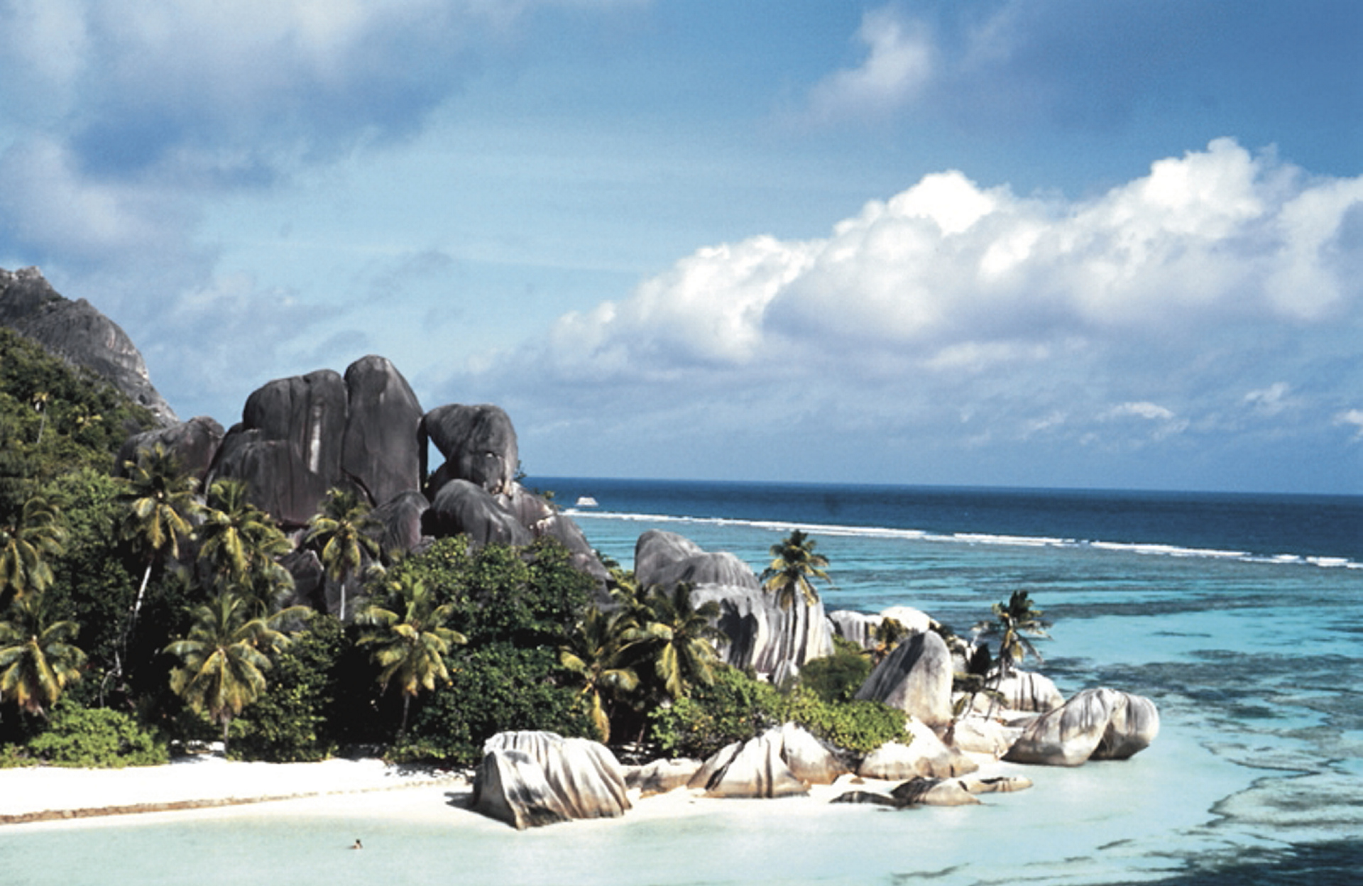 La Digue (F).Freuen Sie sich auf kleine, einsame Strände und Buchten, umgeben von mächtigen Granitfelsen. La Digue ist vor allem als Postkartenmotiv bekannt. Nirgendwo sonst auf den Seychellen sind mächtige Granitfelsen, weißer Strand und grüne Palmen besser in Szene gesetzt.