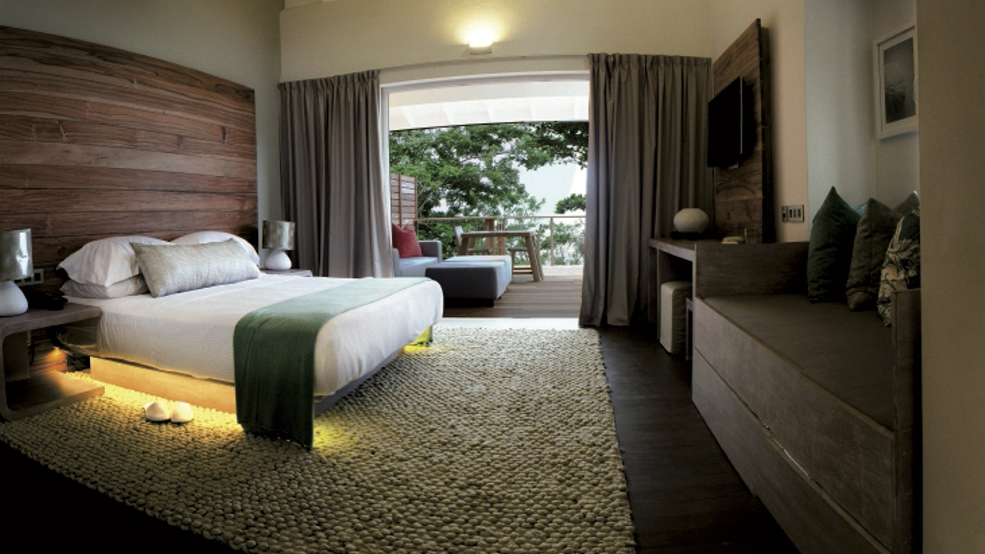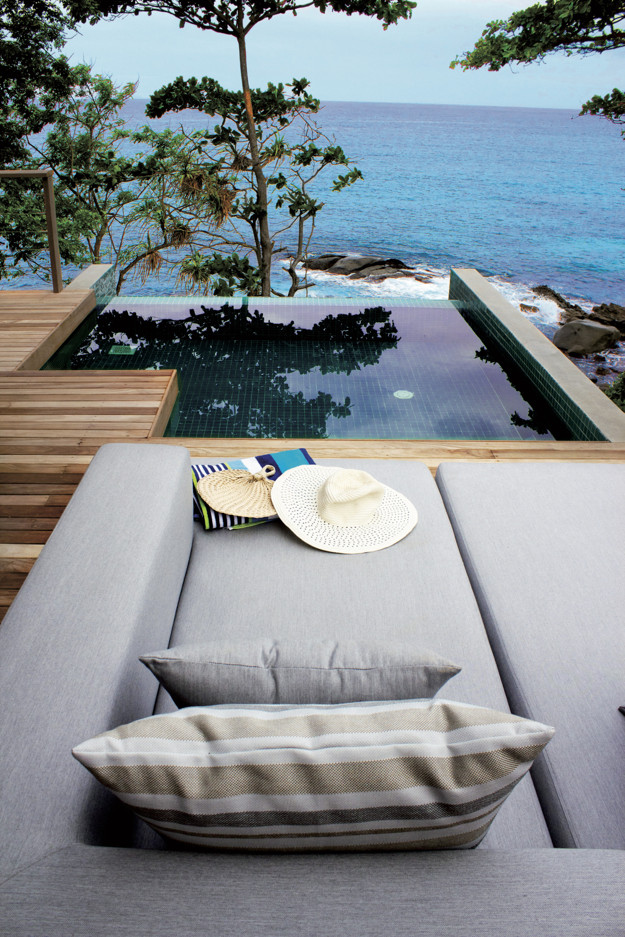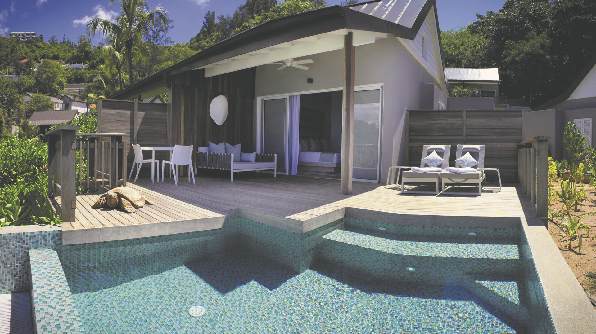 Die 28 Chalets (45 m²) und 12 Chalets mit Plunge-Pool (60 m²) bieten eine große Terrasse, einen traumhaften Blick auf das Meer und sind hervorragend ausgestattet.