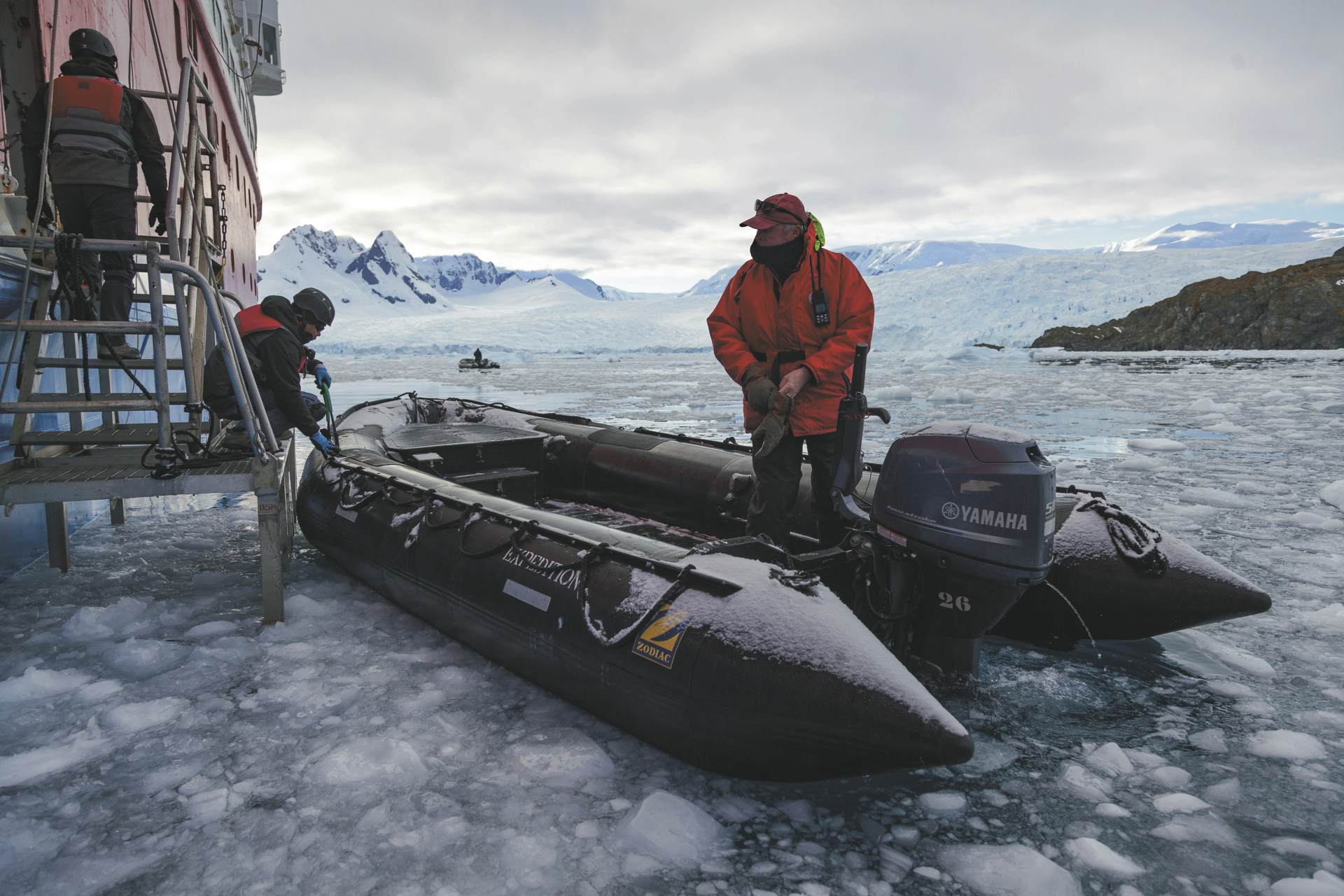 6/36©G AdventuresÜber die Außentreppe in den Zodiac