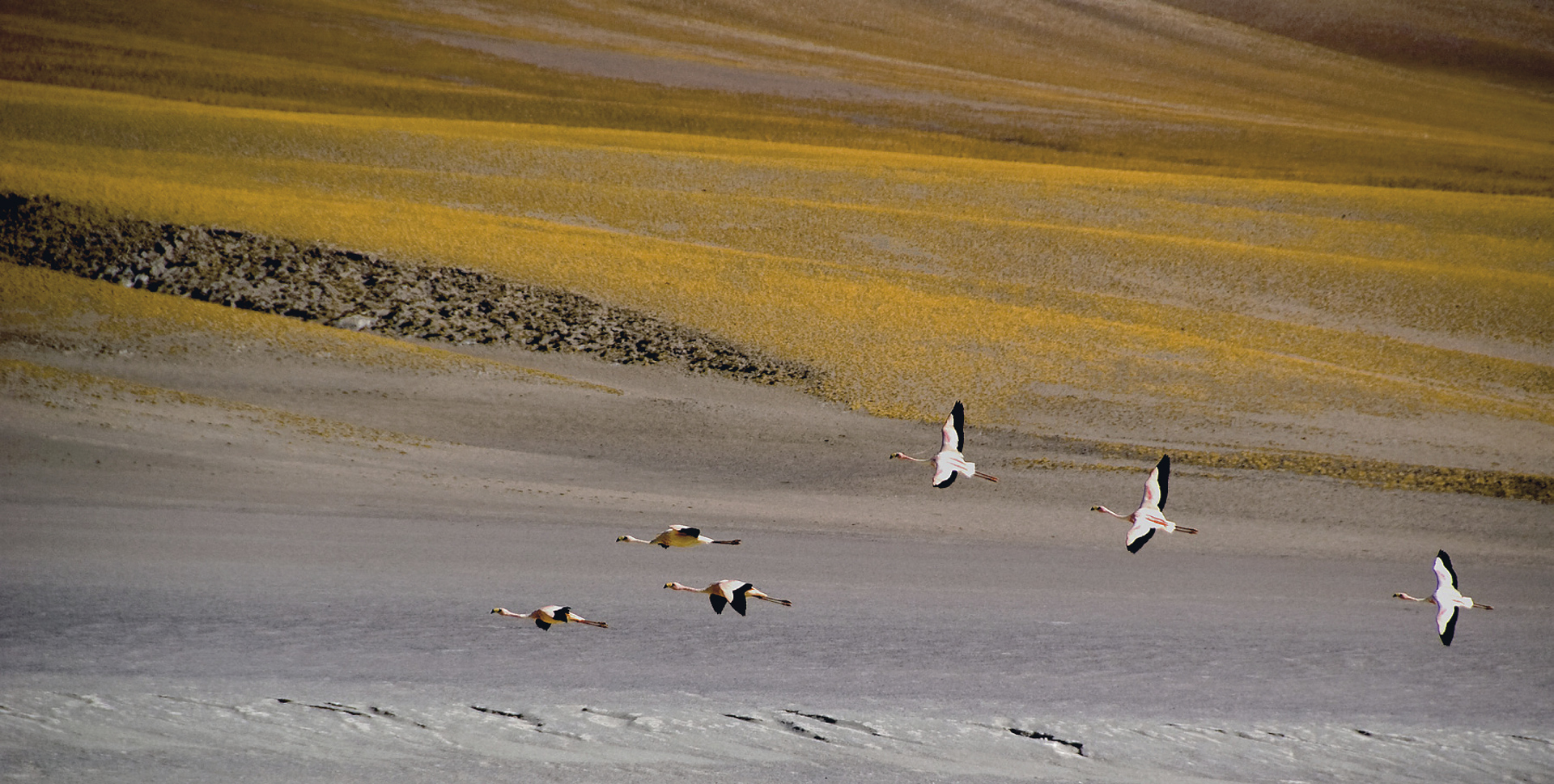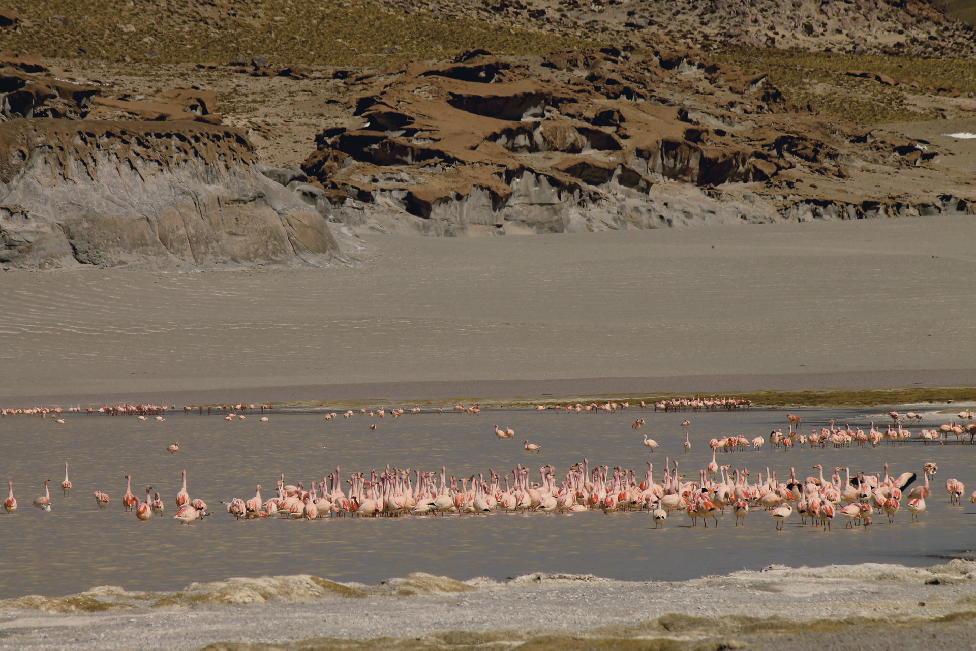 Ein Tag voller Entdeckungen erwartet Sie. Etwa 40 Kilometer von El Penon entfernt, befindet sich die gewaltige Kaldera des Vulkans Galan, in der sich mehrere farbige Lagunen befinden, wie z.B. die Laguna Diamante. Besonders beeindruckend ist die Laguna Grande, wo sich von Oktober bis April bis zu 20.000 Flamingos tummeln. Diese lebendige Szenerie auf 4.000 Metern Höhe in völliger Abgeschiedenheit zu erleben, ist etwas ganz Besonderes. Weiter geht es durch den nördlichen Teil der Caldera, vorbei am Rio Los Patos, der tiefe Schluchten in vulkanisches Gestein gegraben hat, zum Aussichtspunkt Herradura – ein kaum besuchter Ort mit spektakulärem Blick auf einen riesigen Canyon.