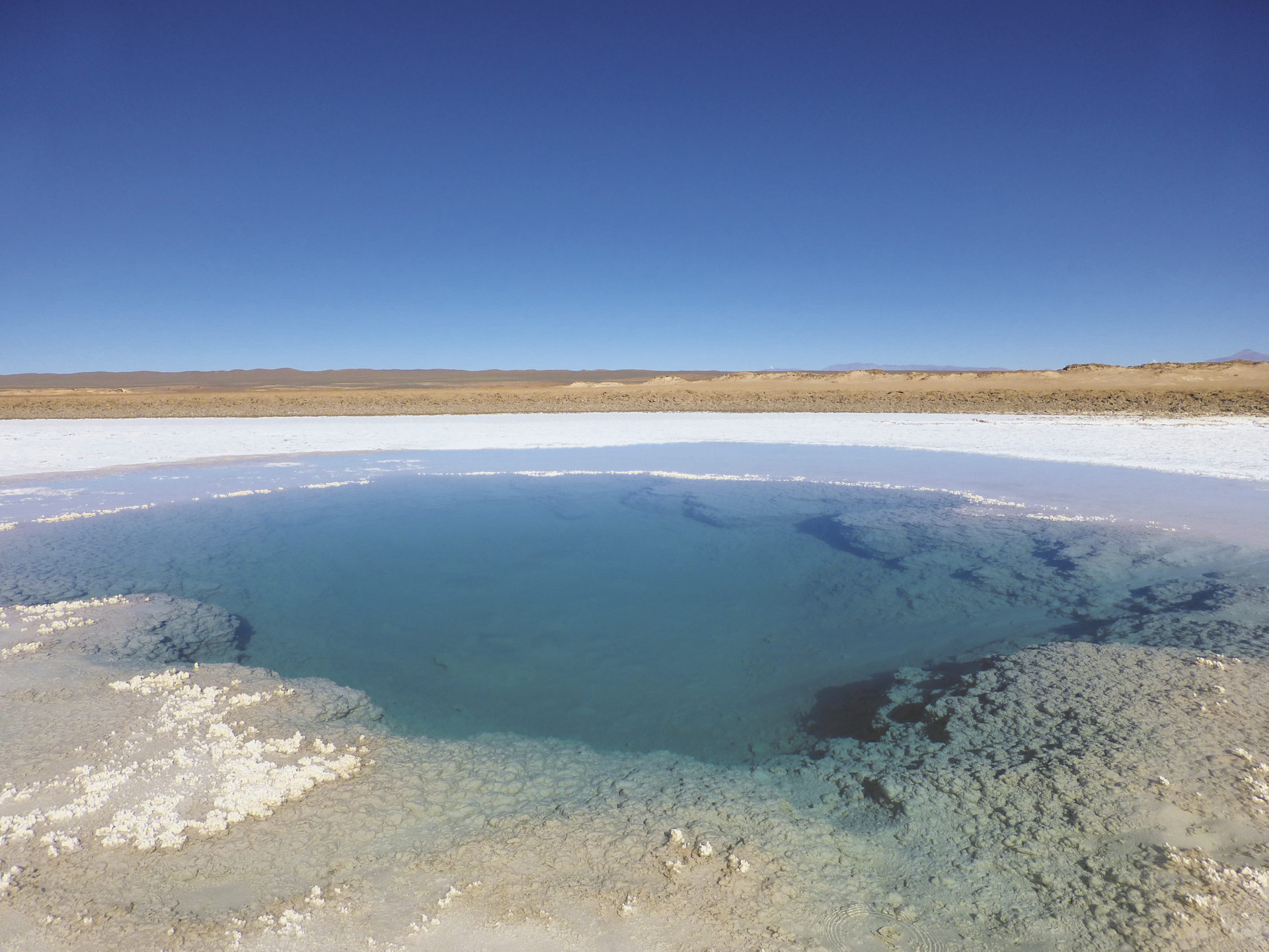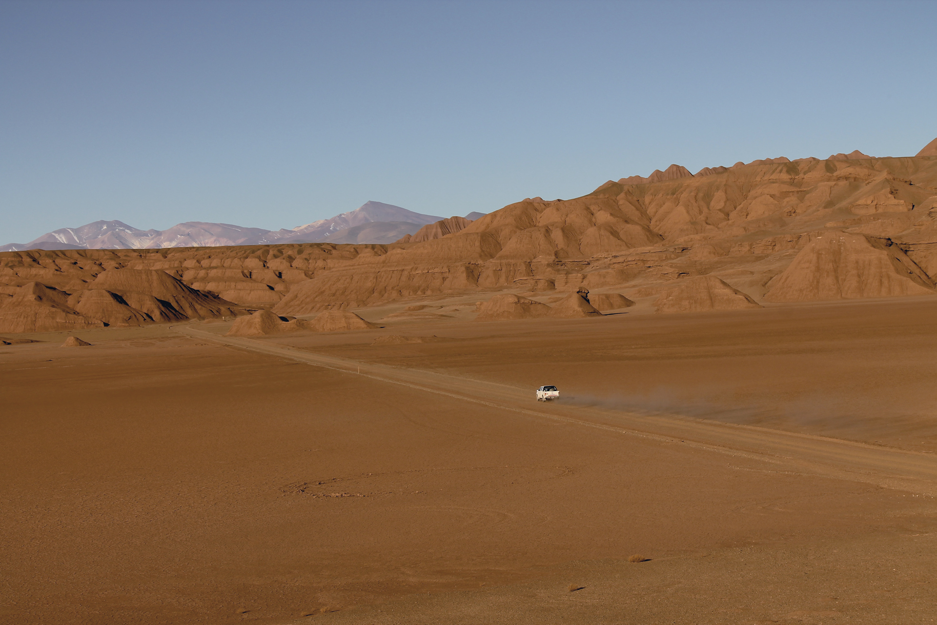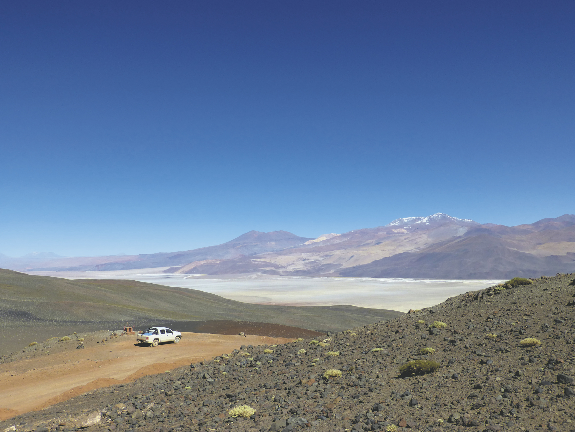 Im Salar del Hombre Muerto leuchtet eine grüne Lagune inmitten der weißen Salzfläche. Über eine Nebenstraße erreichen Sie die Vega Colorada, ein farbenfrohes Feuchtgebiet, das von der Gemeinde Antofalla als Weidefläche genutzt wird. Die letzte Etappe führt steil hinab mit atemberaubendem Blick auf den Salar de Antofalla – ein schmaler, aber weitläufiger Salzsee von außergewöhnlicher Schönheit. Ziel ist die Oase Antofalla, ein abgelegenes Dorf mit nur 30 Einwohnern.