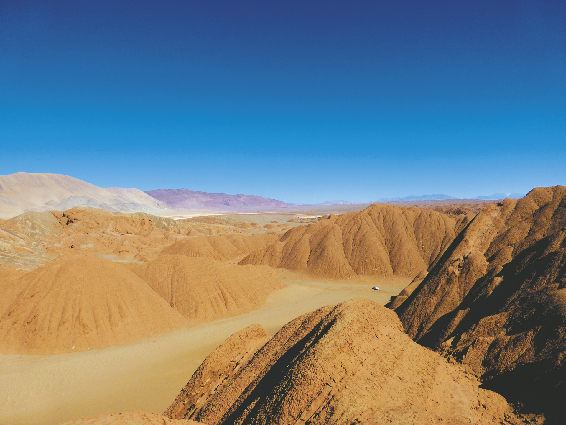 Sie brechen auf in das majestätische Herz der Anden. Die Route führt über die weite Salzfläche des Rio Grande bis zur verlassenen Siedlung Mina Casualidad, einst Zentrum eines ehrgeizigen Schwefelabbaus. Von dort steigen Sie weiter hinauf zur Mina Julia auf 5.200 Metern Höhe – ein Ort am Rand der Welt, unter einem endlosen Kobaltblauen Himmel. Jahrzehntelang lebten und arbeiteten hier Hunderte von Bergleuten unter extremen Bedingungen. Zurück in Mina Casualidad, auf 4.200 Metern, bereitet Ihr Guide ein Picknick inmitten der stillen Ruinen – ein Moment der Einkehr in der rauen Schönheit der Hochanden.