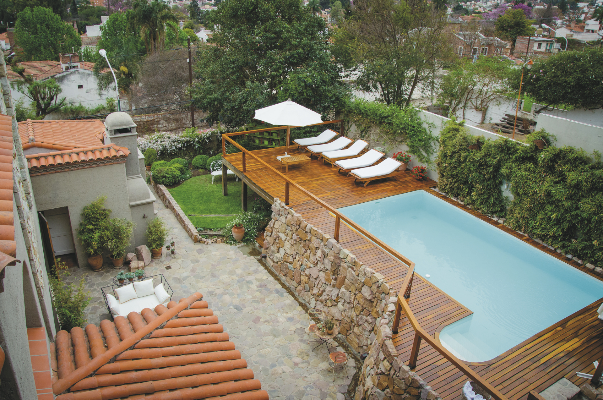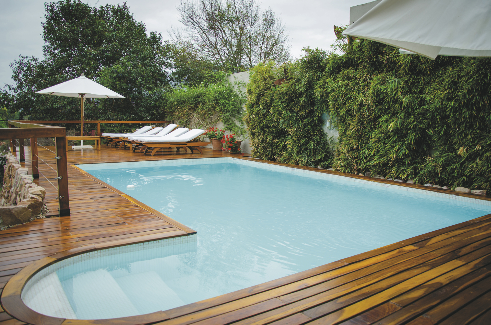 Das liebevoll gestaltete Haus in Hanglage erstreckt sich über mehrere über Treppen verbundene Ebenen. Ein schöner Garten mit Außenpool und Sonnendeck und eine gemütliche Lounge mit Kamin laden zum Verweilen ein.