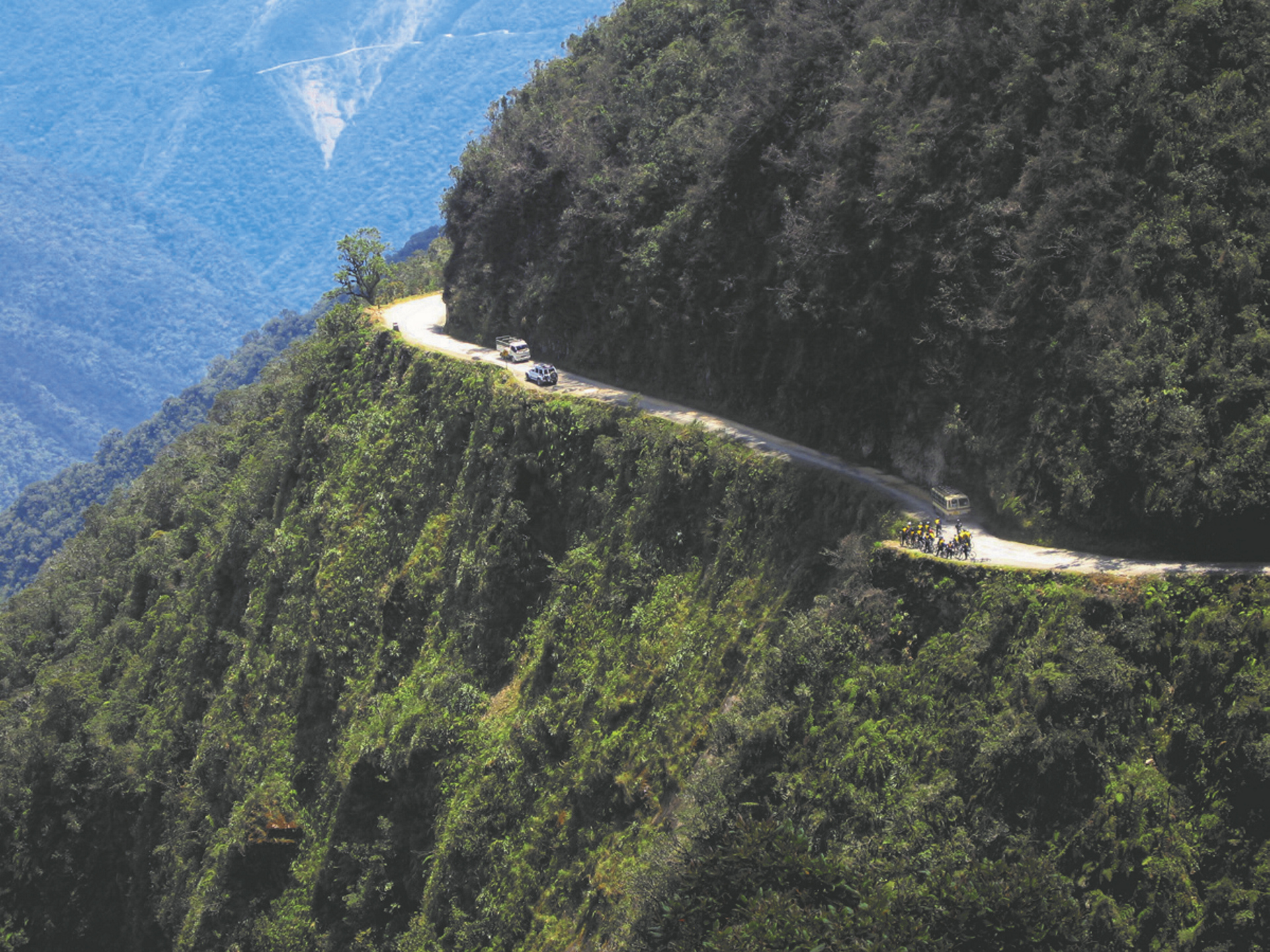 Fahrt zum Cumbre Pass (4.700 m), wo Ihr Abenteuer beginnt. Mit dem Mountainbike fahren Sie über die El Camino de la Muerte hinab in die Tropenzone der Yungas. Die unbefestigte Straße schlängelt sich über 3.000 Höhenmeter an steilen Bergflanken abwärts. Genießen Sie während der Fahrt atemberaubende Ausblicke in die Täler und auf die umliegenden Berge. Rückfahrt im Minibus nach La Paz.