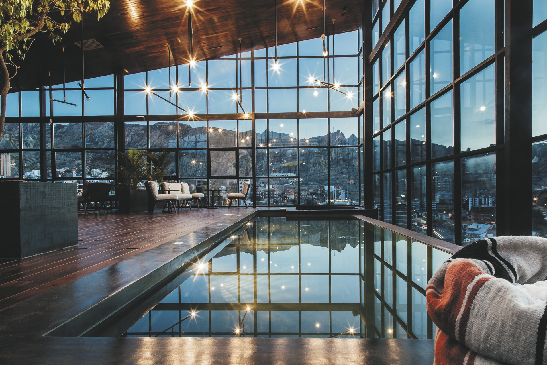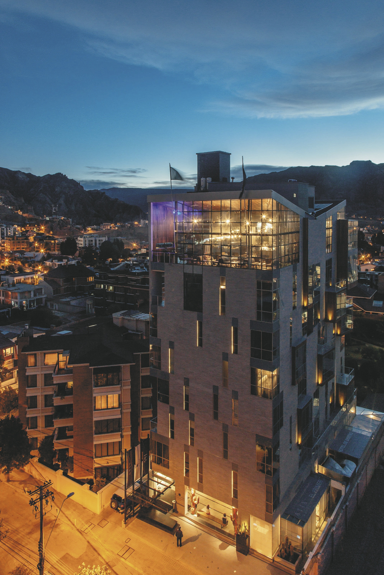 Das Hotel ist stilvoll eingerichtet und ausgestattet mit Kunstwerken bolivianischer Künstler. Im oberen Stock befinden sich die Bar und ein Pool mit herrlicher Aussicht über die Stadt. Im Restaurant werden Sie mit lokalen Köstlichkeiten verwöhnt.