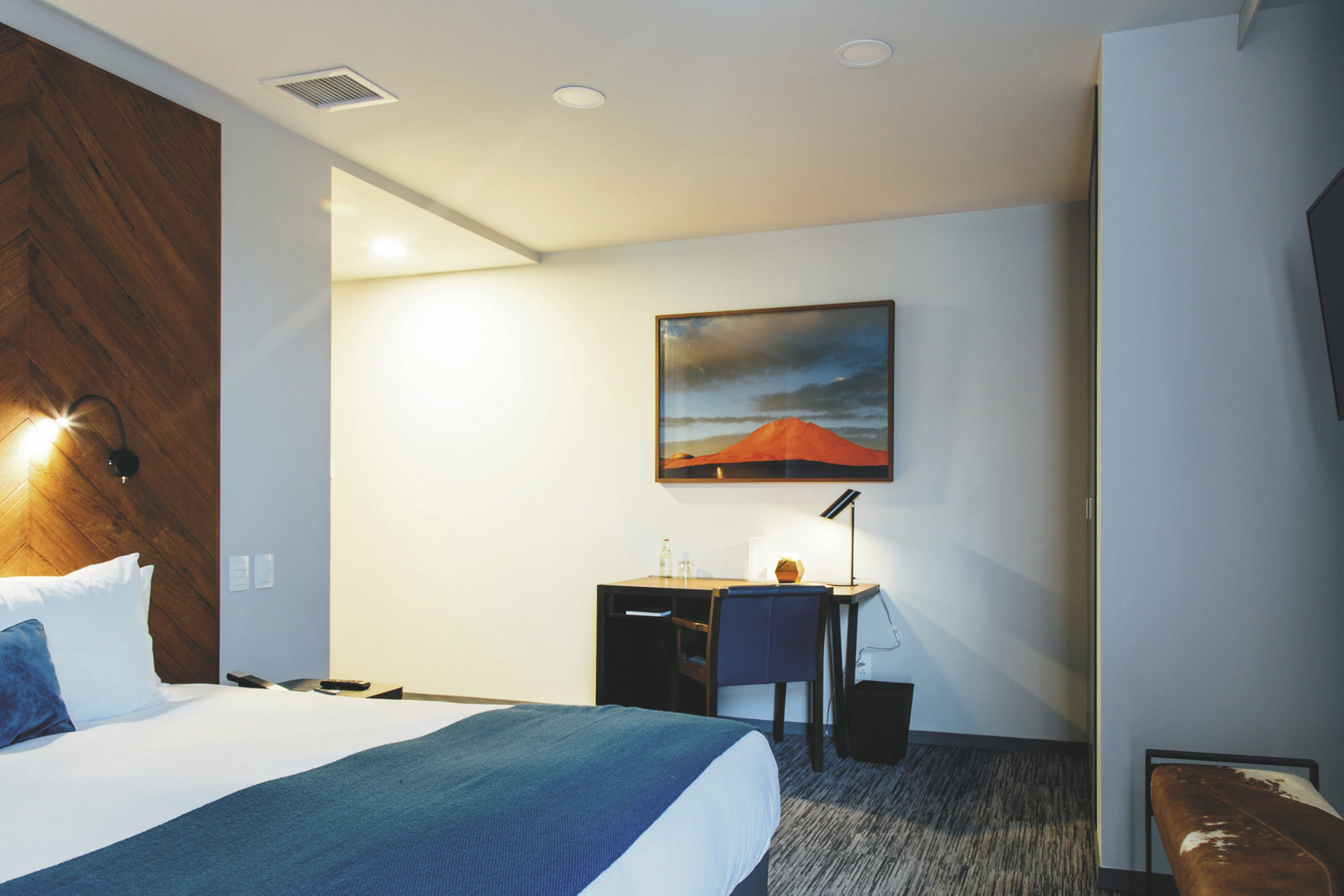 Jedes der modern eingerichteten 53 Zimmer verfügt über Berg- oder Stadtblick. Sie sind ausgestattet mit Heizung, Klimaanlage, TV, Safe, Telefon, Minibar, WLAN und einem Bad mit Regendusche/WC.