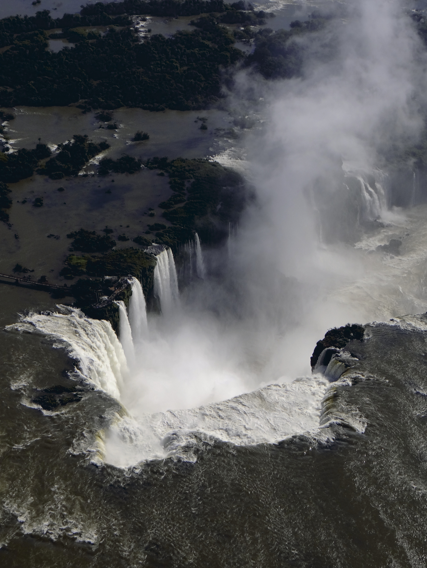 Erst hier wird Ihnen die Dimension der Fälle richtig bewußt. Der Rundflug dauert ca. 10 Minuten. Vor oder nach dem Helikopterrundflug besuchen Sie die Fälle auf der brasilianischen Seite. Auf einem Steg können Sie direkt vor die Fälle laufen, wo Sie von Gischt und tosendem Lärm umgeben sind.