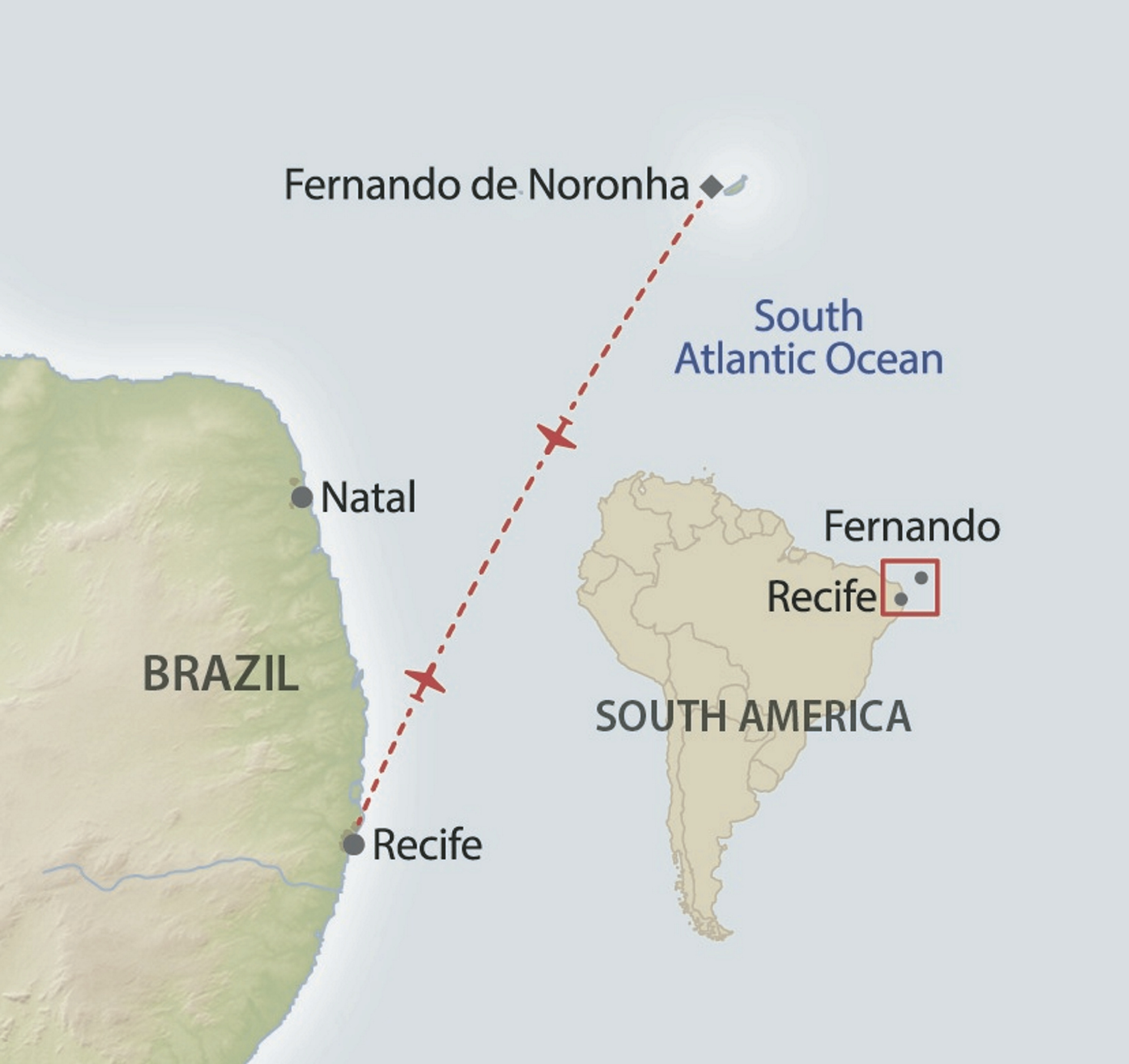 Das Archipel Fernando de Noronha besteht aus 21 Inseln, die vor der nordöstlichen Küste Brasiliens liegen und vor über 10 Millionen Jahren durch eine vulkanische Eruption entstanden sind. Vom atlantischen Ozean umgeben, ist die Inselgruppe außerdem ein Zufluchtsort für verschiedenste Meerestiere und -pflanzen und wurde deshalb 1989 zum Marine Nationalpark erklärt. Besucher werden mit fantastischer subtropischer Vegetation, vielfältiger Flora und Fauna, abgelegenen Stränden und exzellenten Tauch- und Schnorchel-Möglichkeiten belohnt. Auch Meeresschildkröten leben hier.