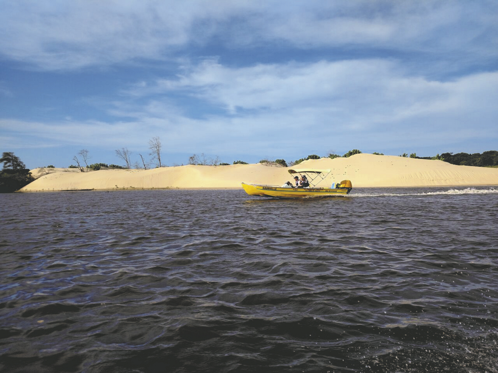 Preguiças Fluss und Caburé (F).Am Morgen nehmen Sie an einer Bootsfahrt auf dem Preguiças Fluss teil. Dieser fließt entlang der Wüste, bis er ins Meer mündet. Unterwegs besuchen Sie unter anderem die Siedlung Caburé.