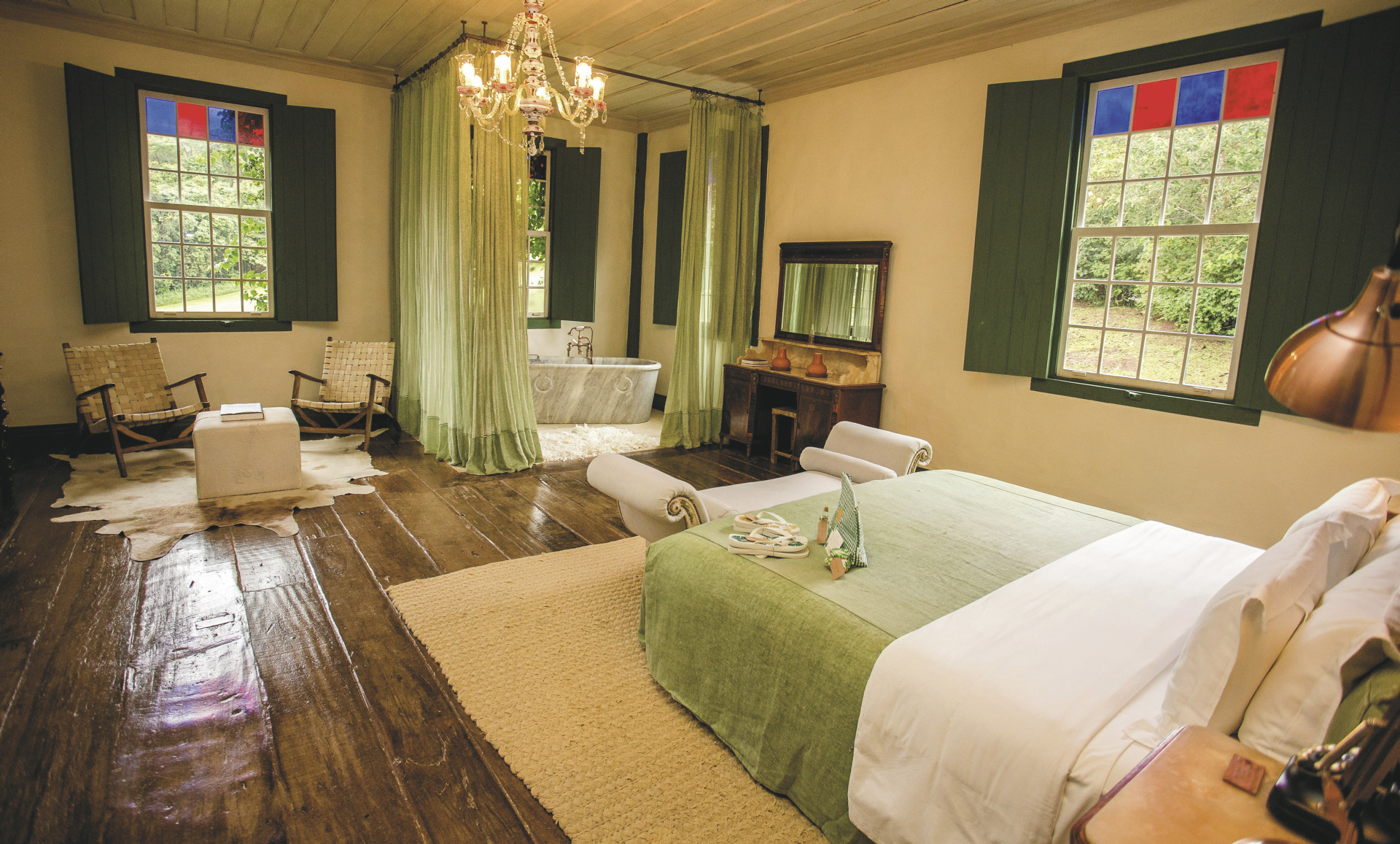 Neun Kilometer vom Dorf entfernt liegen die elegante Engenho Lodge – ein restauriertes Bauernhaus aus dem 18. Jahrhundert mit wunderschönen, mit erlesenen Wandteppichen geschmückten Zimmern – und die private Casa Carlinhos mit drei Schlafzimmern; beide befinden sich auf dem Gelände der alten Fazenda do Engenho (Zuckerrohrfarm). Zu den Einrichtungen gehört ein eigenes Spa, in dem die Massageöle zu 100 % auf pflanzlicher Basis hergestellt werden und viele aus Kräutern, Pflanzen und Essenzen aus der Umgebung bestehen. Zu den täglichen Aktivitäten gehören ein morgendlicher Yoga-Kurs und geführte Ausflüge, bei denen die weitläufigen Landschaften des Naturschutzgebiets zu Fuß oder – gegen Aufpreis – zu Pferd, mit modernsten E-Bikes und Buggys oder mit Geländewagen erkundet werden können.